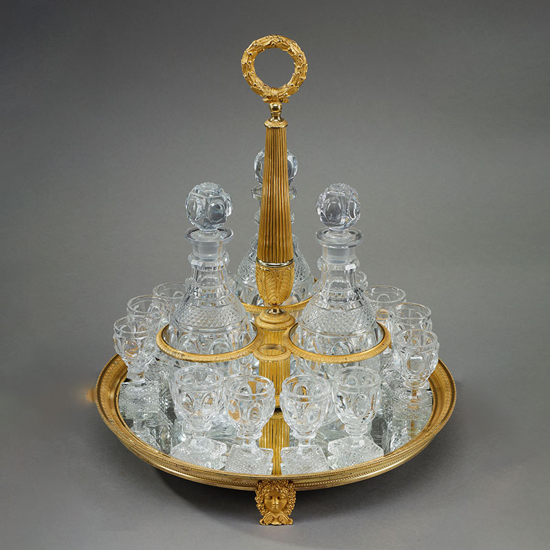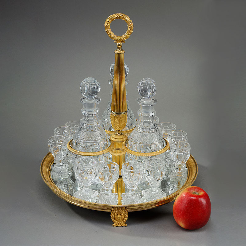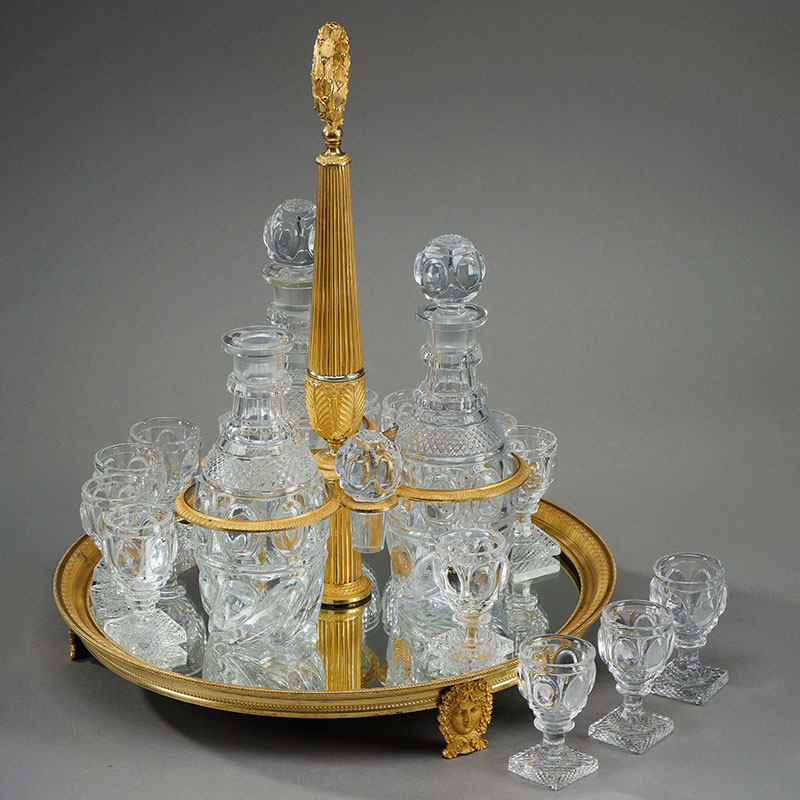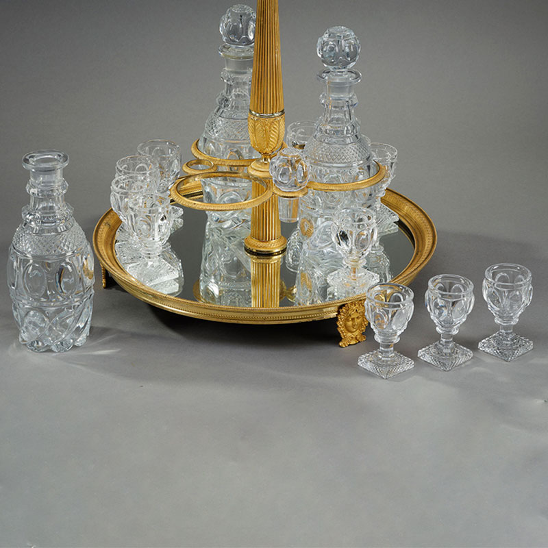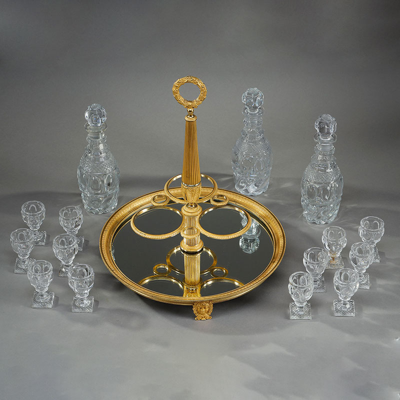 1820年代法国出品铜鎏金装饰底座利口酒箱 配水晶醒酒瓶及酒杯