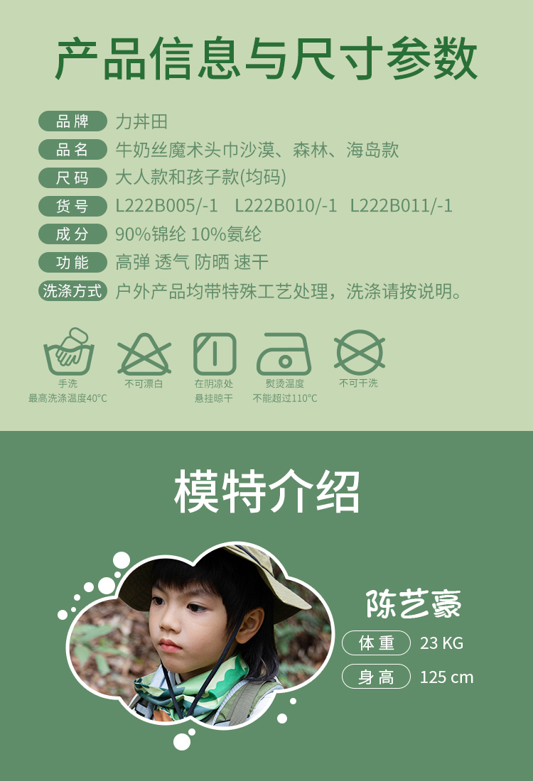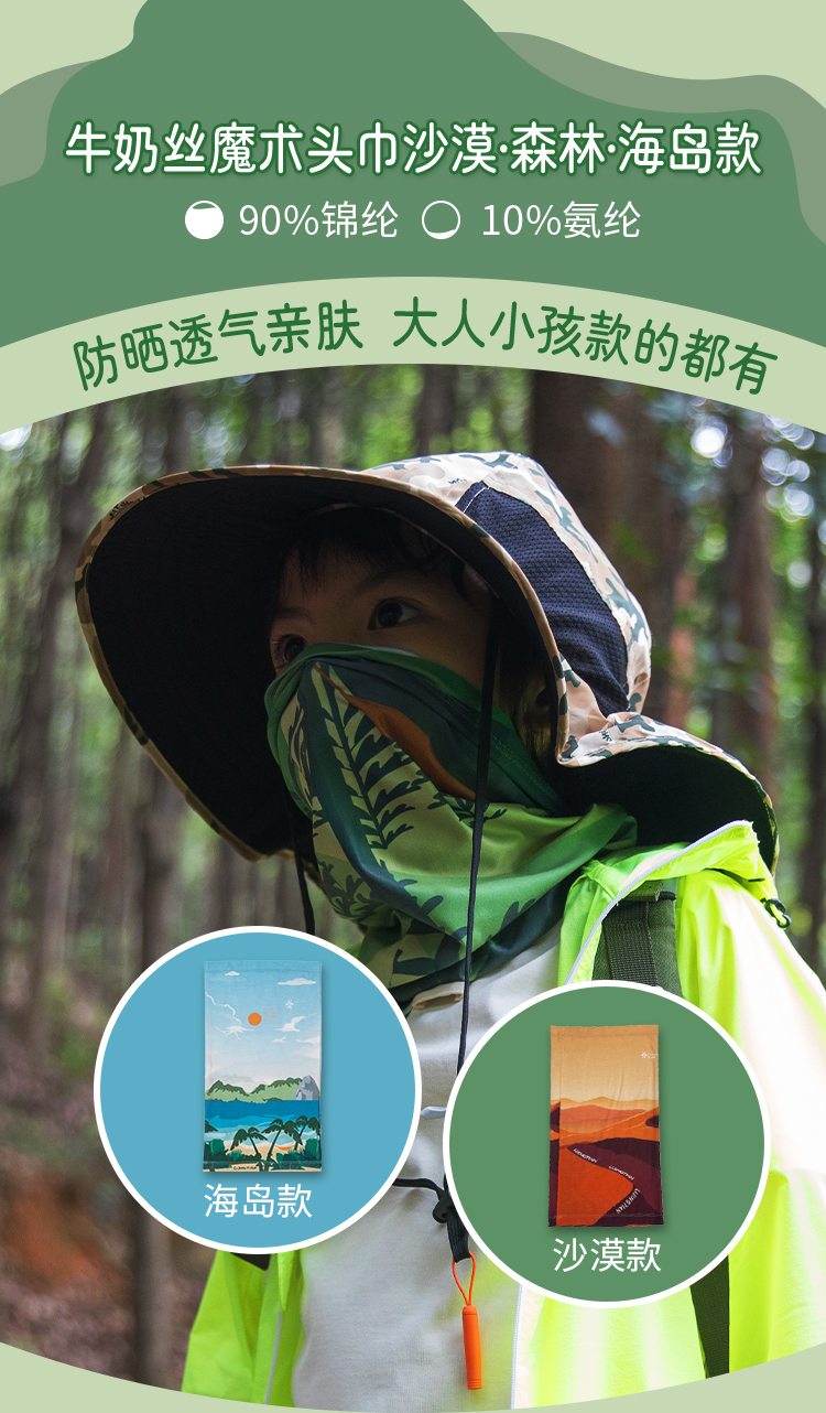 力丼田儿童户外辅助系列 牛奶丝魔术头巾 防晒遮阳吸汗 L222B010