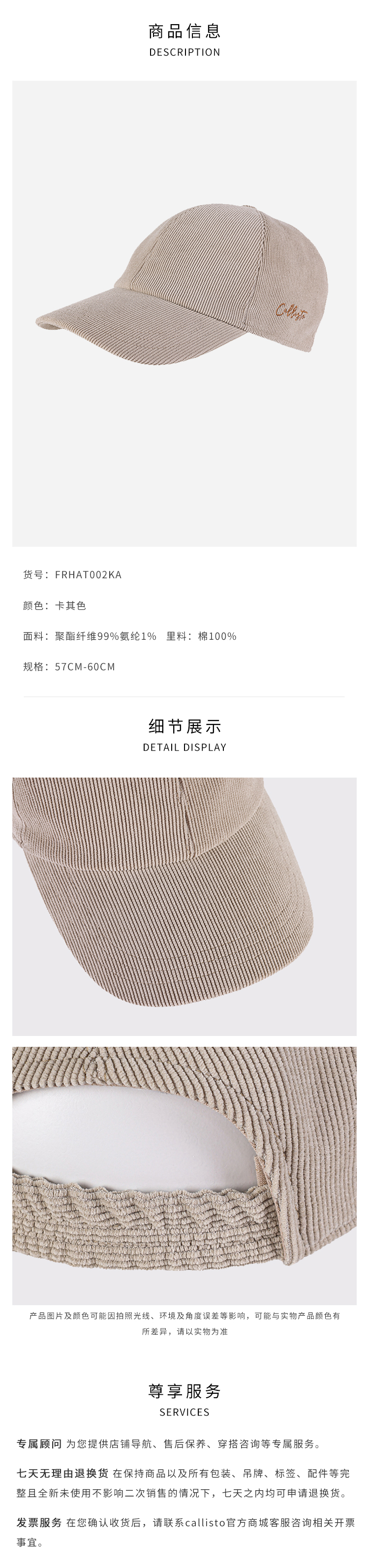 callisto雪茄棕仿条绒纹理可脱卸内胆尼克