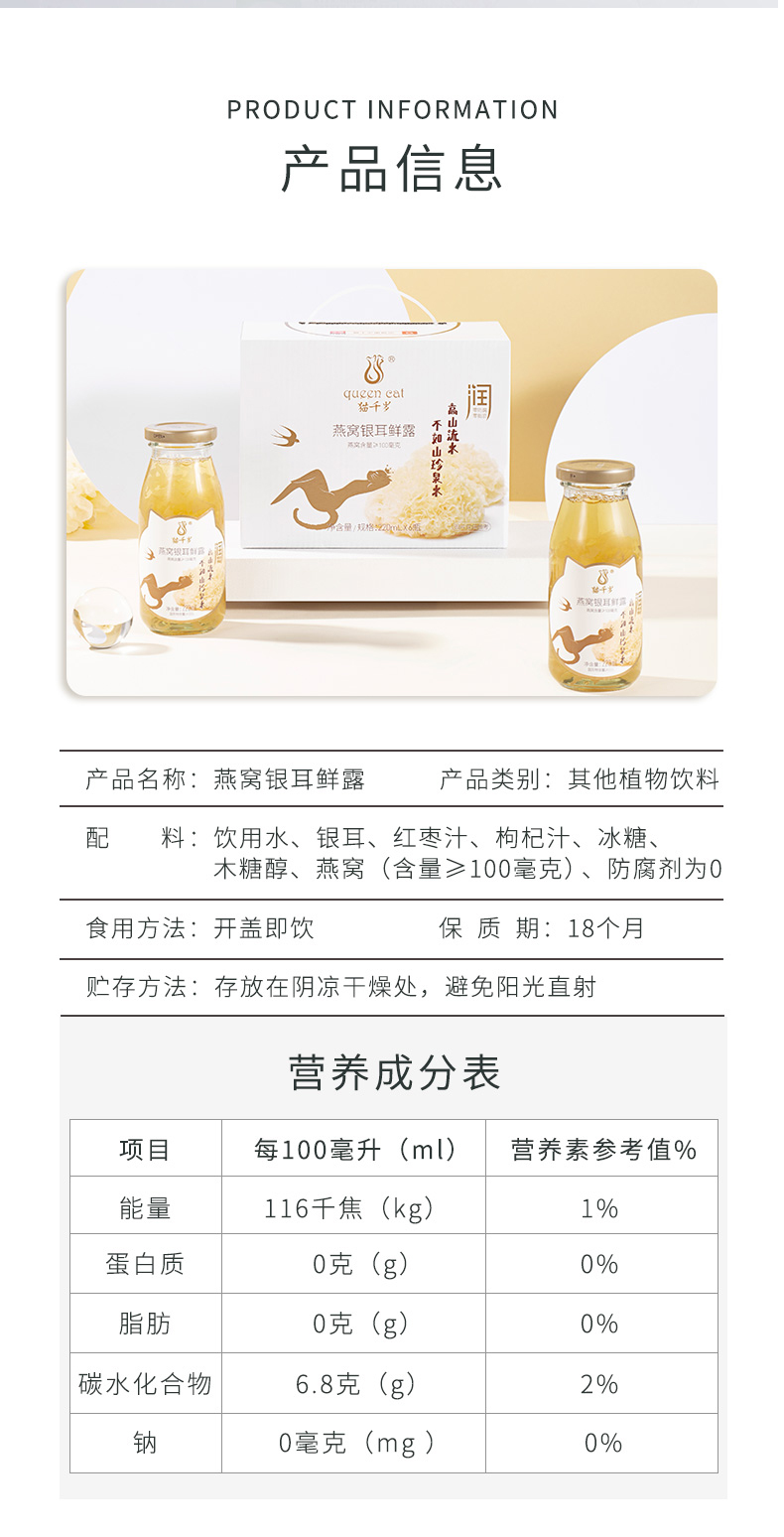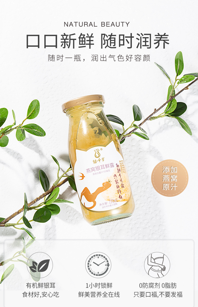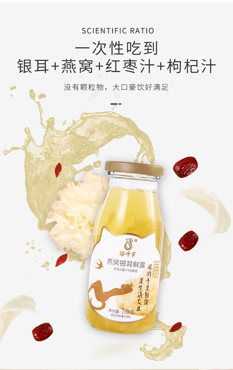 猫千岁燕窝银耳鲜露羹冰糖桂圆红枣枸杞汁炖盅代餐食品 220ml*6瓶