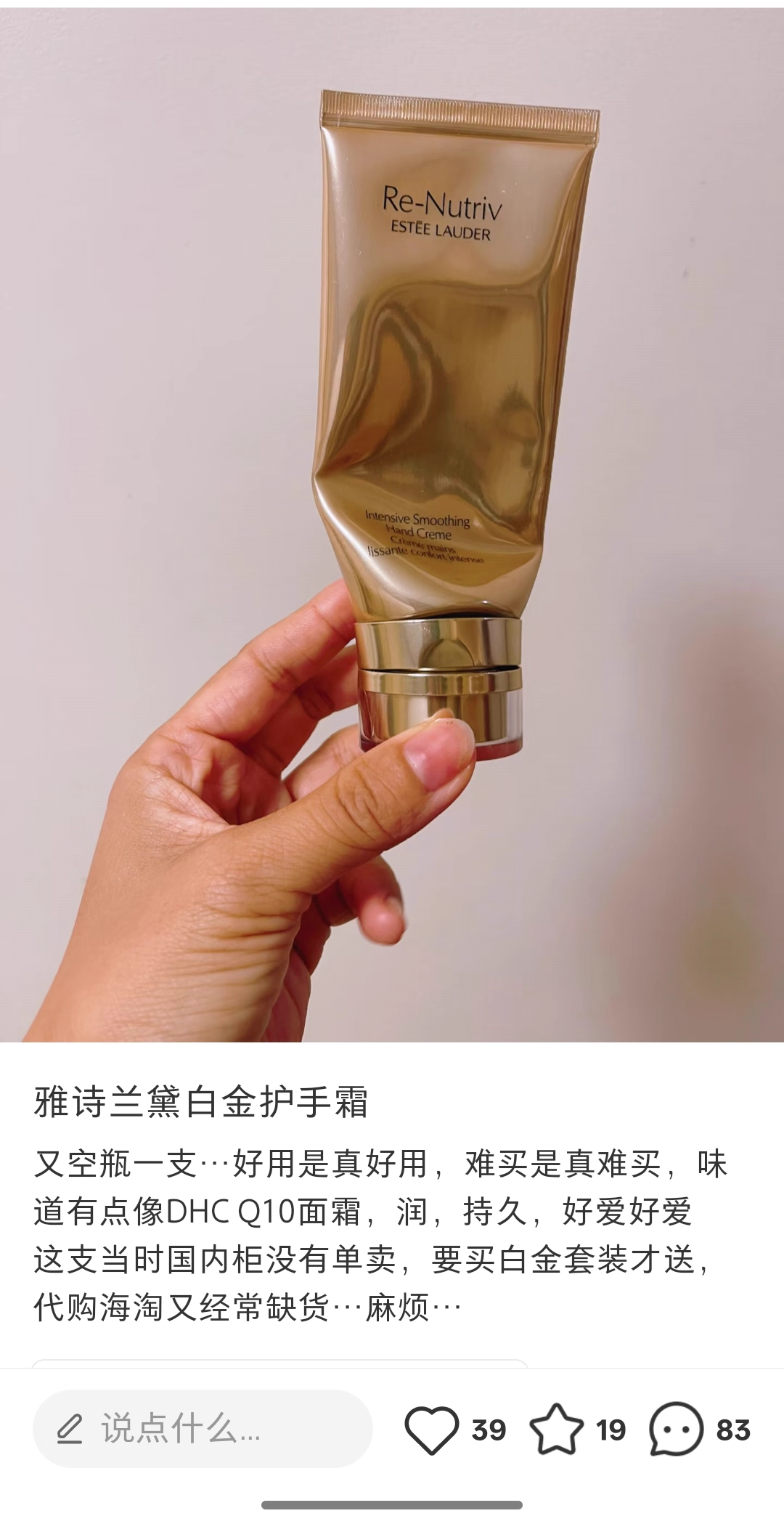 【时间换价格,香港发货路上要走七天左右】Estee Lauder/雅诗兰黛白金护手霜30ml (有效期至:2028年4月)