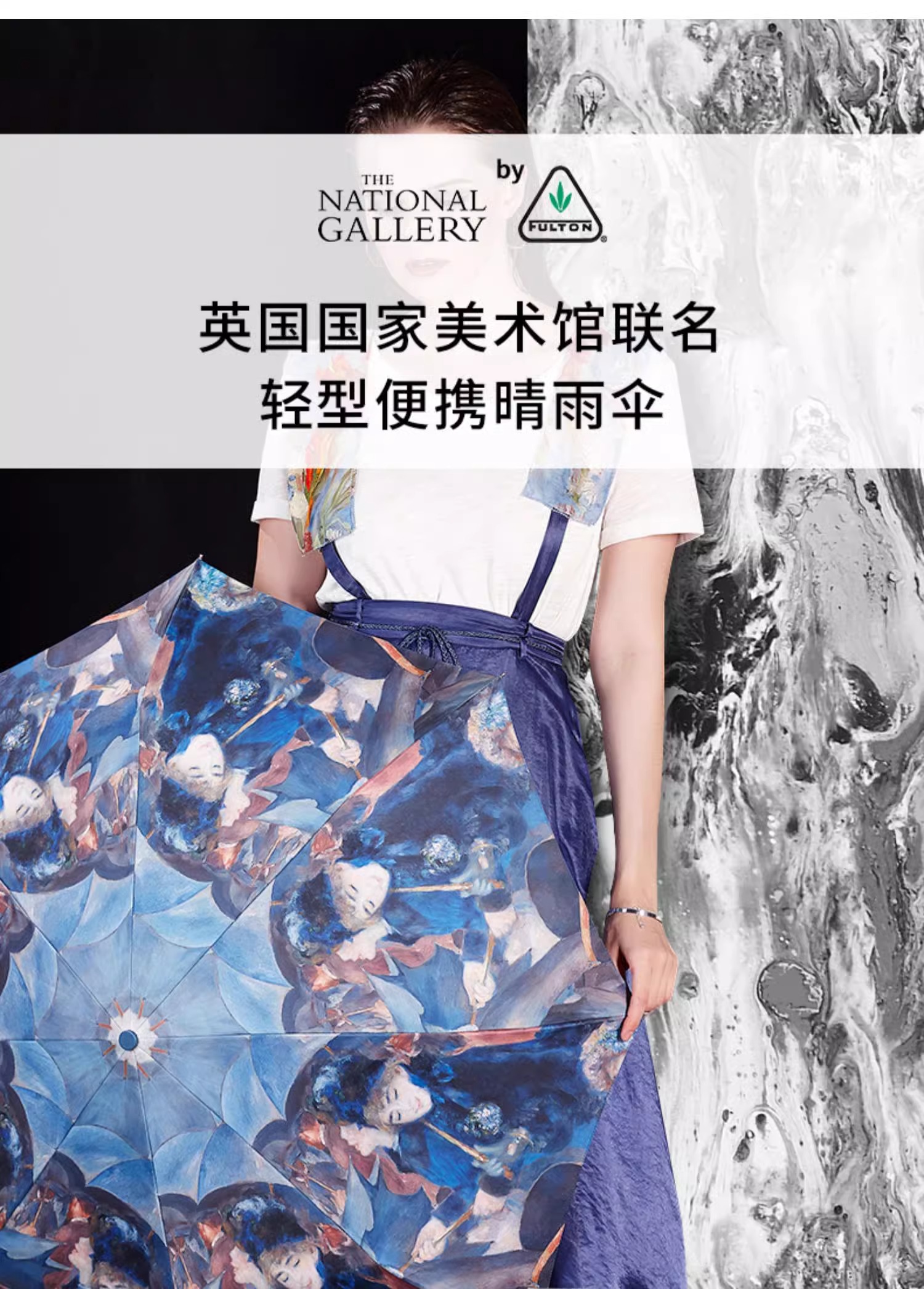 【焕新季】英国FULTON富尔顿 NG Minilite-2 UV The Umbrellas 撑伞的女人黑胶三折伞 WFNM242