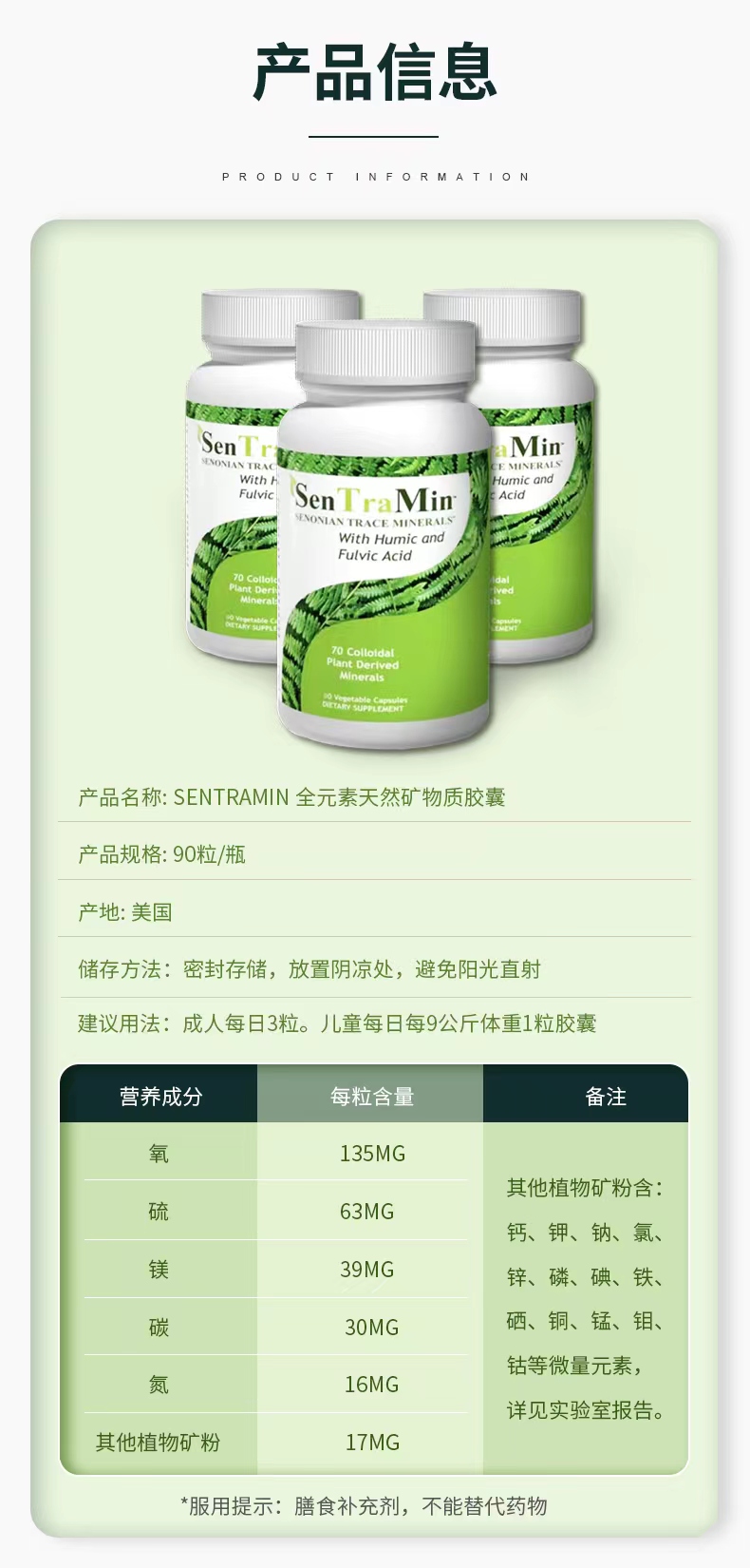 全元素天然有机矿物质胶囊 美国SenTraMin