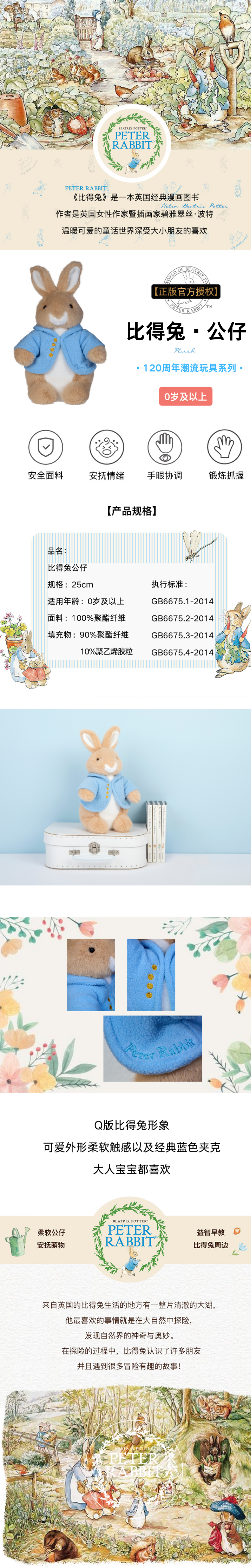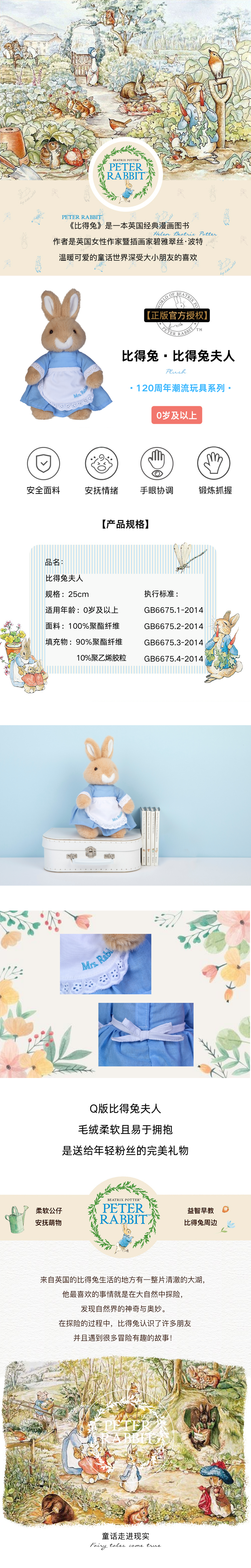 【限定礼盒】英国PETER RABBIT 比得兔120周年限定毛绒公仔中号25cm 比得兔/弗洛普西/本杰明/比得兔夫人