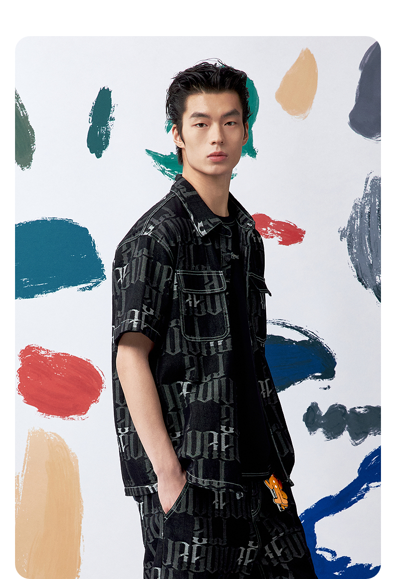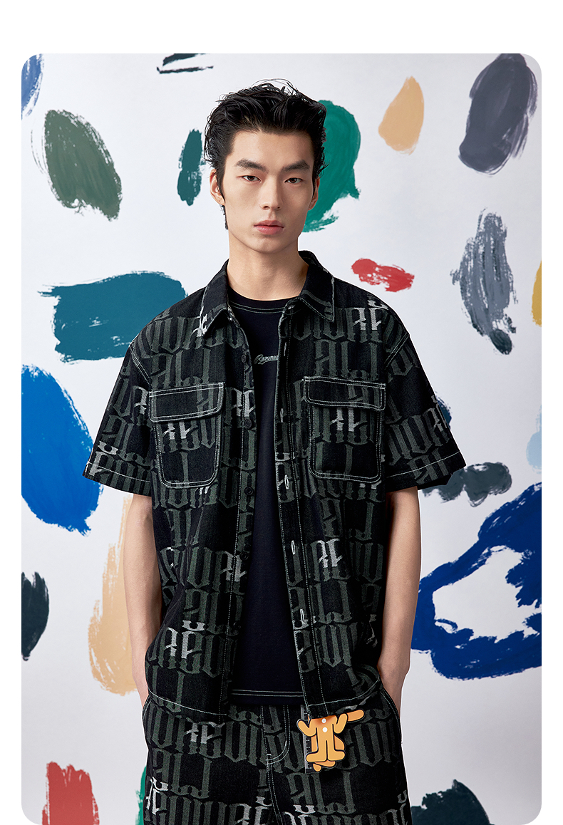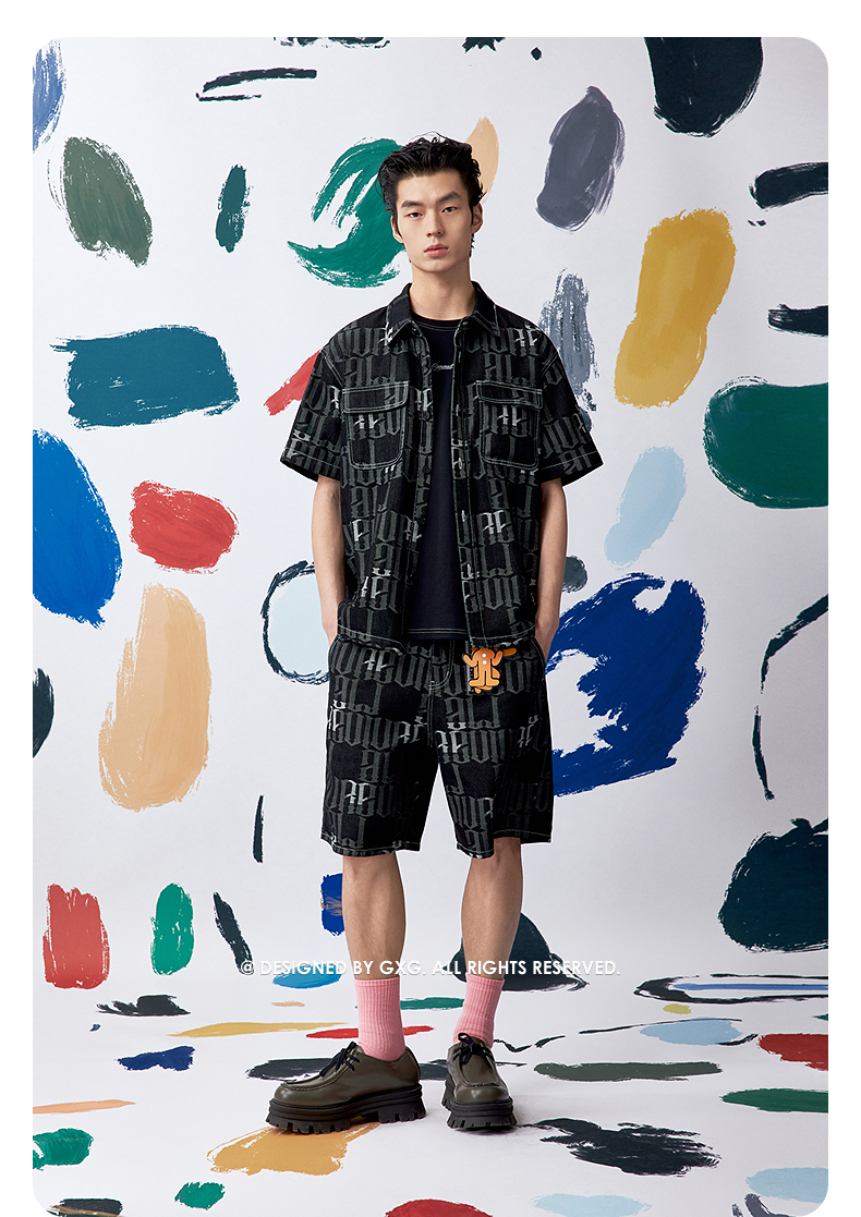 GXG男装 满印提花衬衫牛仔短袖外套时尚休闲叠穿衬衫 夏季热卖G25XE92007