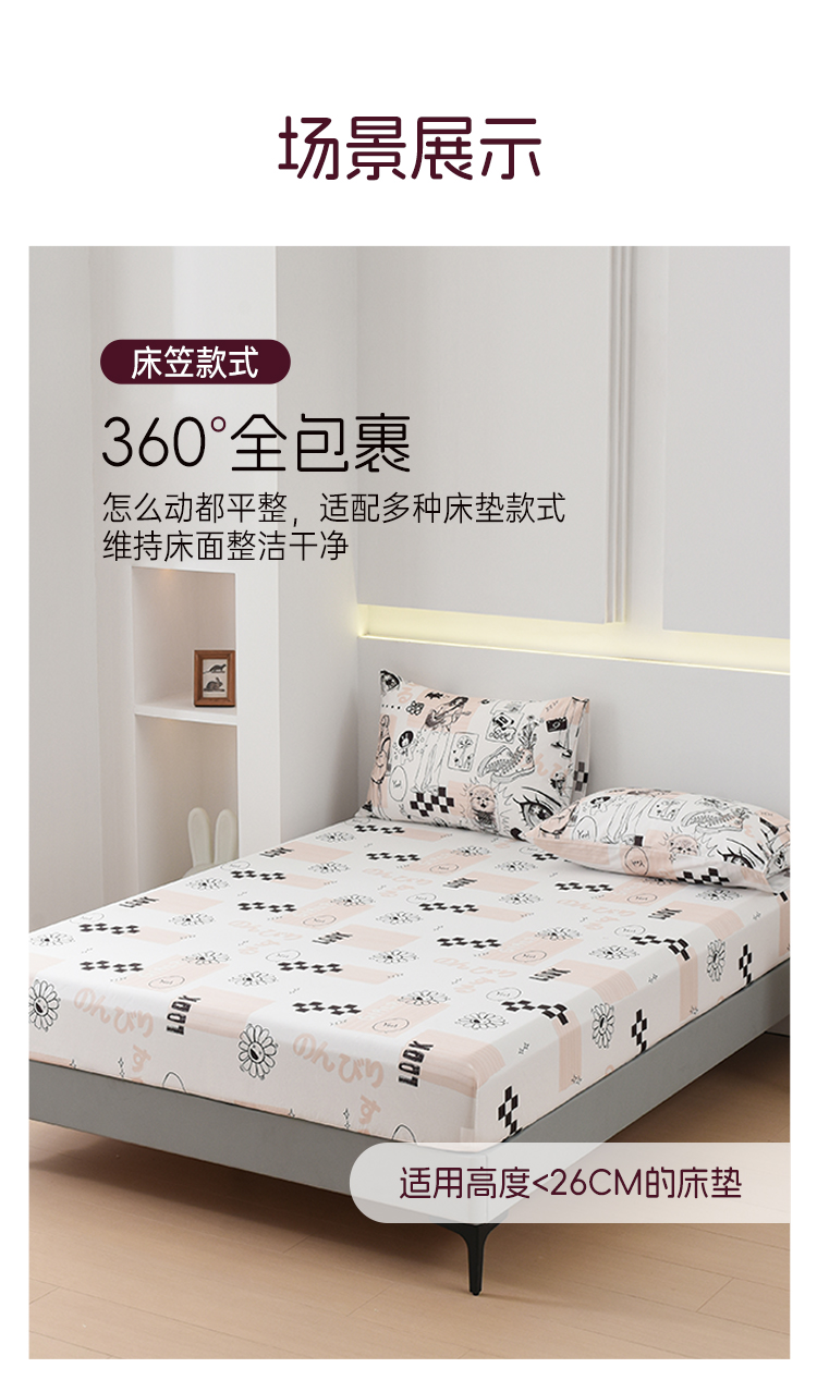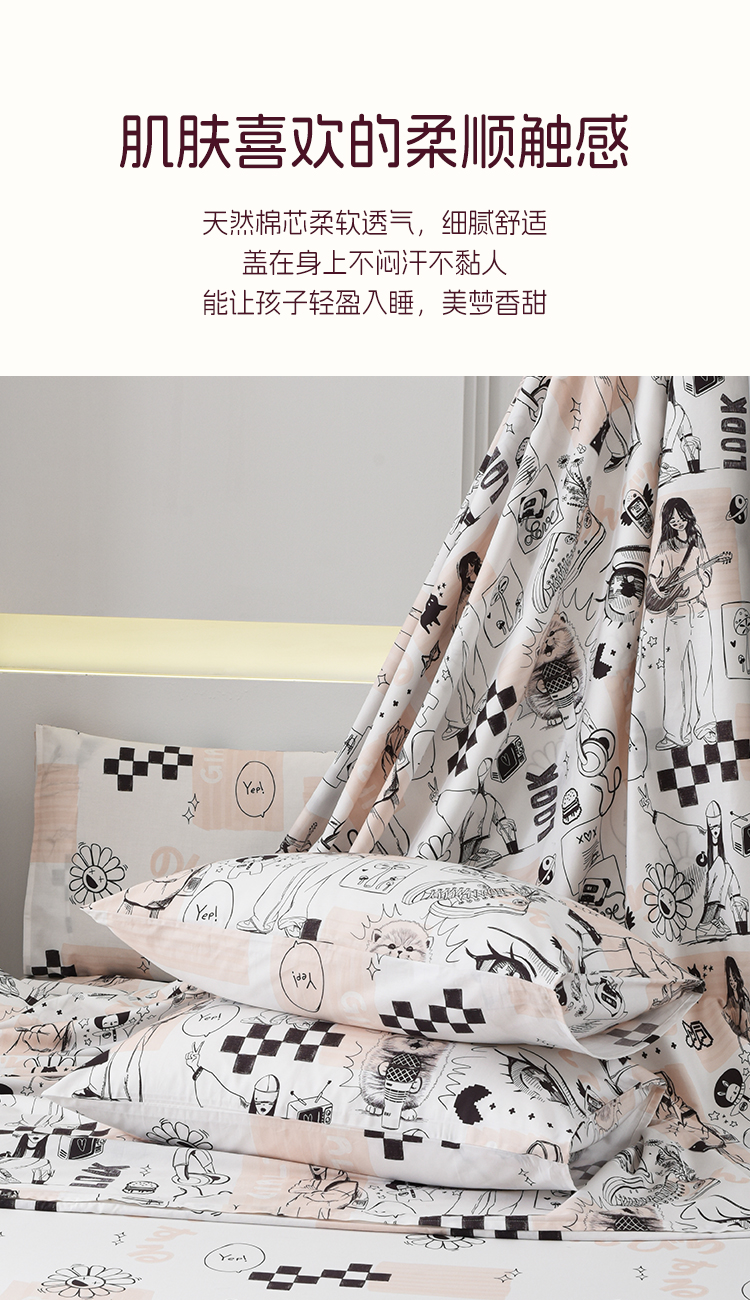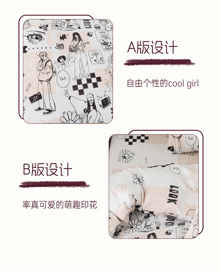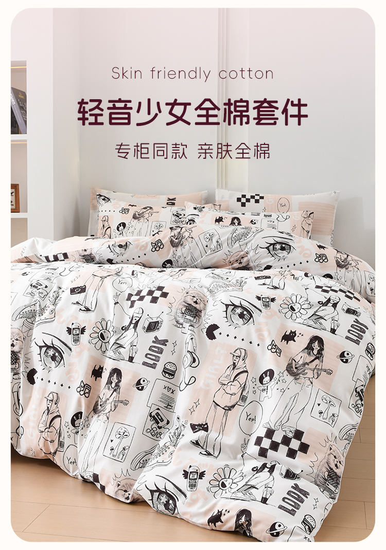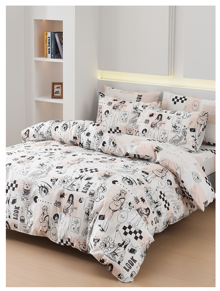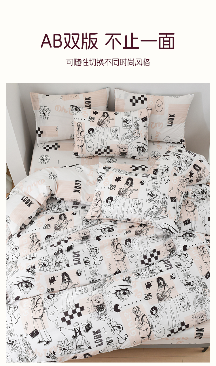 2025年春夏新款雅芳婷卡通全棉套件床笠款亲肤纯棉被套AB双面床品