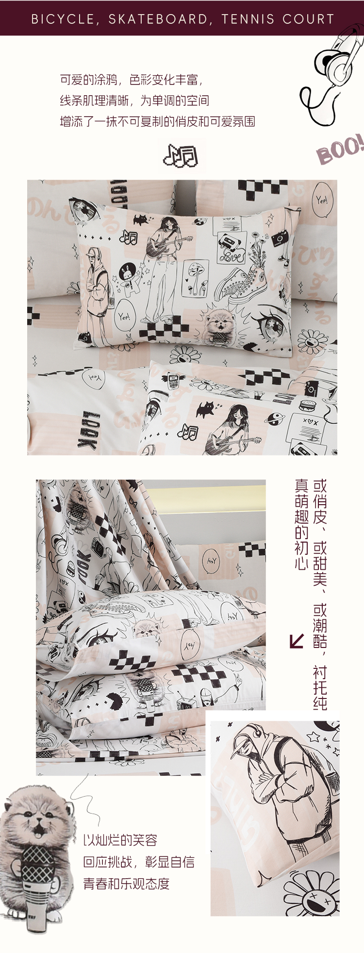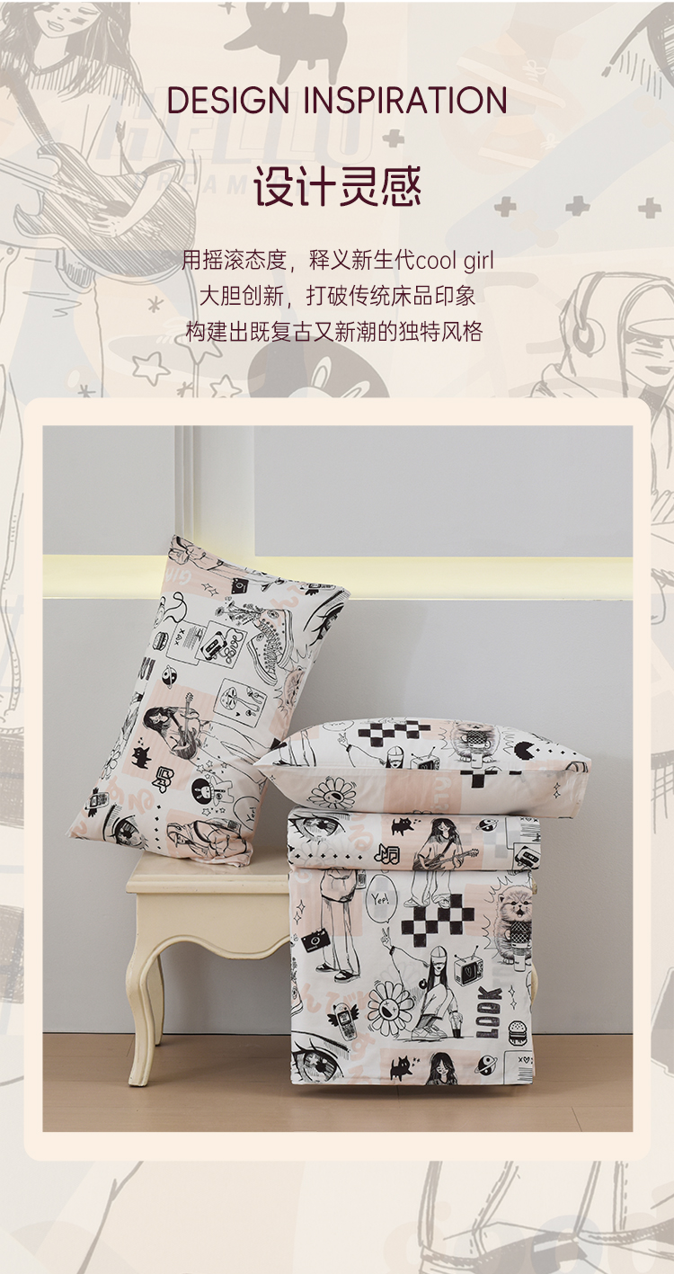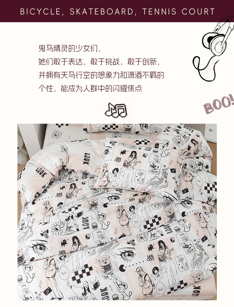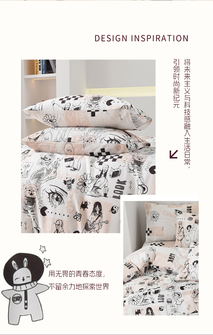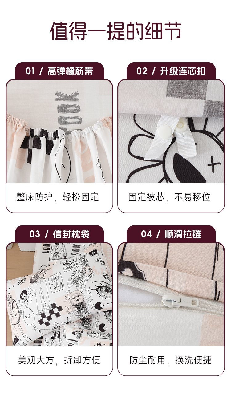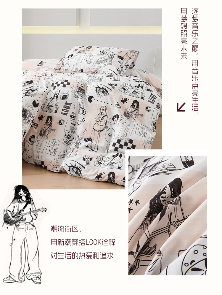 2025年春夏新款雅芳婷卡通全棉套件床笠款亲肤纯棉被套AB双面床品