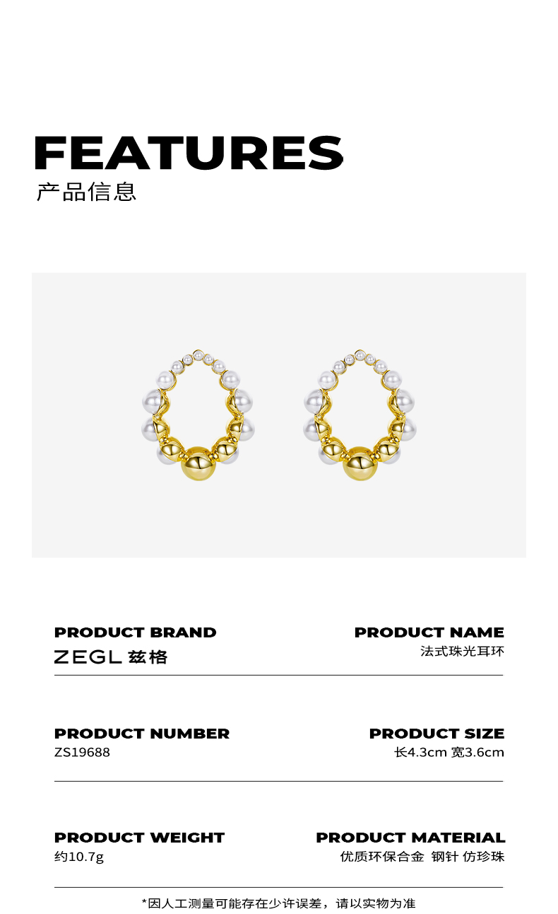 ZEGL巴洛克人工珍珠耳环女法式复古轻奢耳钉高级感时尚网红耳饰品