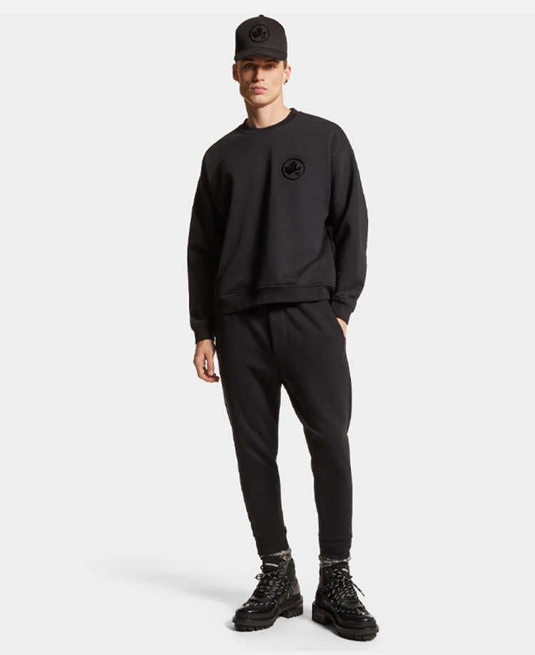 DSQUARED2 男士枫叶徽标贴片印花弹力棉混纺抓绒休闲运动裤 黑色 S74KB0932 D25006 900
