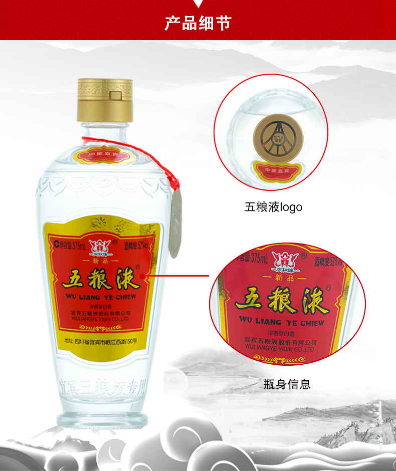 (整箱)五粮液·新品交杯牌 52度 375mL*6瓶