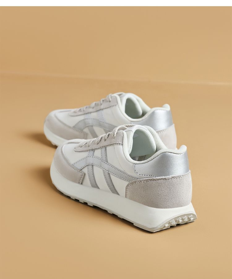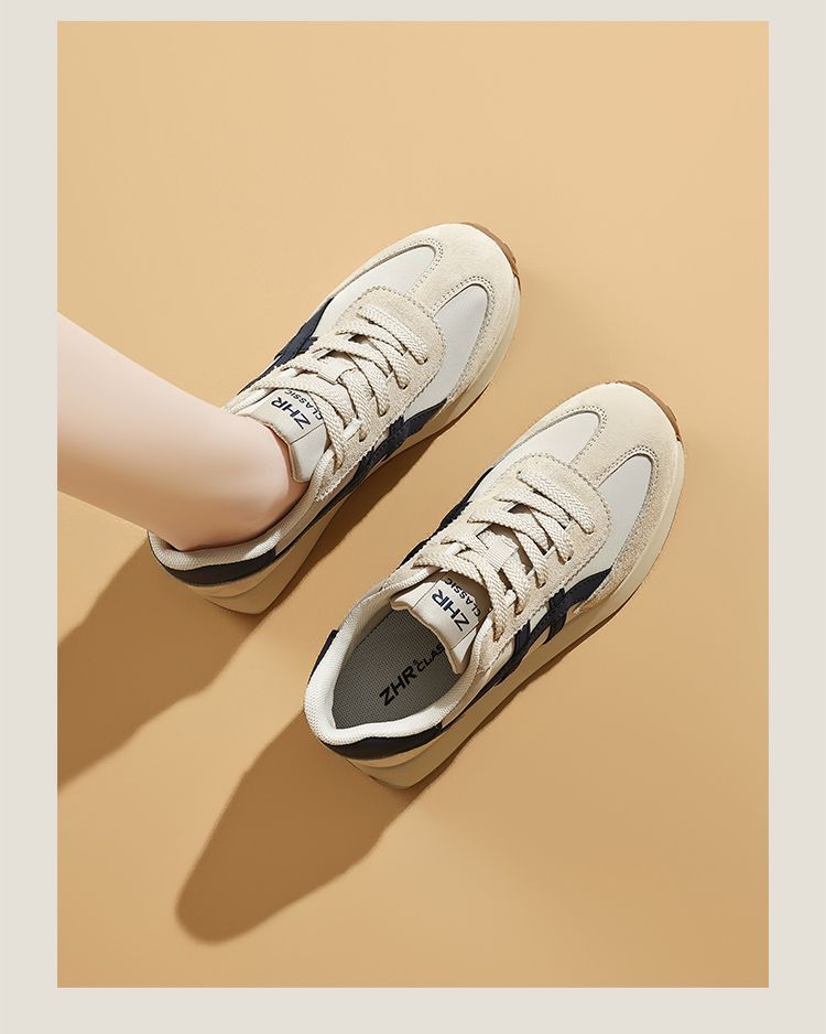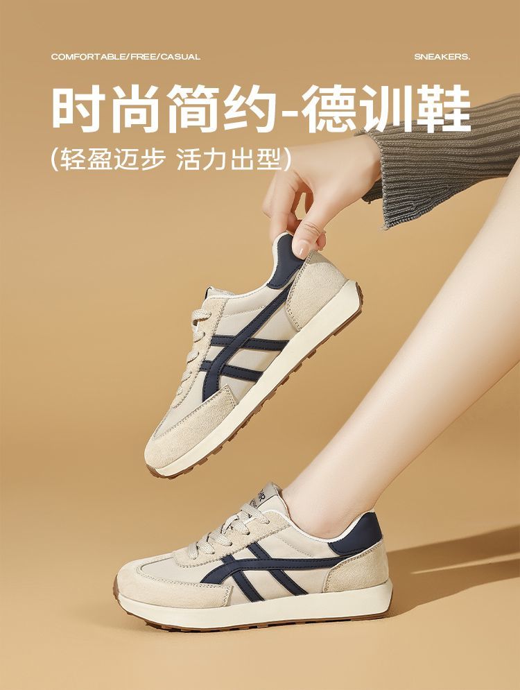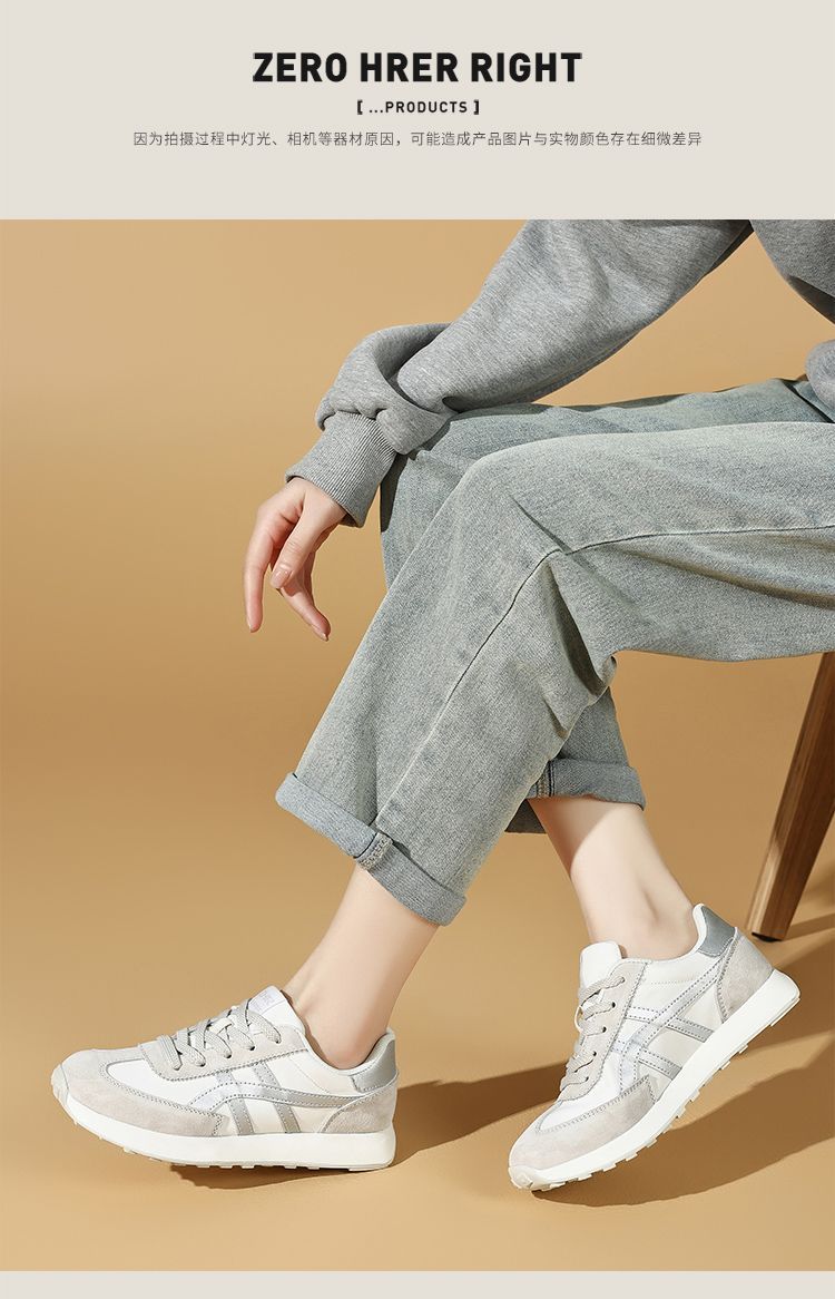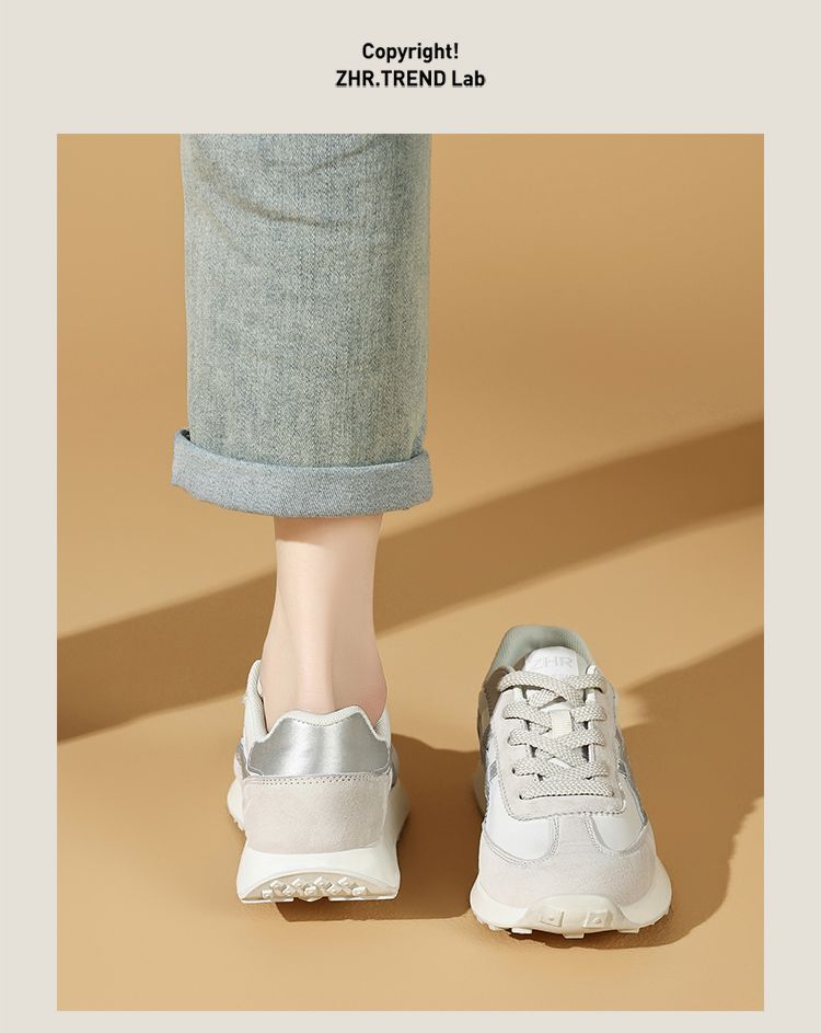 ZHR银色真皮德训鞋女2025春季新款时尚百搭休闲鞋透气软底休闲鞋