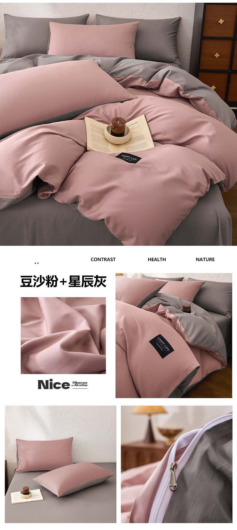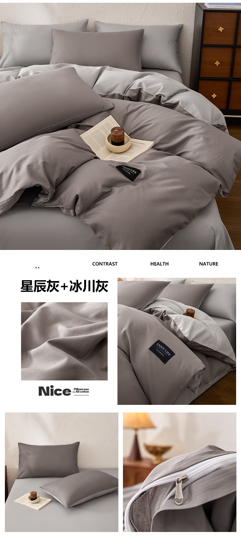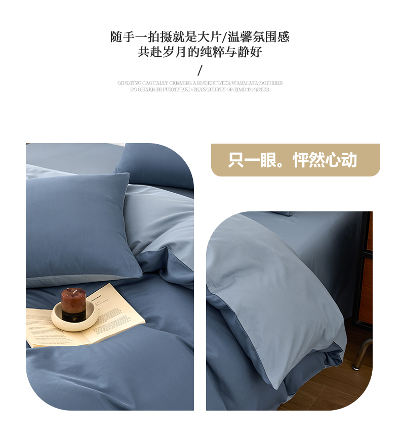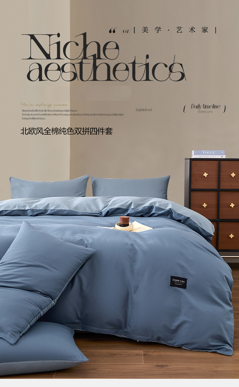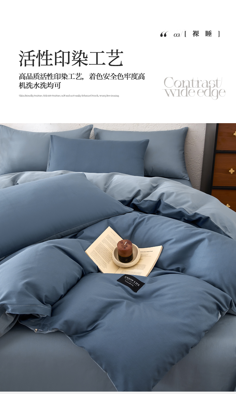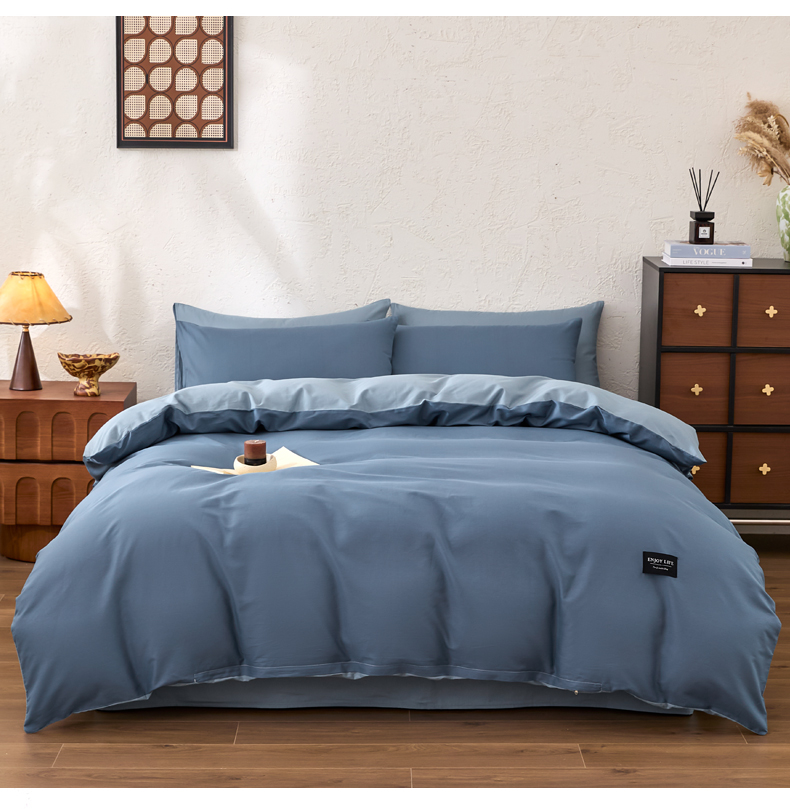 【品牌直发】加倍生活 全棉纯棉纯色双拼四件套-北欧风系列 12色可选 学生宿舍三件套