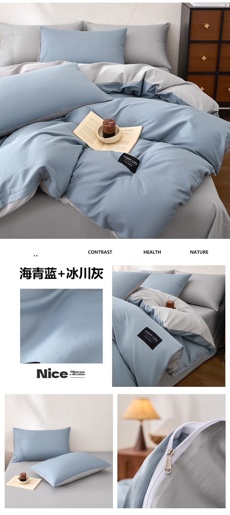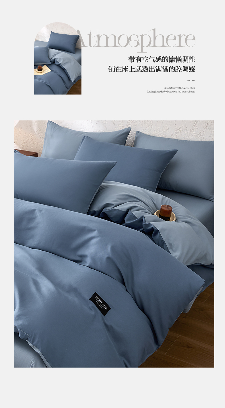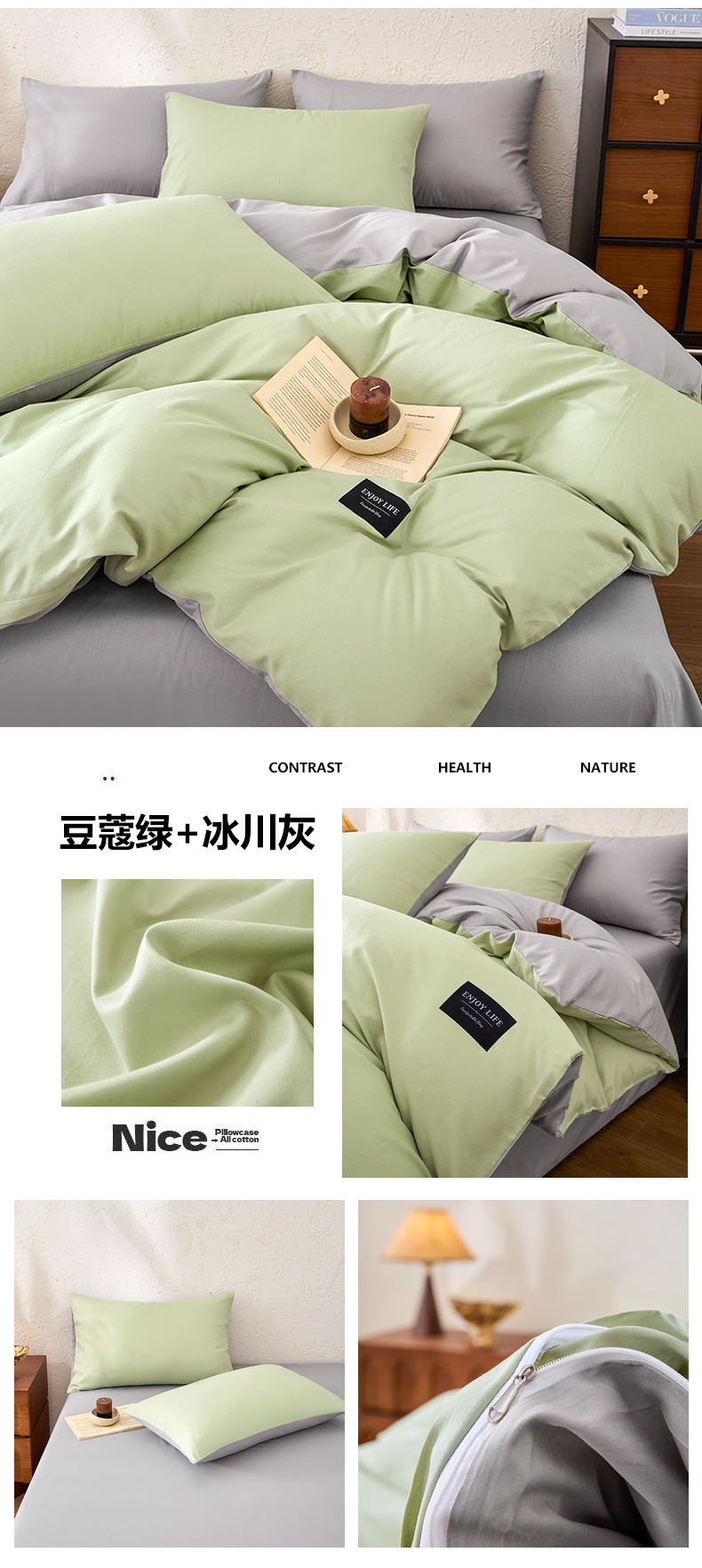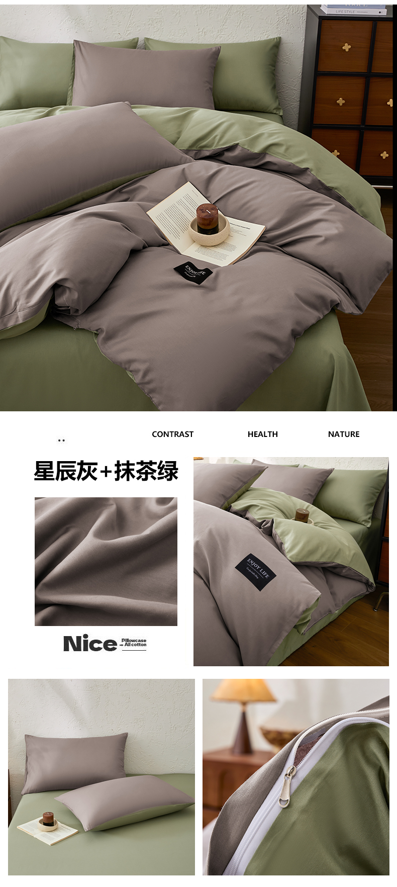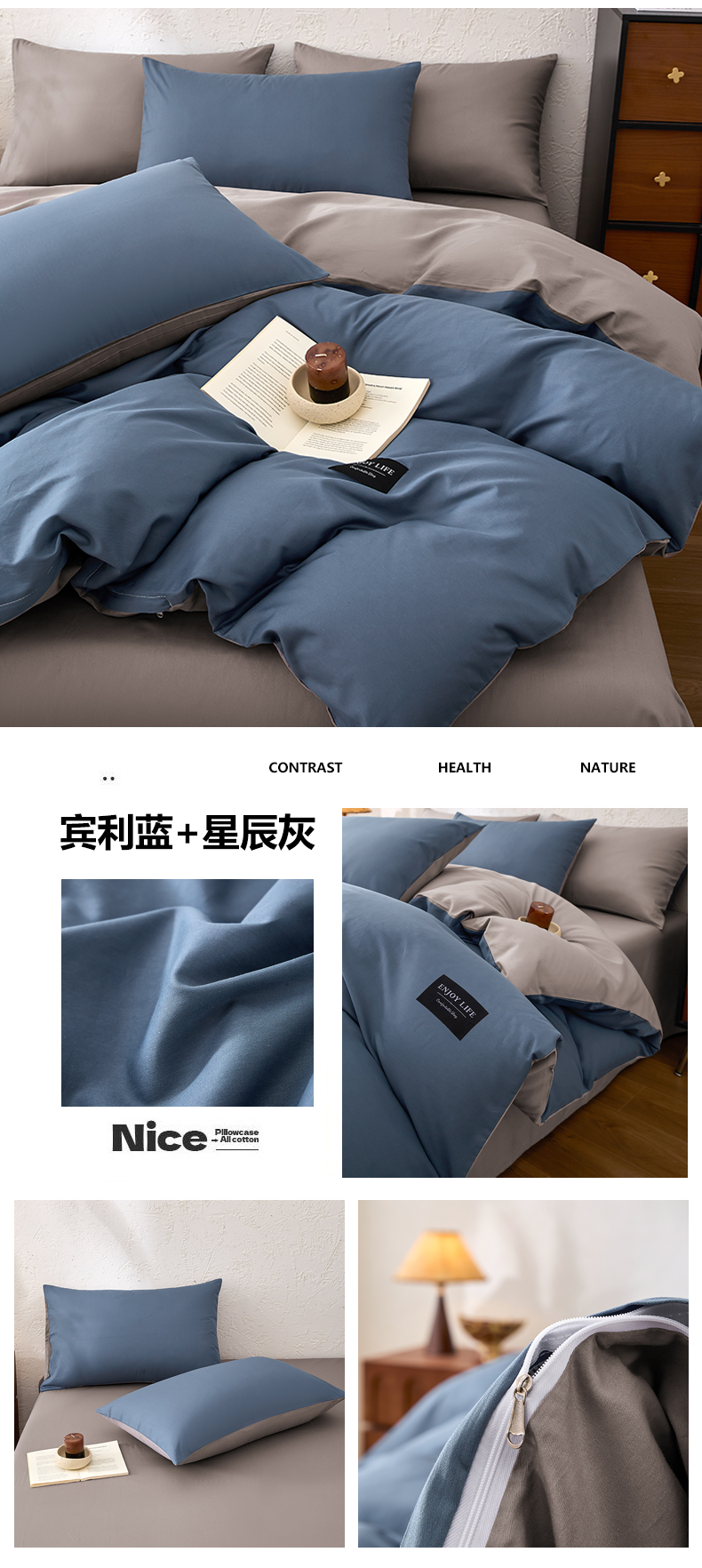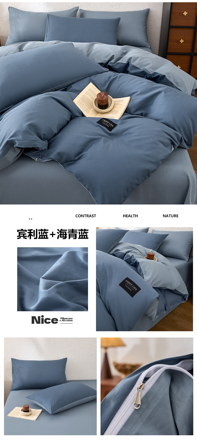 【品牌直发】加倍生活 全棉纯棉纯色双拼四件套-北欧风系列 12色可选 学生宿舍三件套