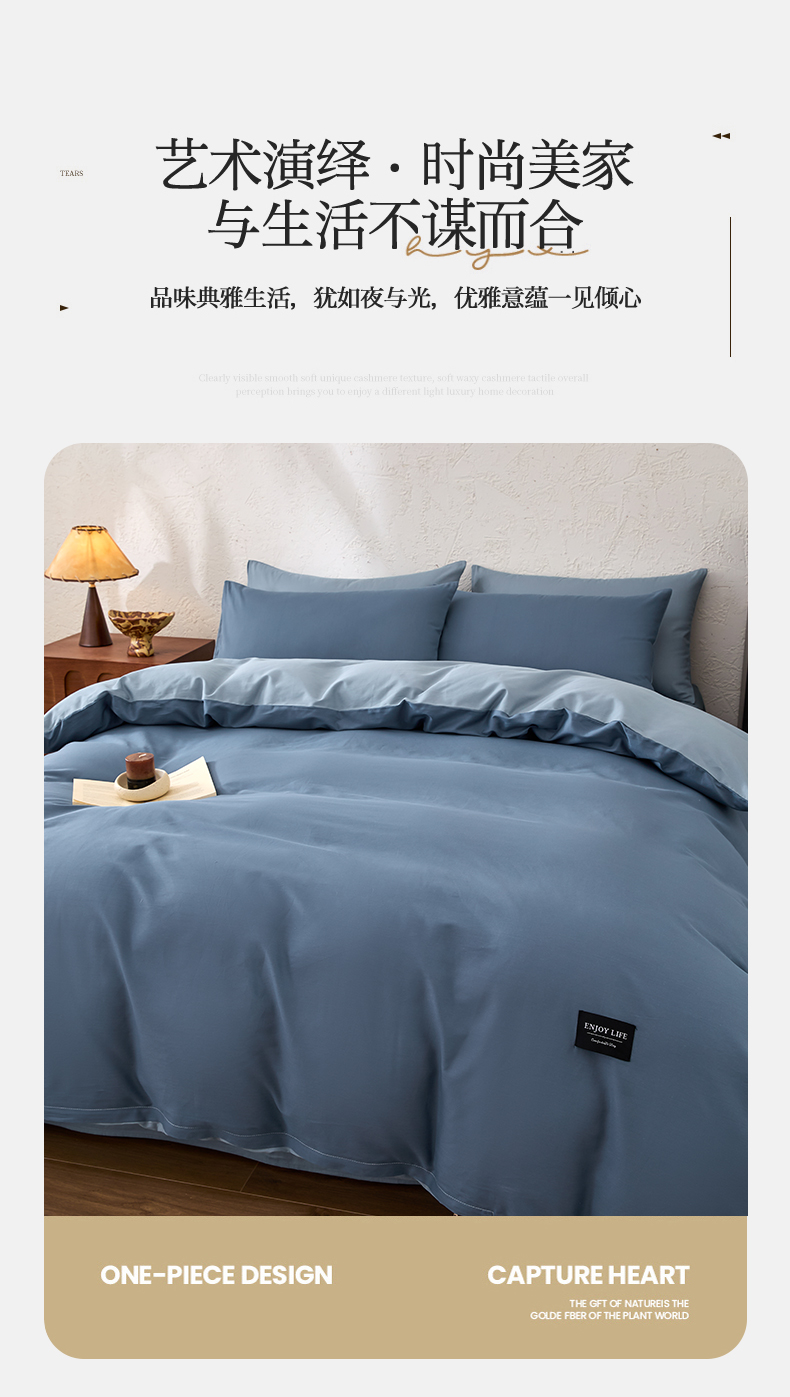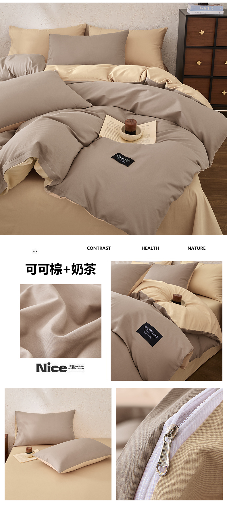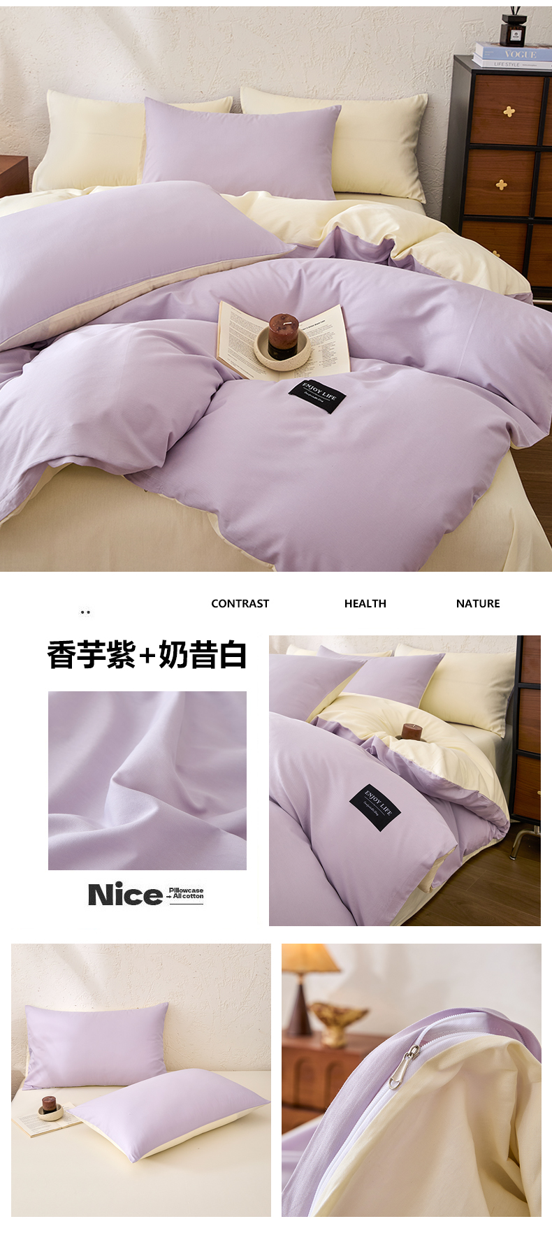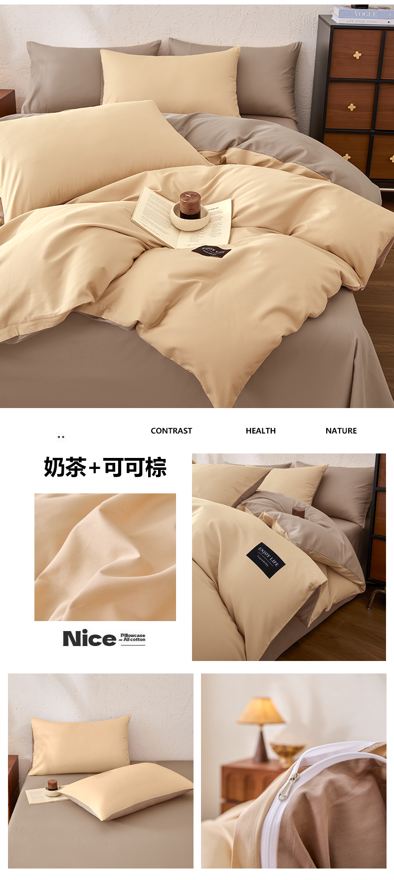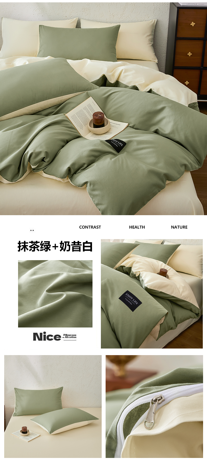 【品牌直发】加倍生活 全棉纯棉纯色双拼四件套-北欧风系列 12色可选 学生宿舍三件套