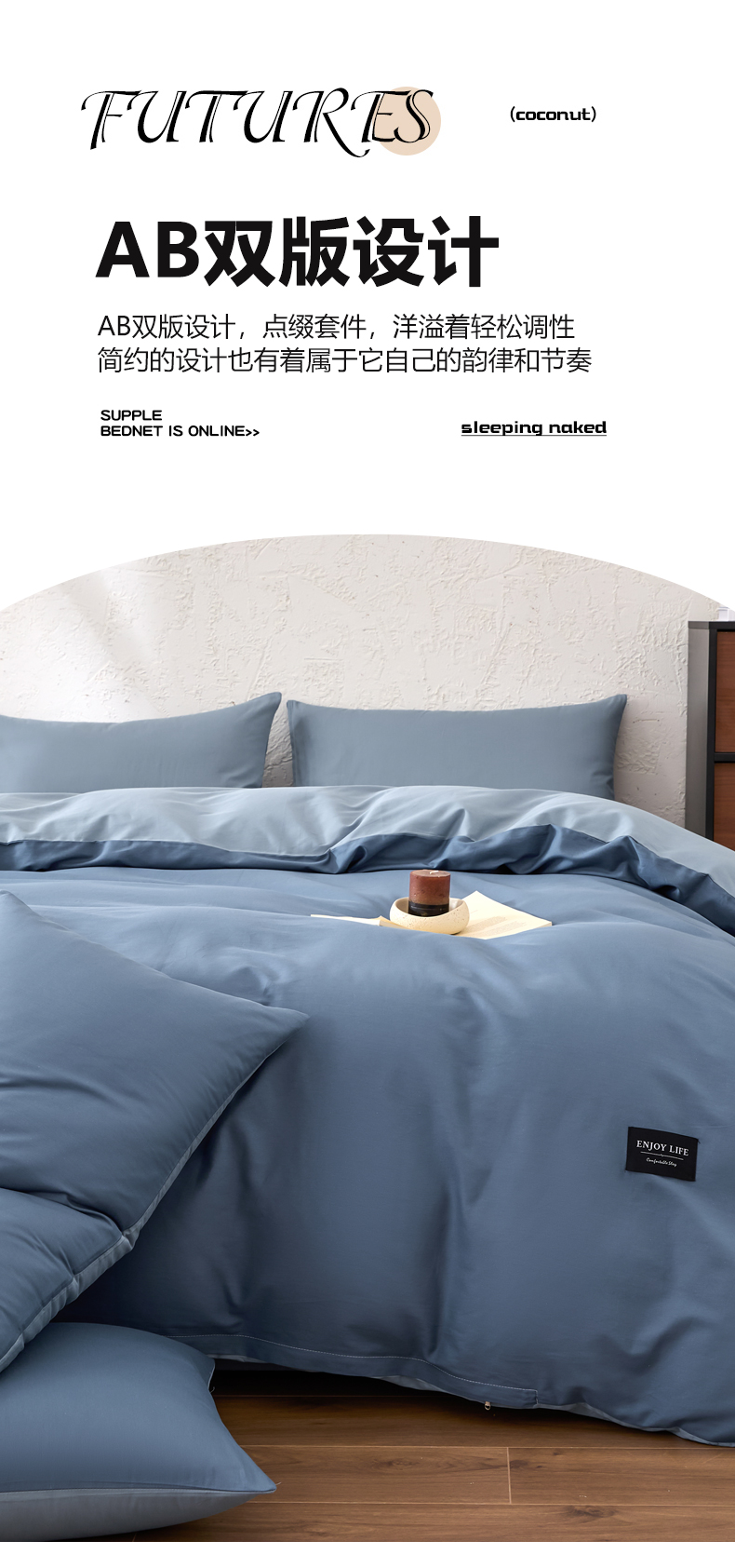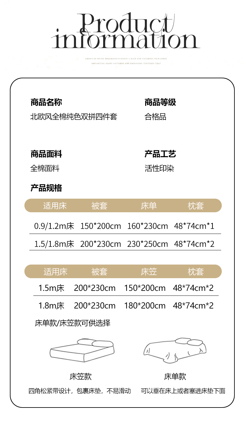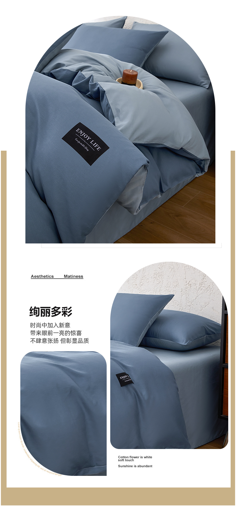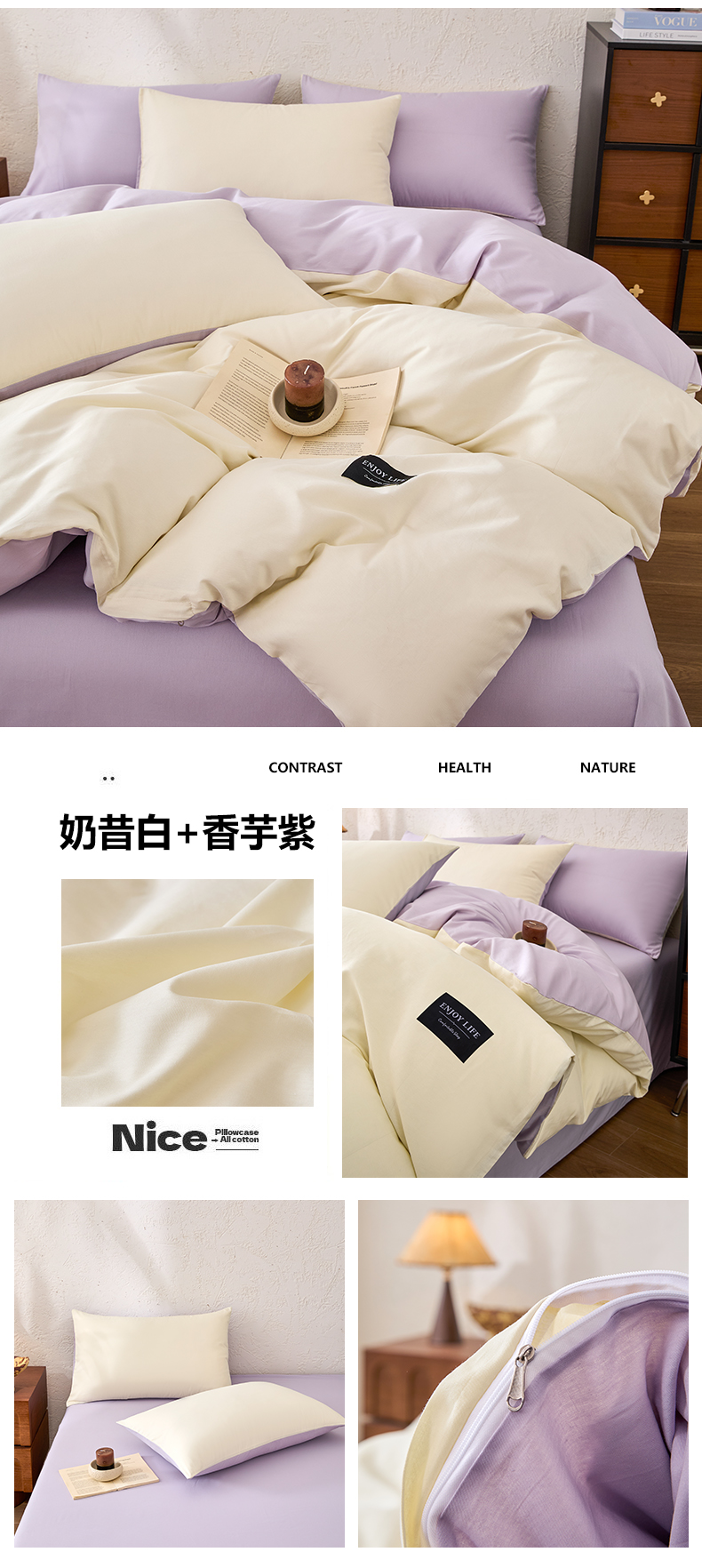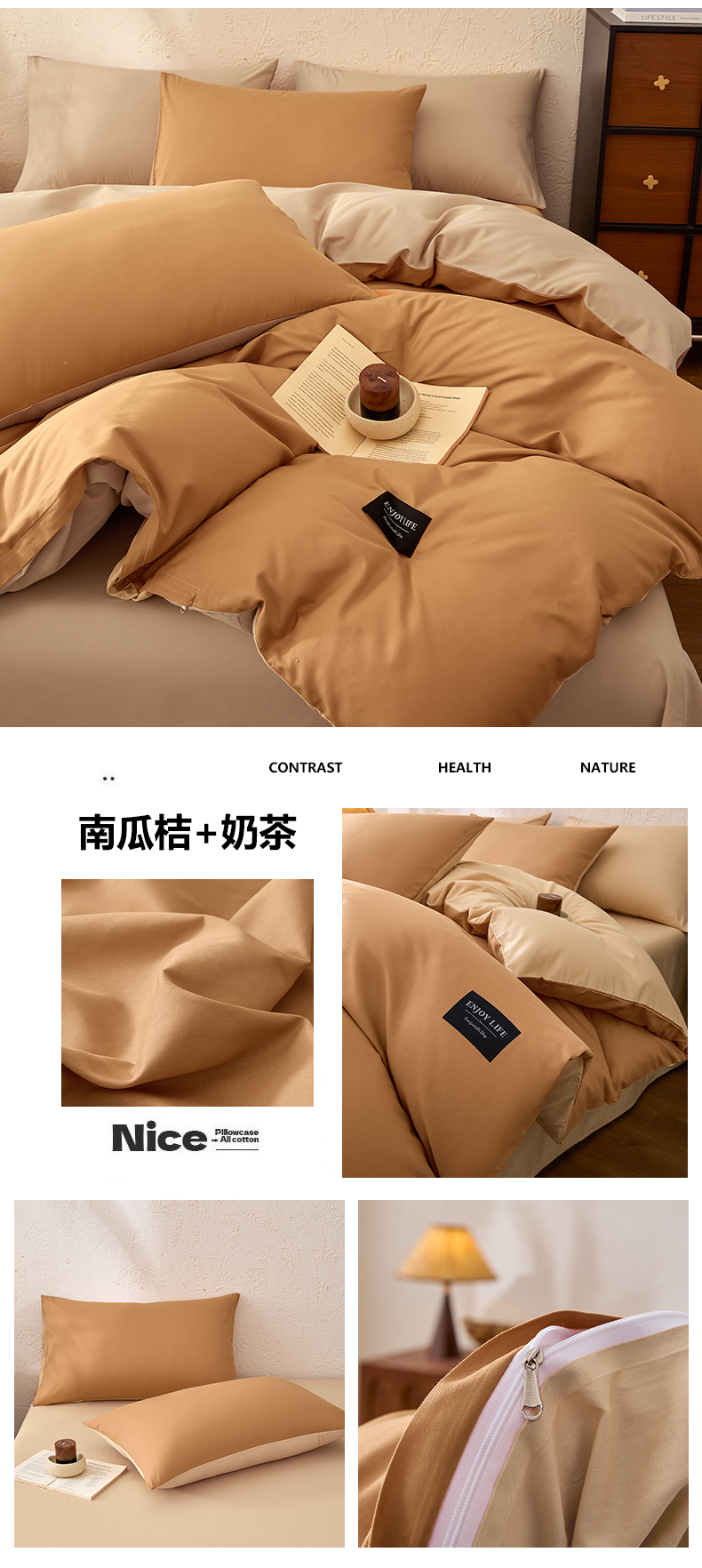 【品牌直发】加倍生活 全棉纯棉纯色双拼四件套-北欧风系列 12色可选 学生宿舍三件套
