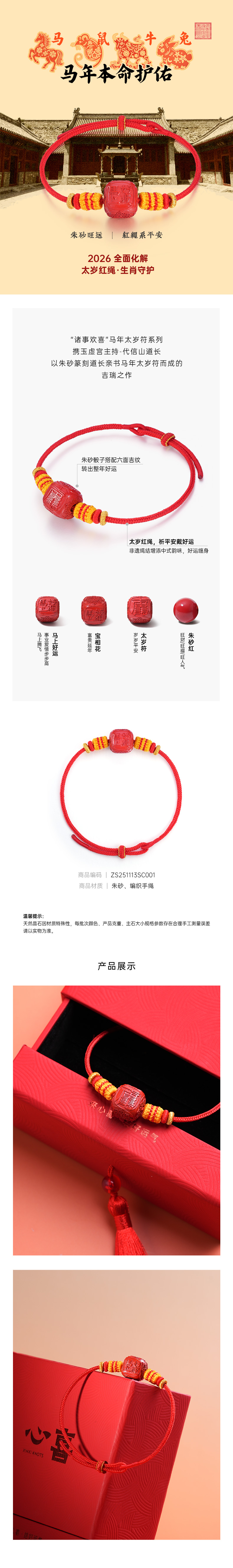 【诸事欢喜】【马年太岁符】 钻石世家X心喜 马上好运系列 马年太岁符 马年手绳 朱砂太岁符 鸿运当头 六面吉文 幸运红绳【结缘定制、无质量问题不支持退换货】预计3-5天发货
