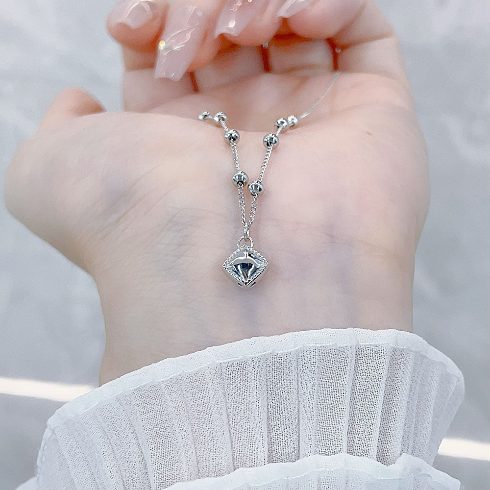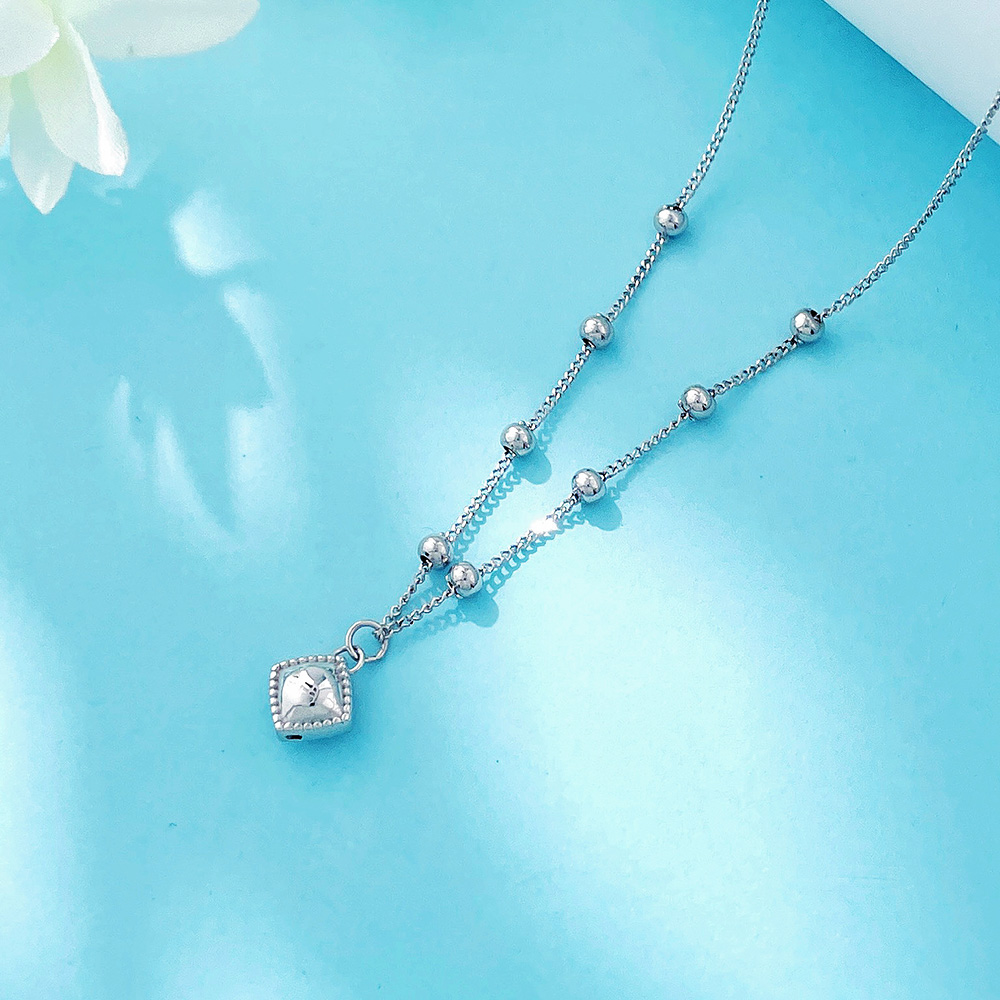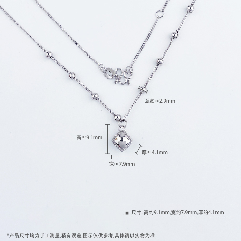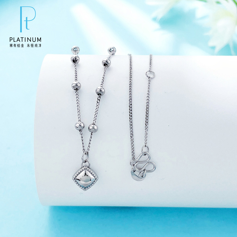 【限时8.8折】【线上铂金馆】PT950 【国际铂金协会】铂金空心间金珠调节极简几何菱形方牌套链(BTL00368)预售产品下单后不退款不退货不换货不补差价)