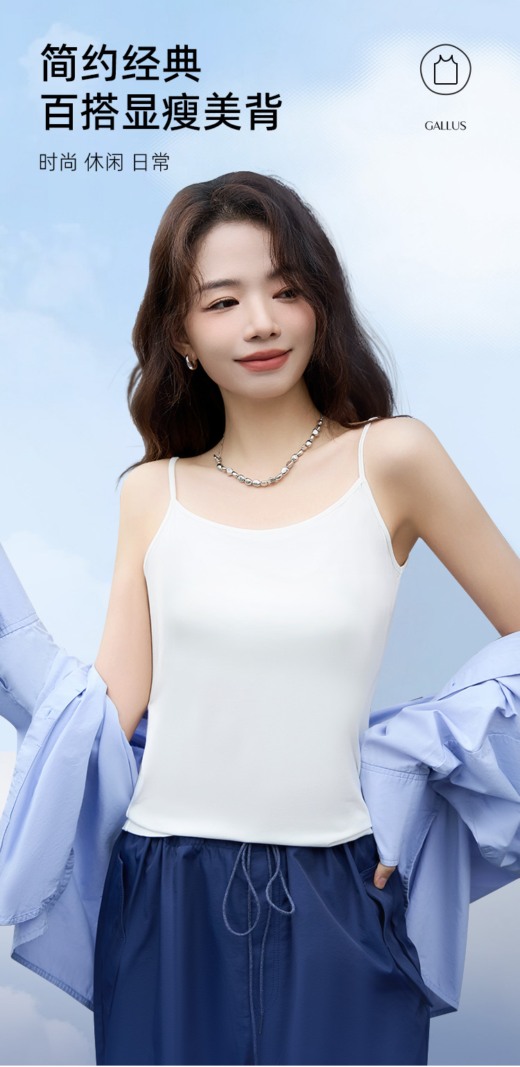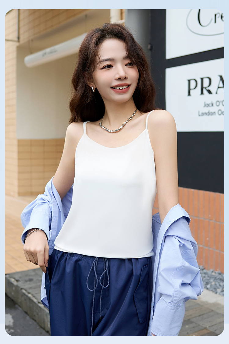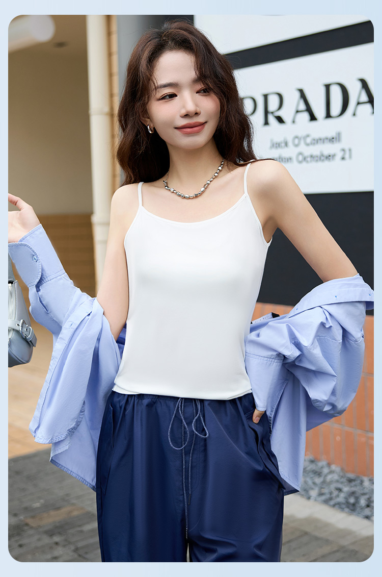 U领吊带优可丝面料舒适透气美背纯色吊带修身时尚百搭打底内搭夏DD1617
