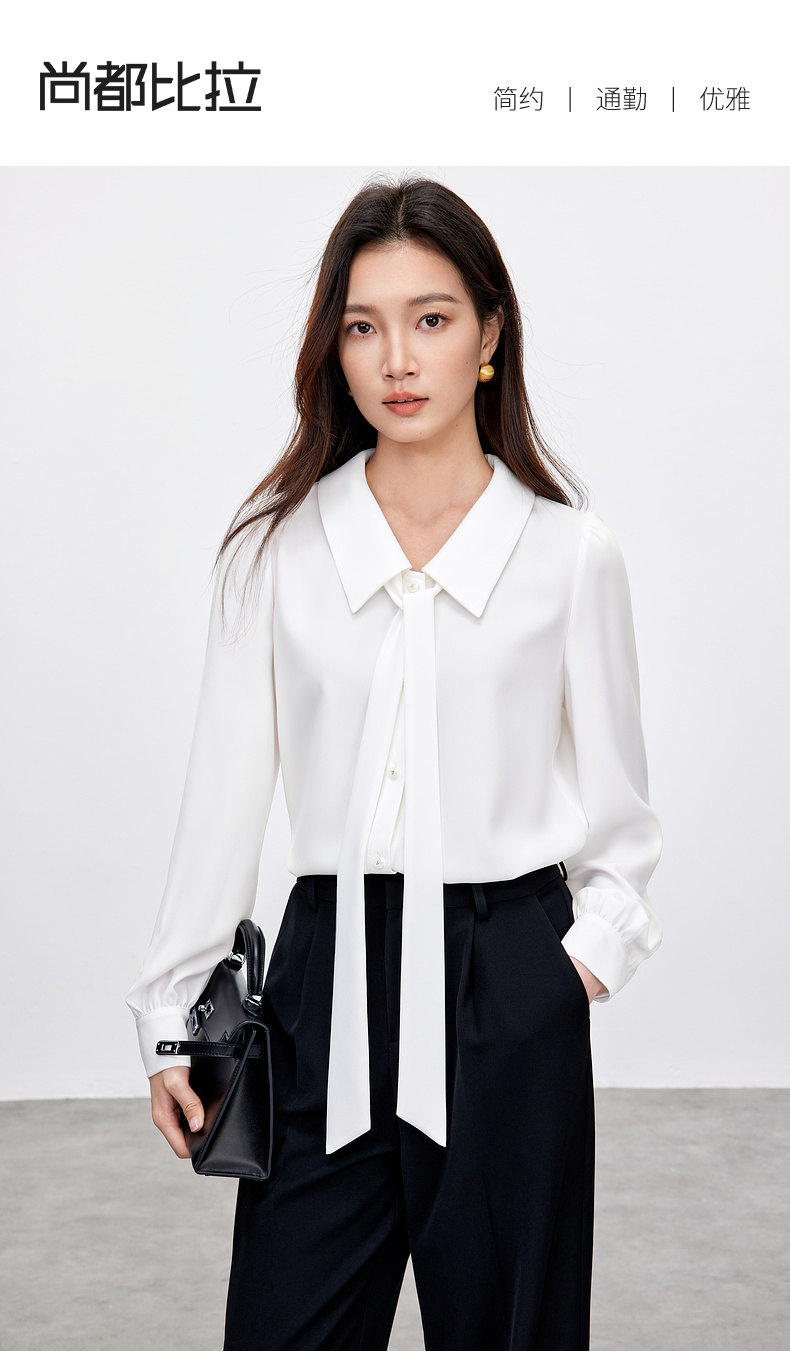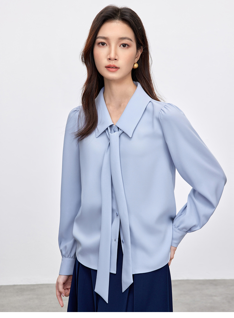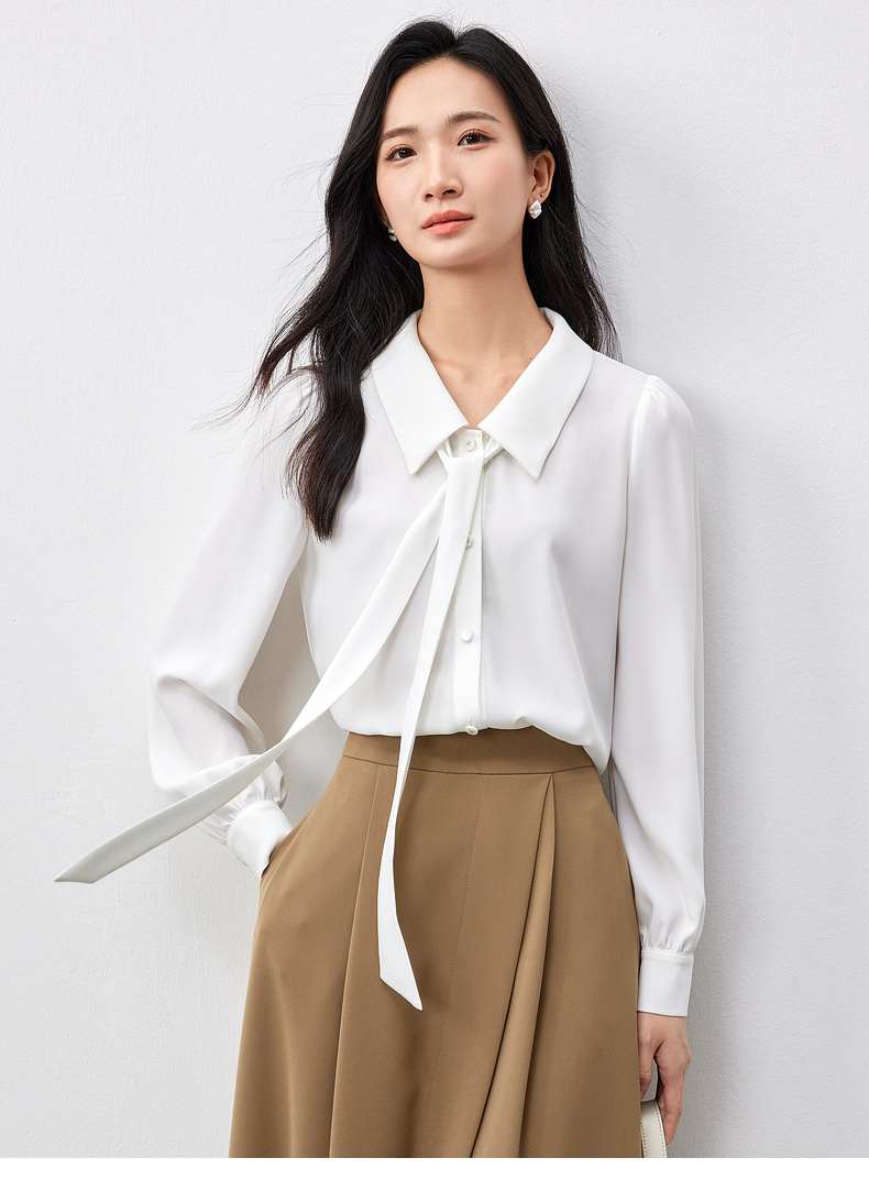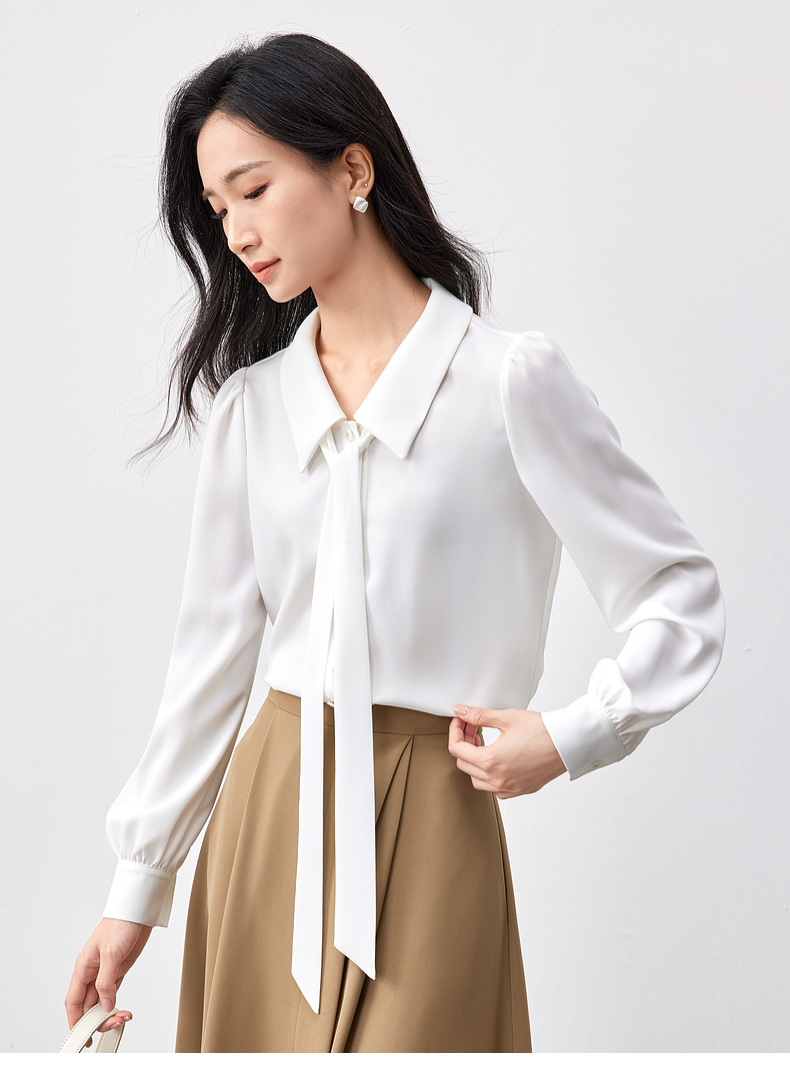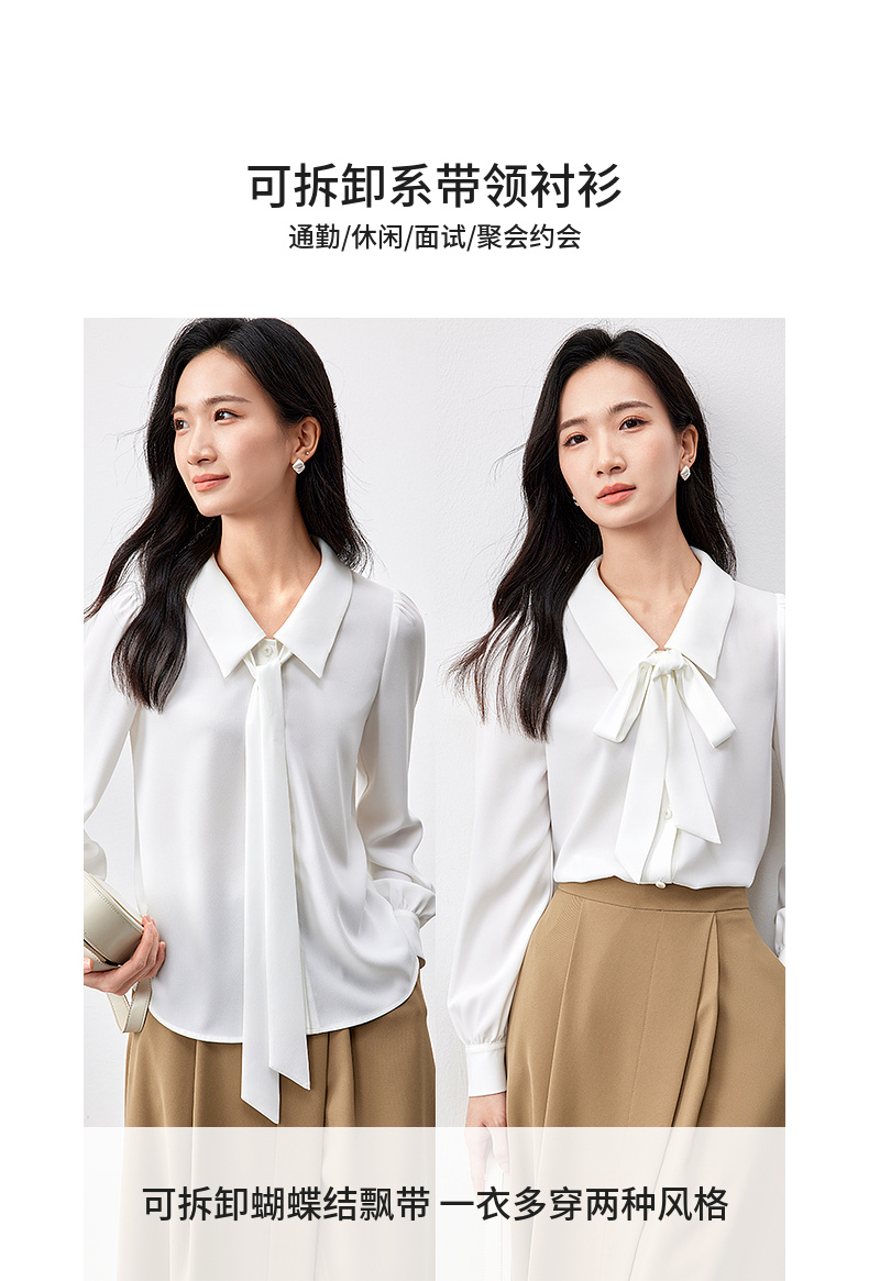 【内购】职场办公室可拆卸飘带领非正式通勤雪纺衬衫-151C58208