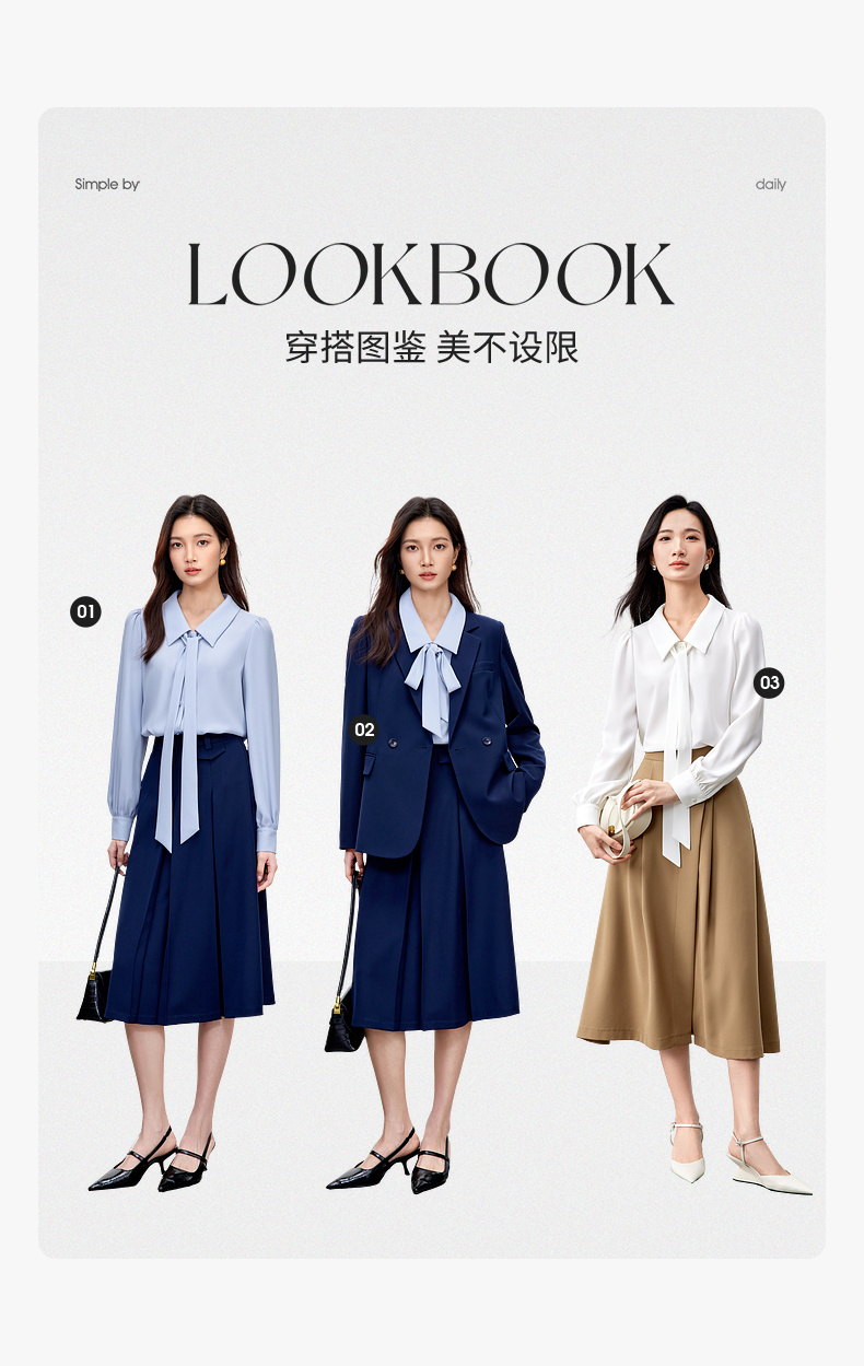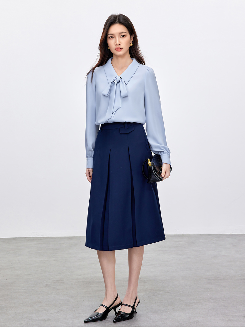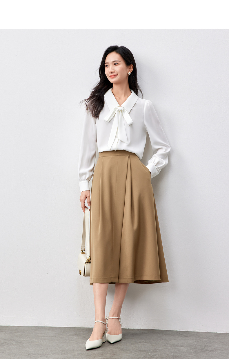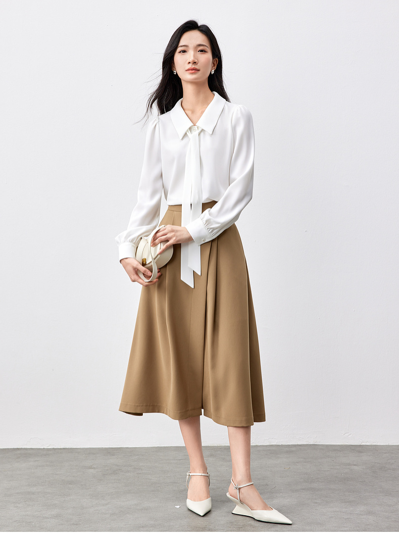 【内购】职场办公室可拆卸飘带领非正式通勤雪纺衬衫-151C58208