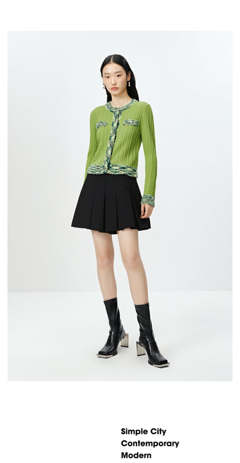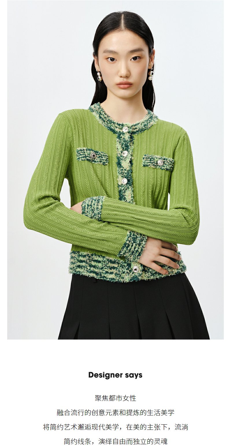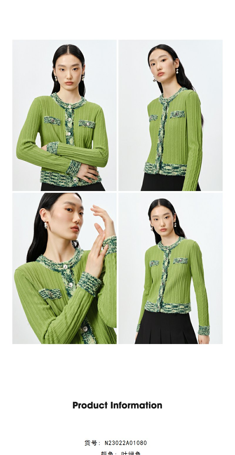 NEELLY纳俪商场同款春季新款针织衫女单排扣套头上衣开衫修身简约N23022A01080