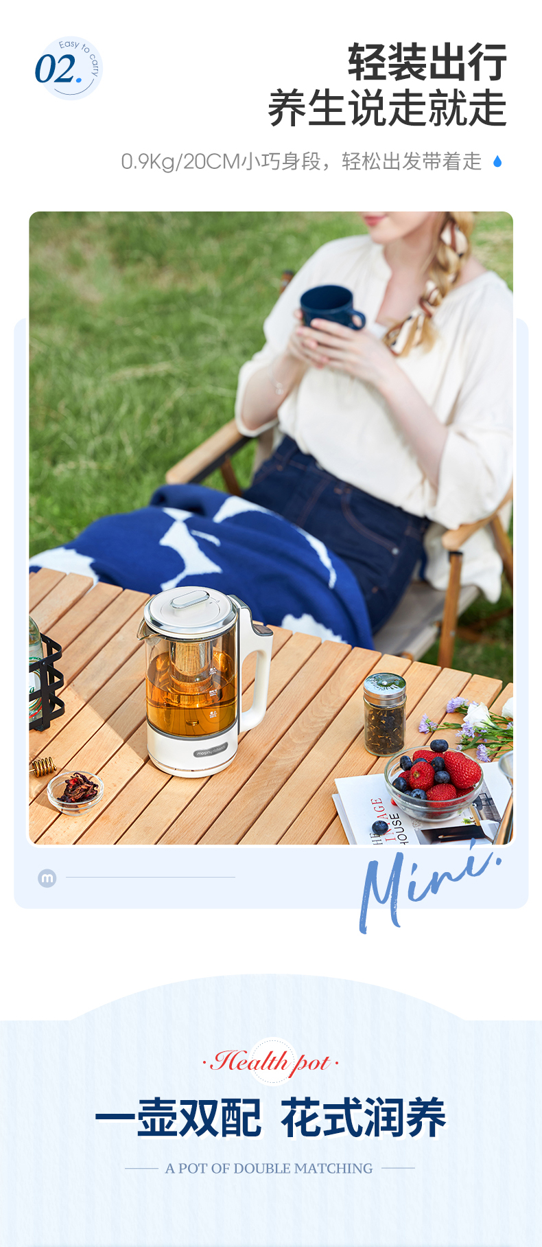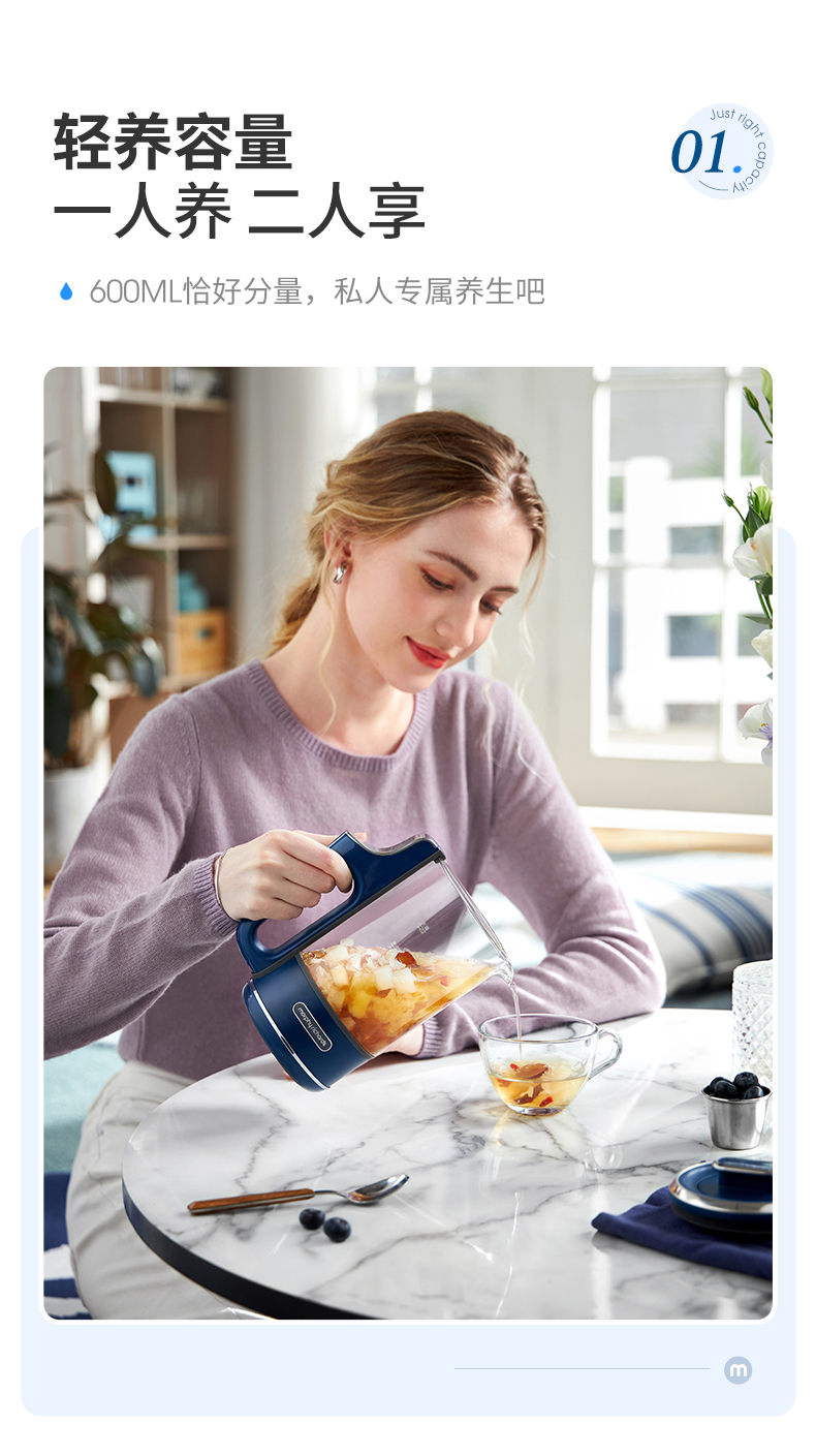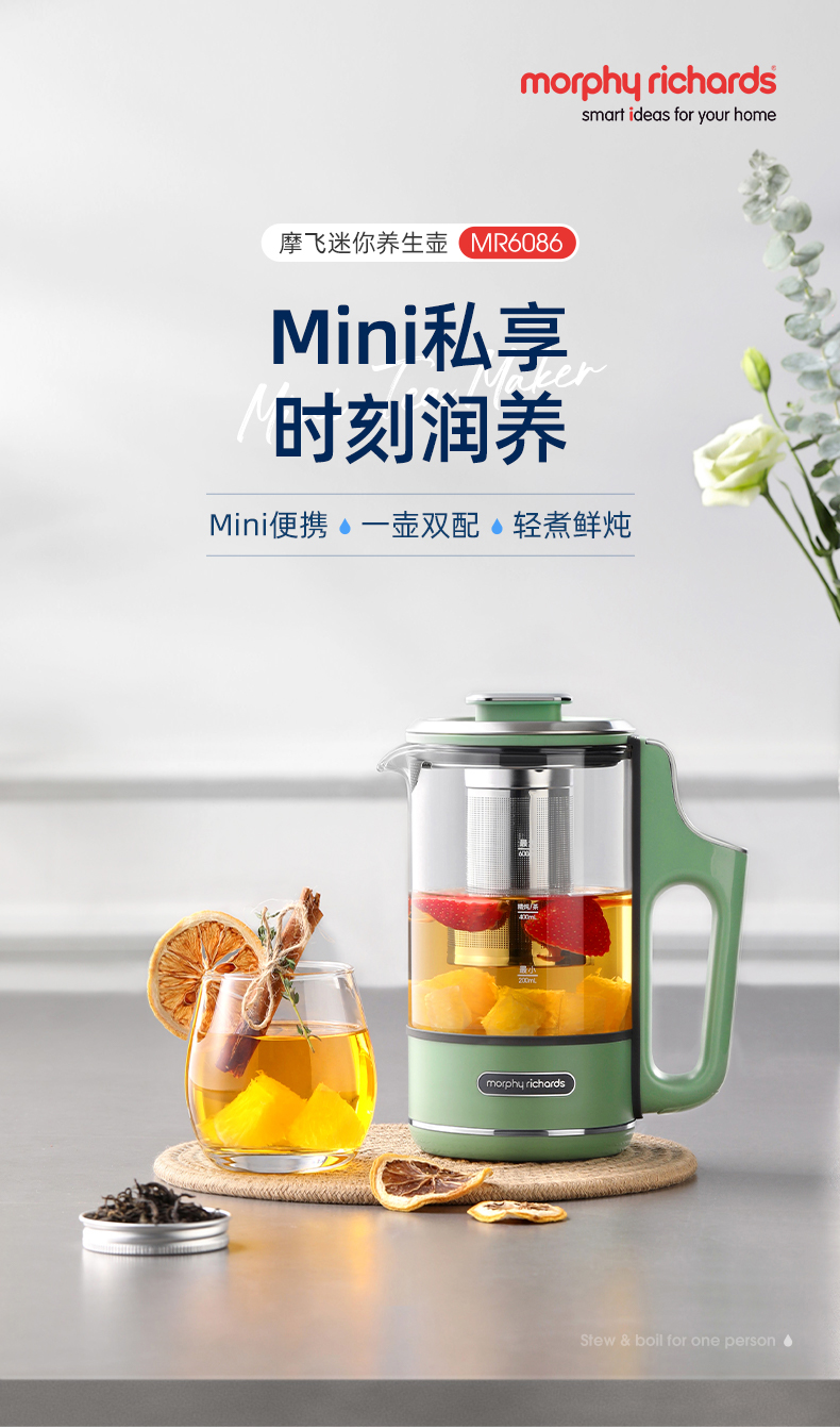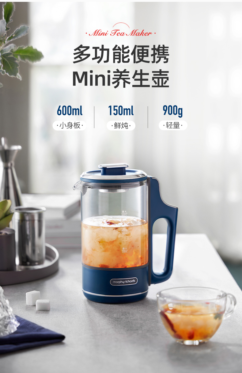 摩飞电器便携养生壶迷你煮茶器烧水壶小型办公室全自动家用 0.6L 一体式MR6086-XJ