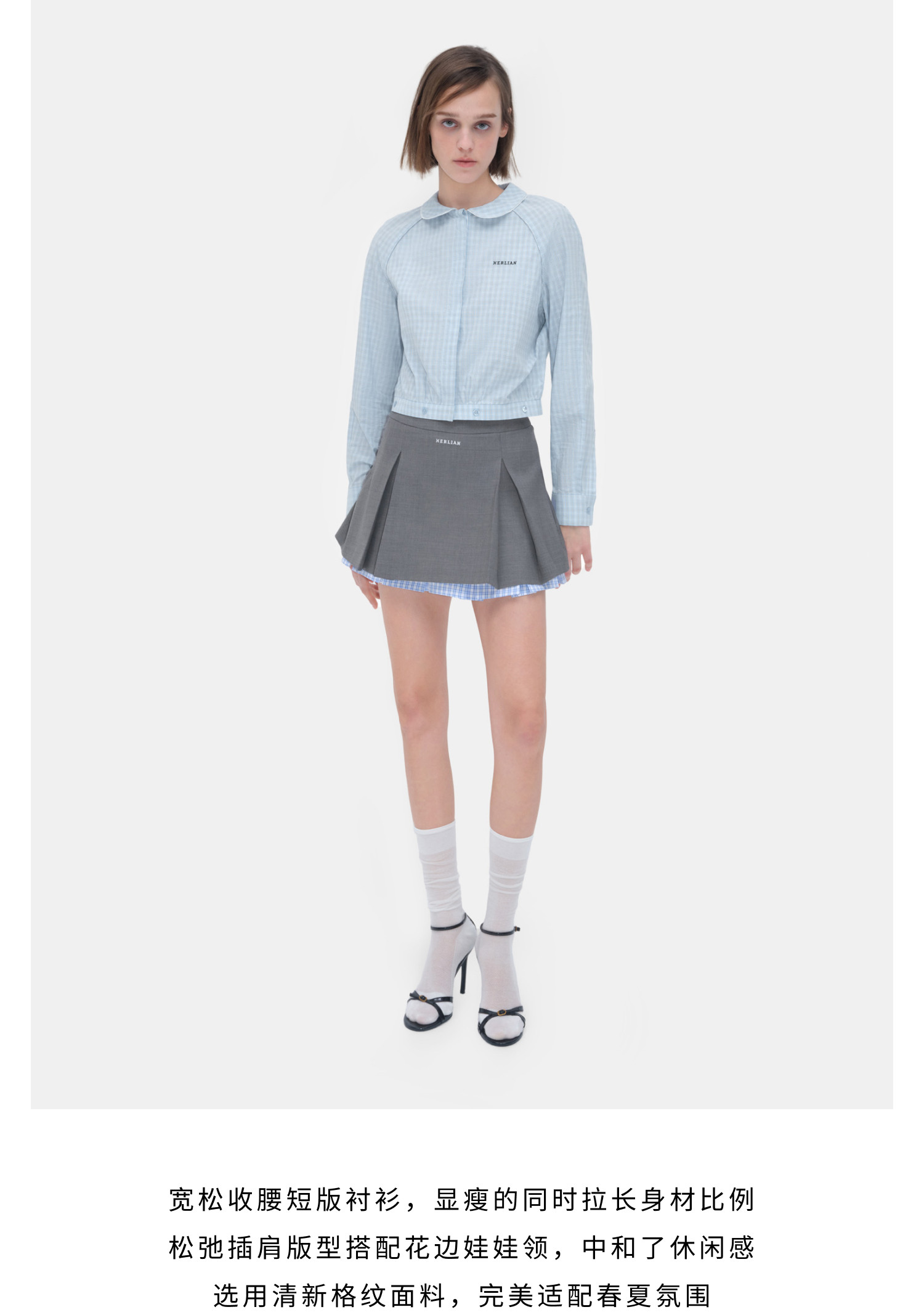 HERLIAN 2026年春季新品娃娃领花边女士长袖宽松短版显瘦衬衫