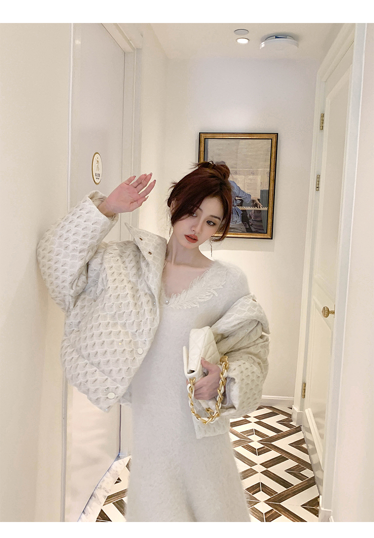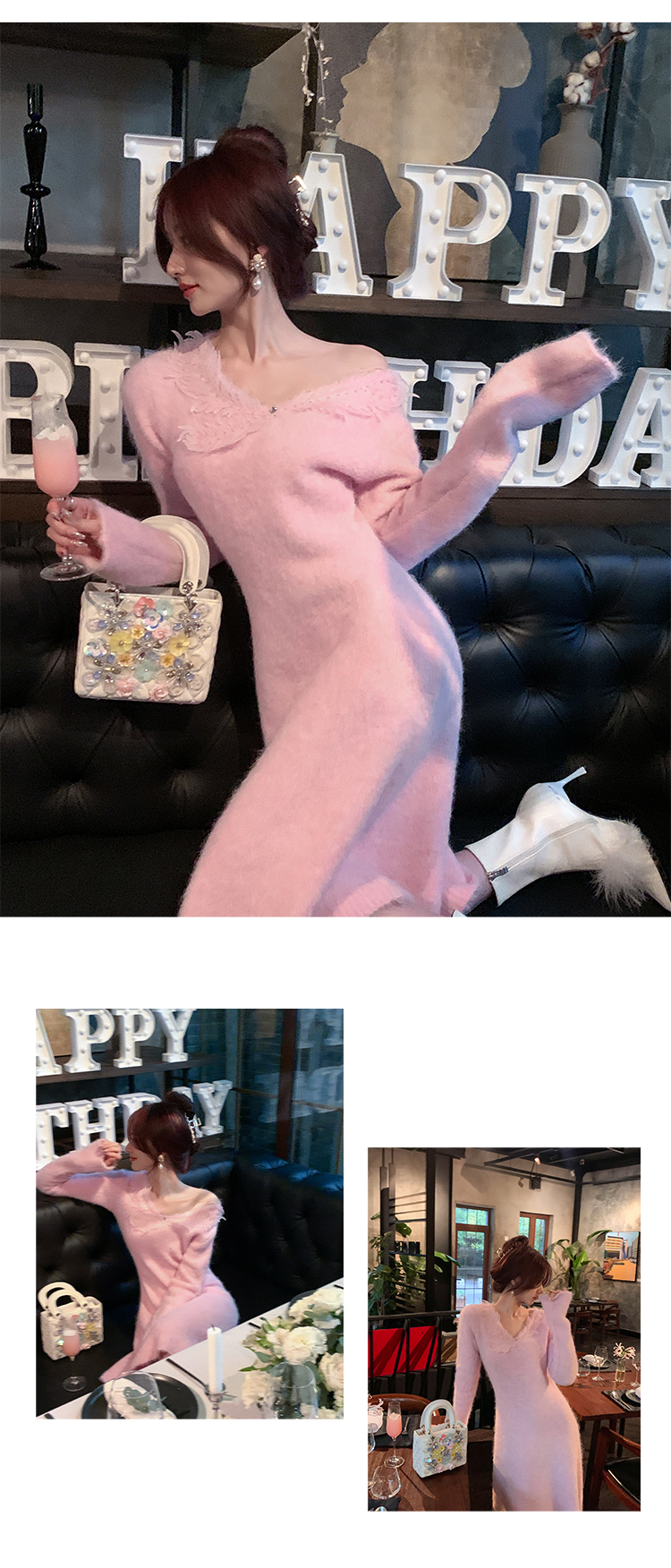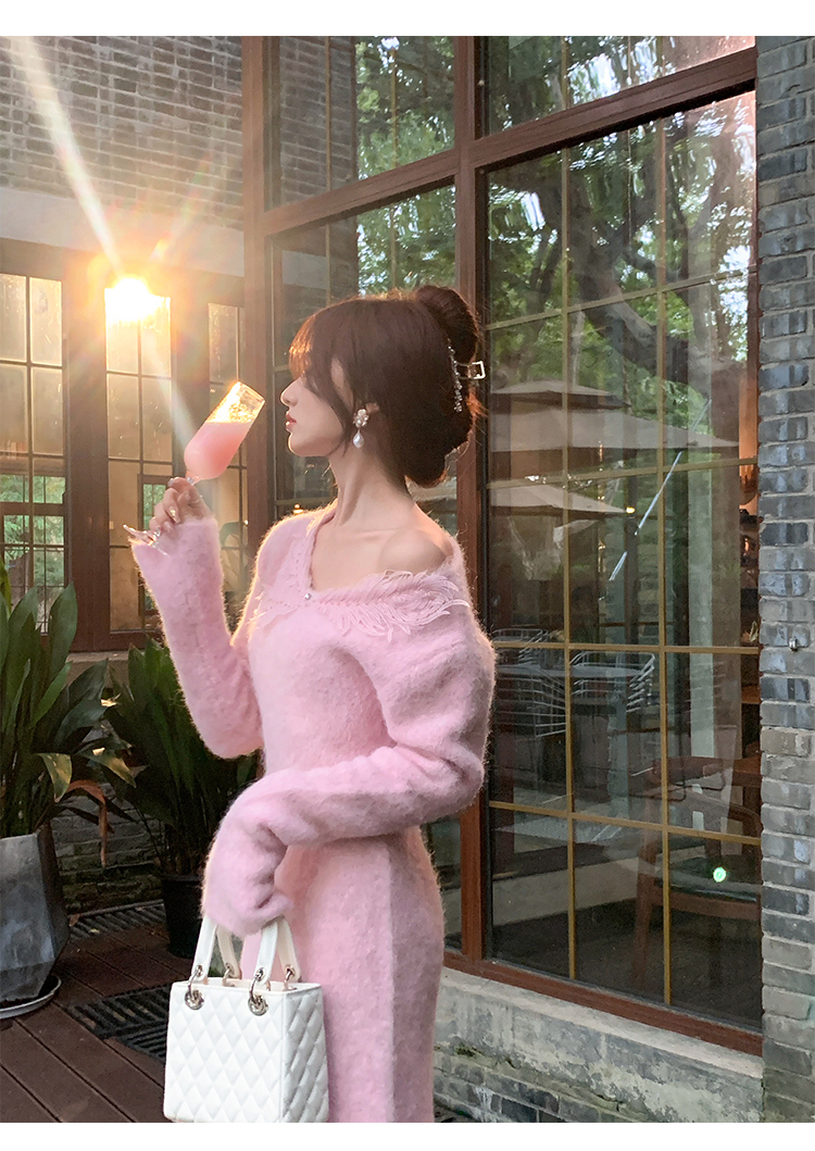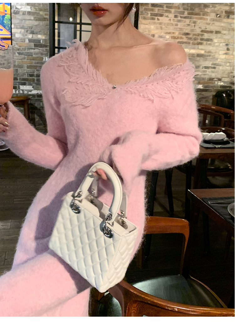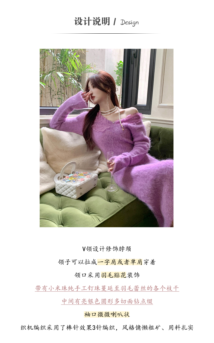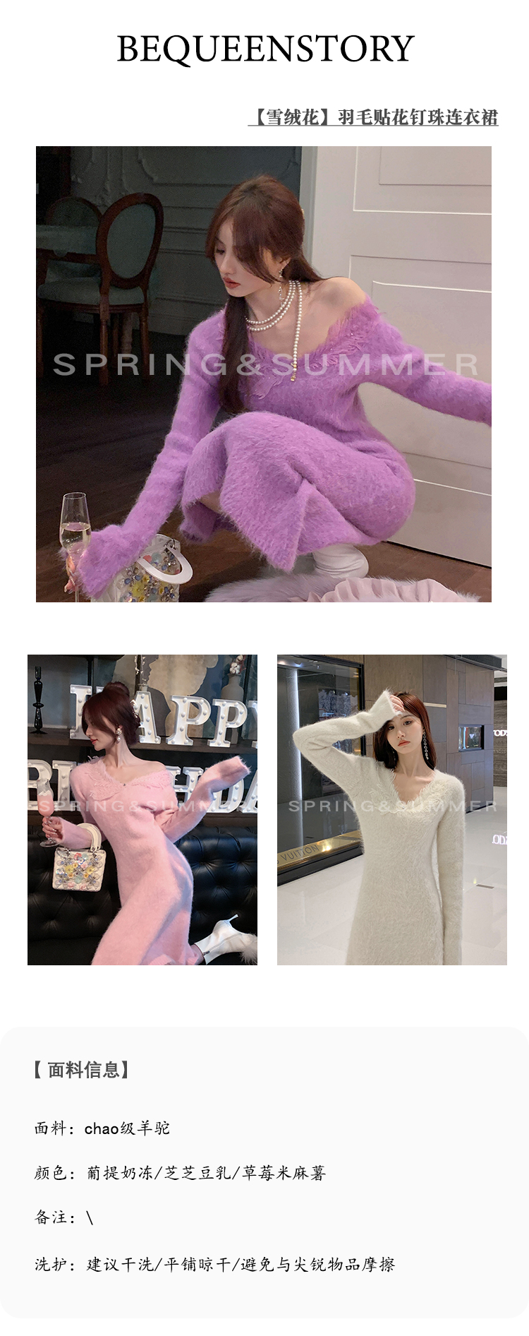 【孤品样衣,不退不换】【雪绒花】设计感羽毛贴花钉珠连衣裙