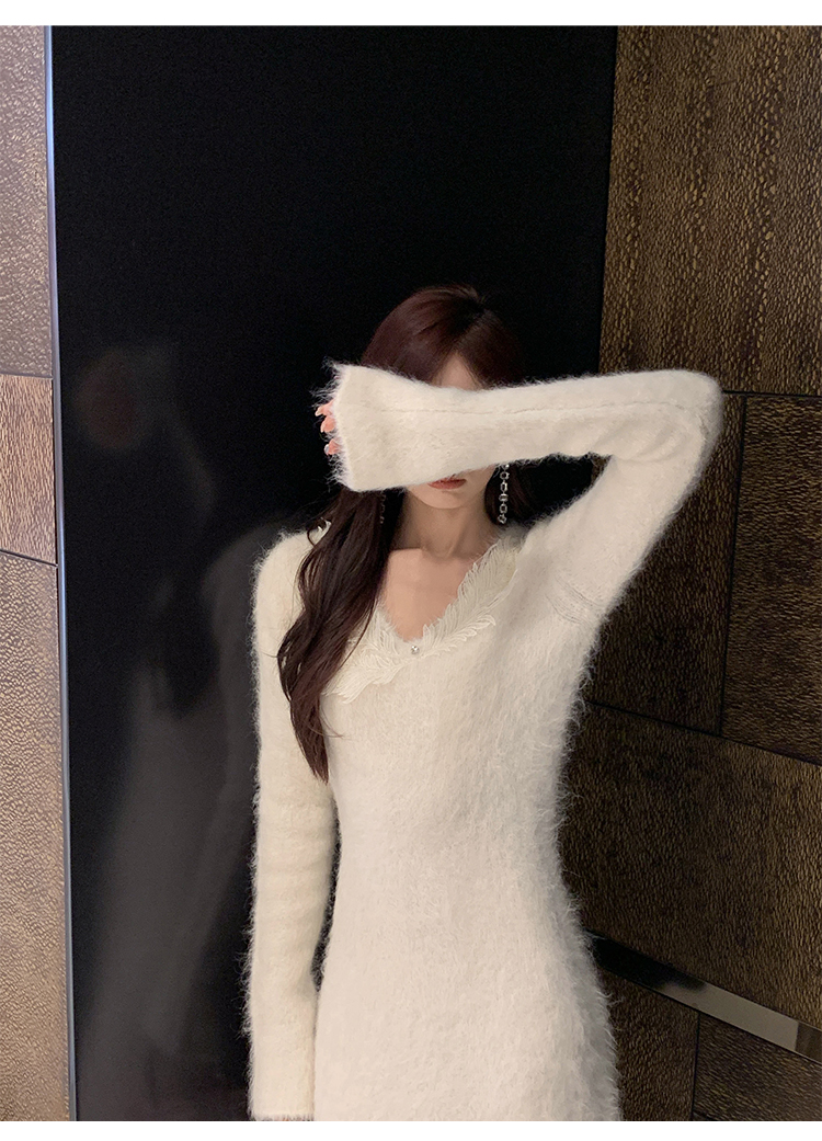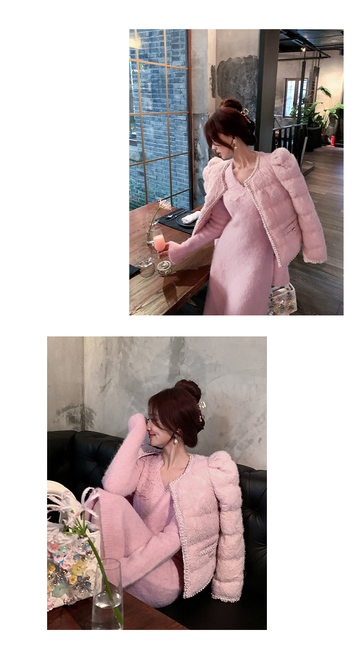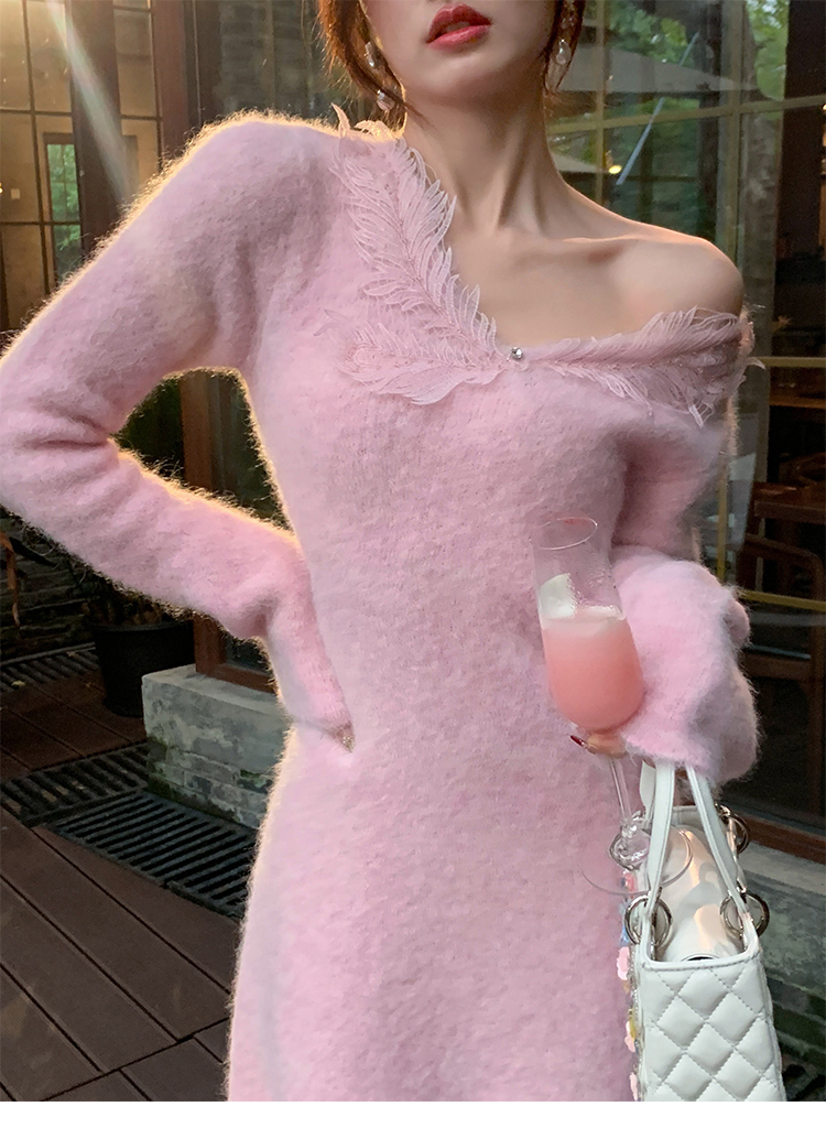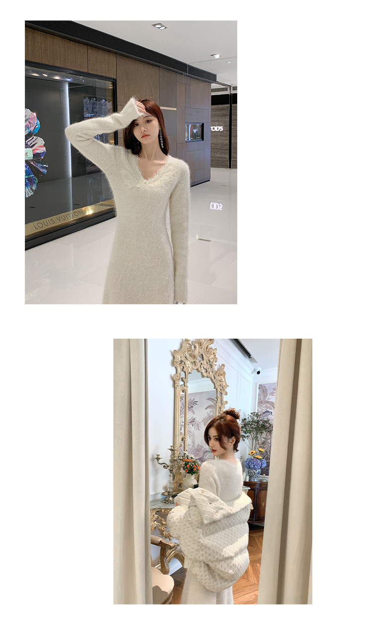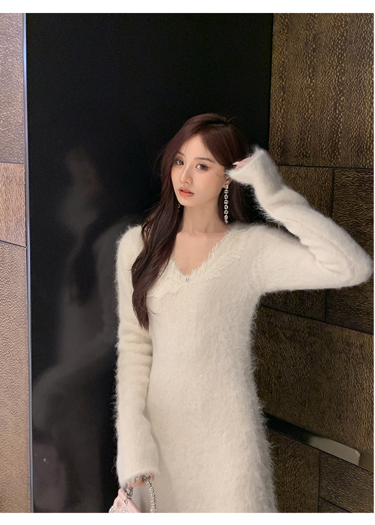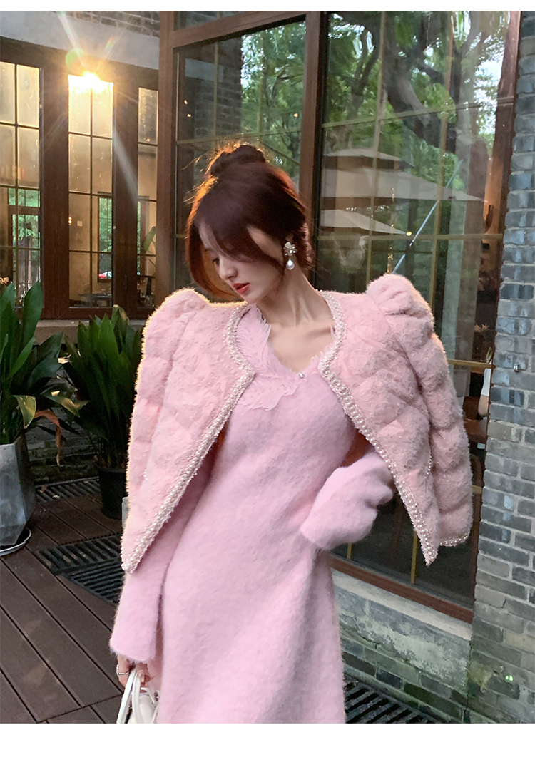 【孤品样衣,不退不换】【雪绒花】设计感羽毛贴花钉珠连衣裙