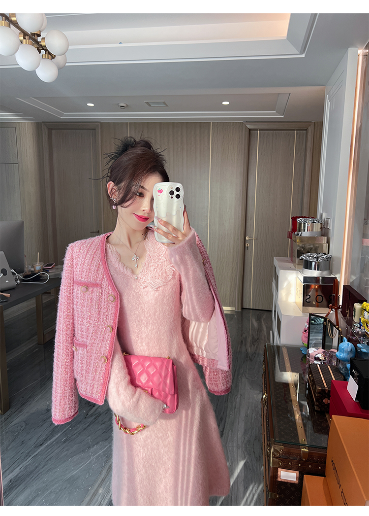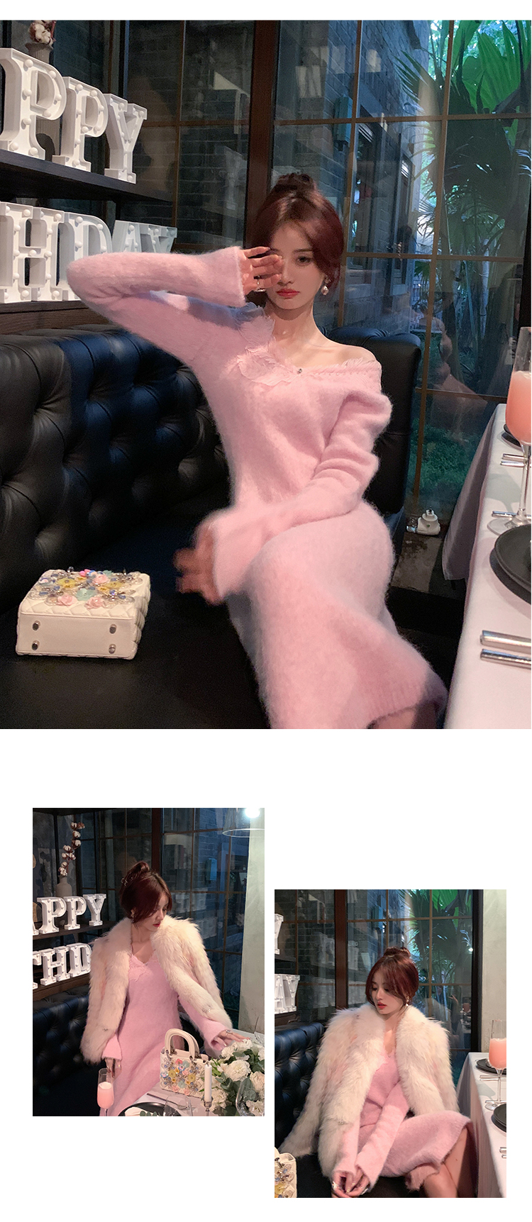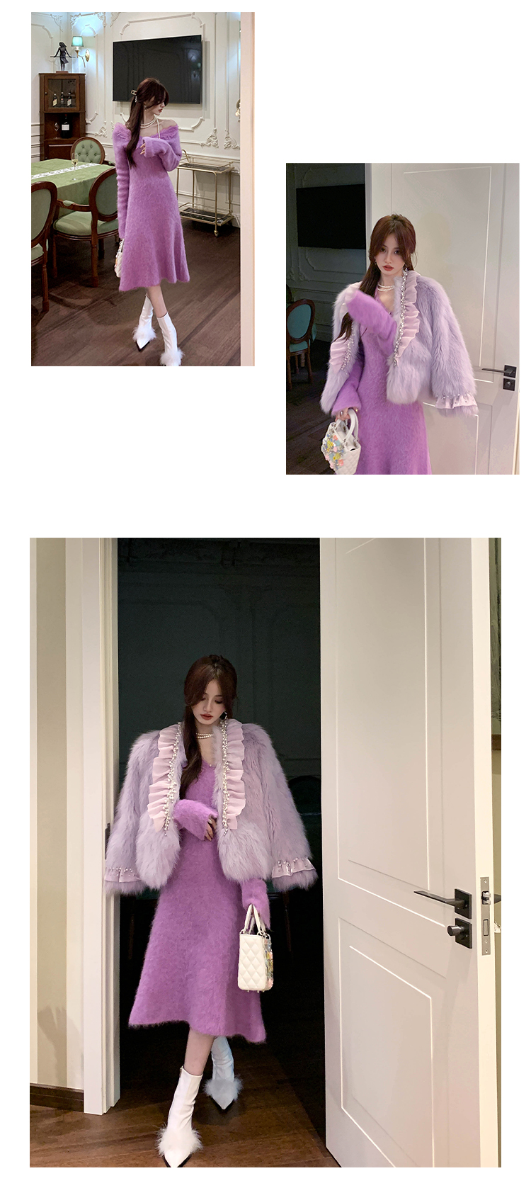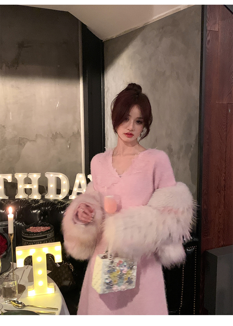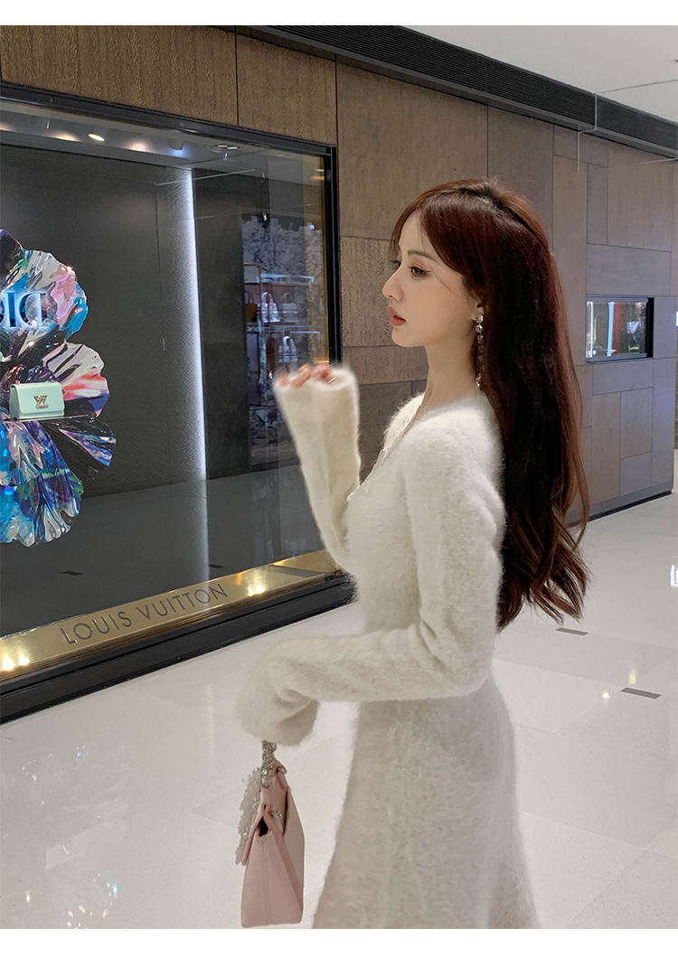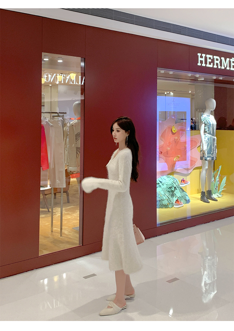 【孤品样衣,不退不换】【雪绒花】设计感羽毛贴花钉珠连衣裙