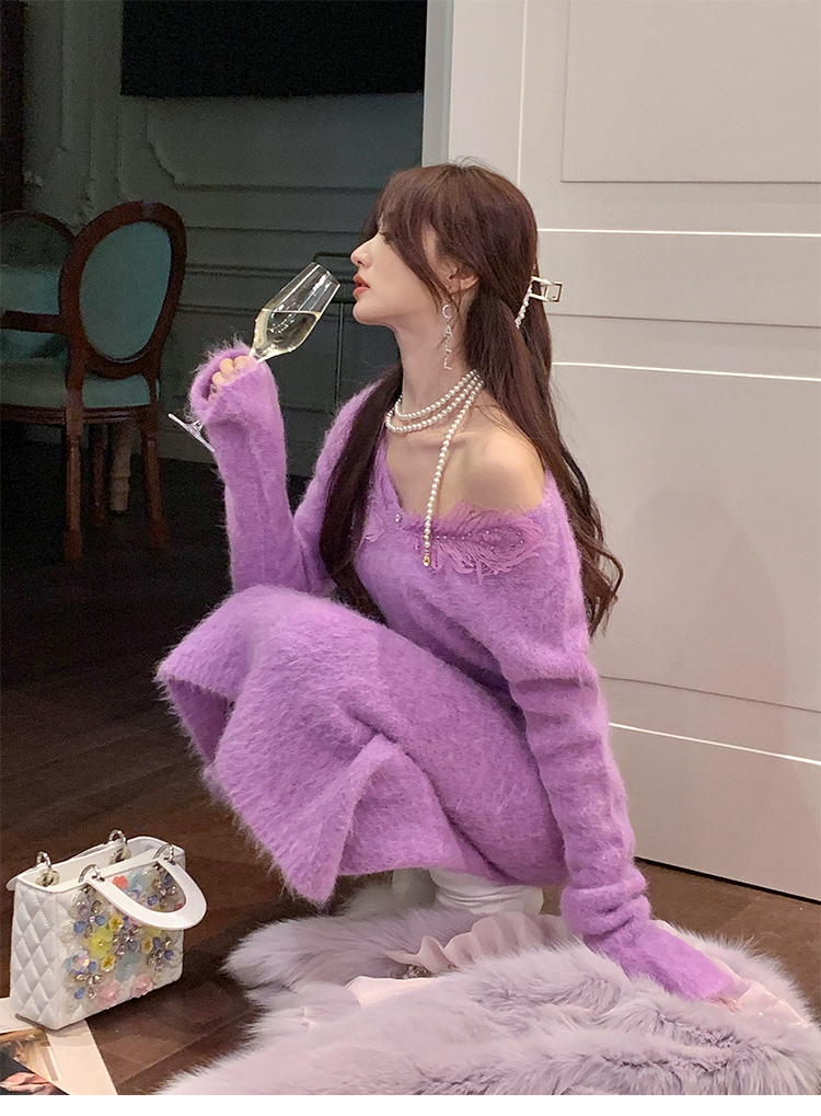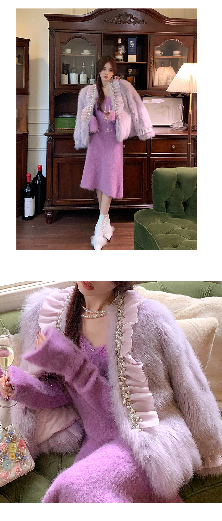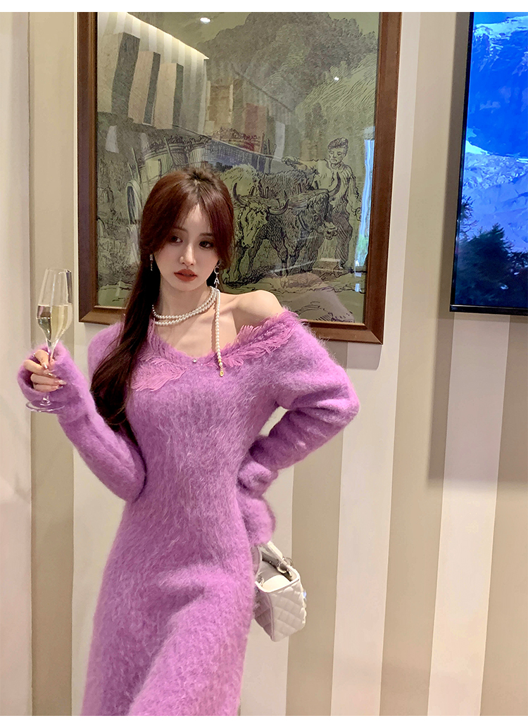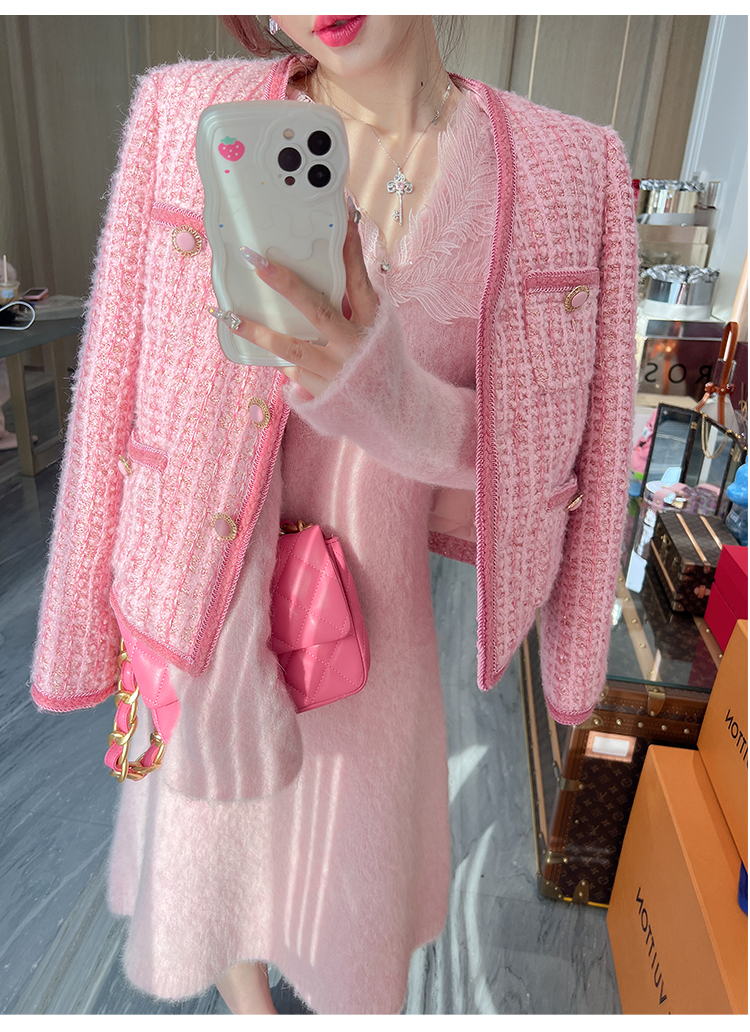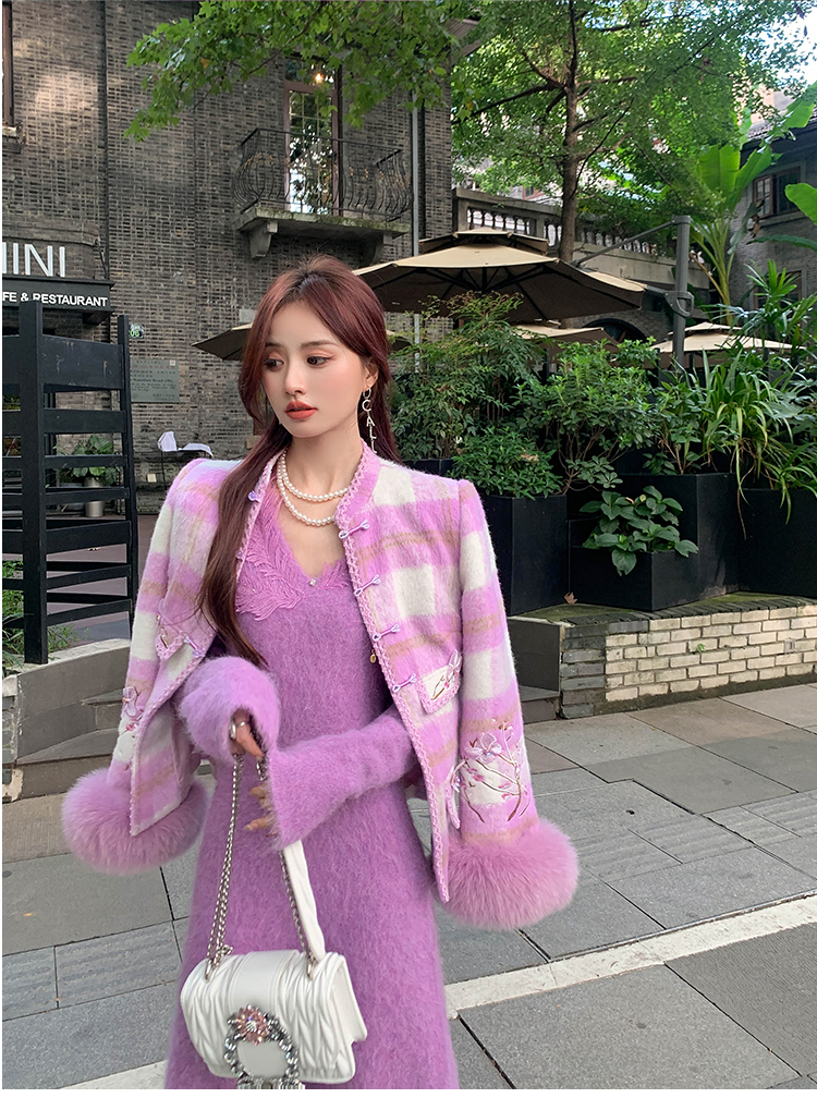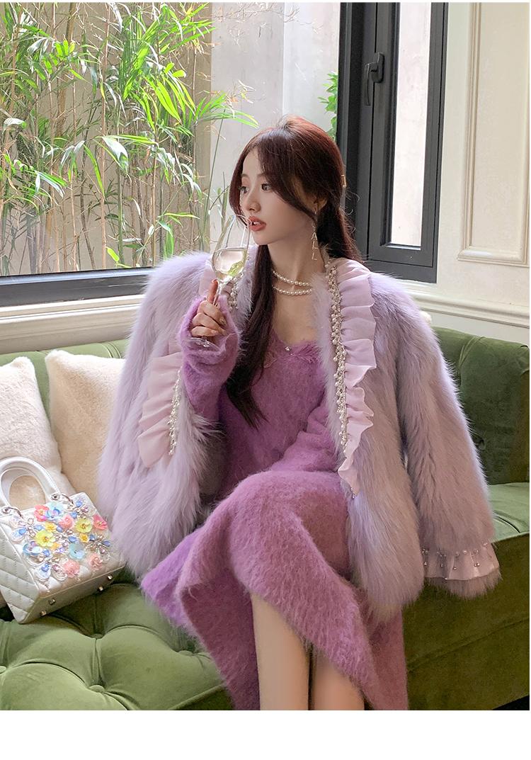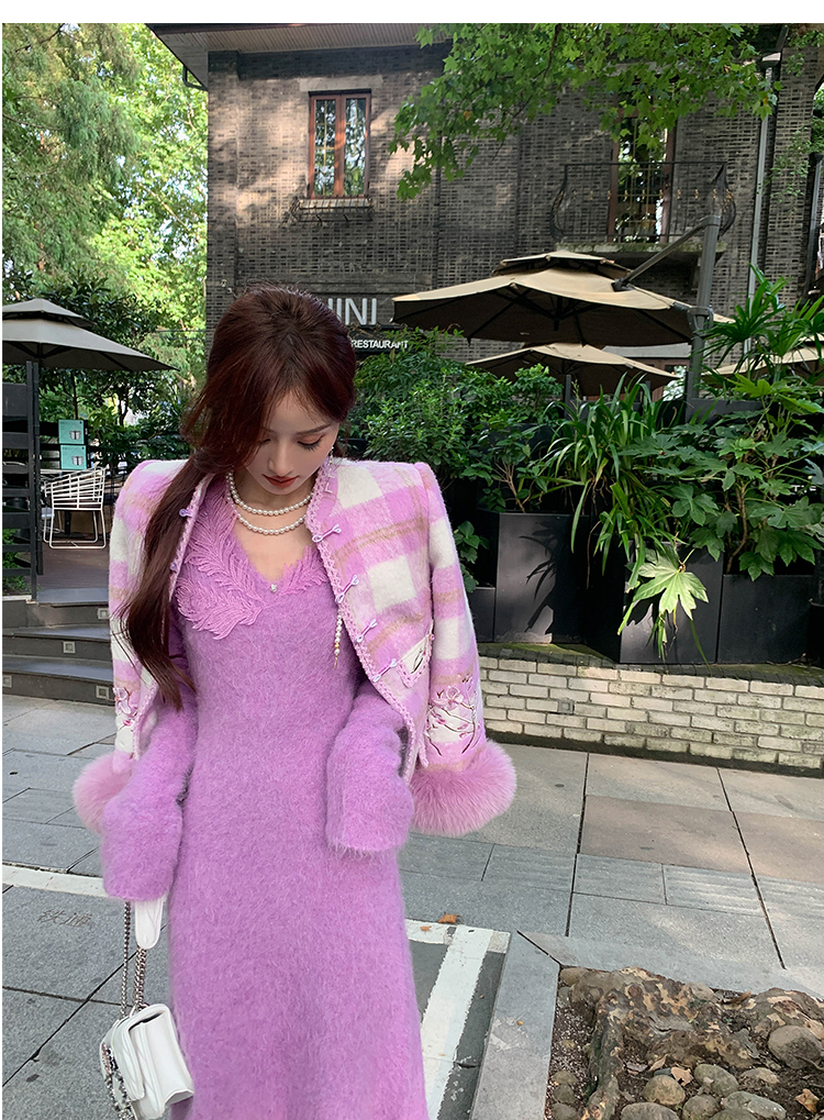 【孤品样衣,不退不换】【雪绒花】设计感羽毛贴花钉珠连衣裙