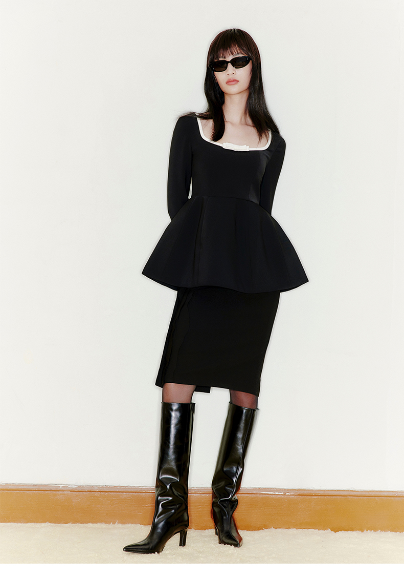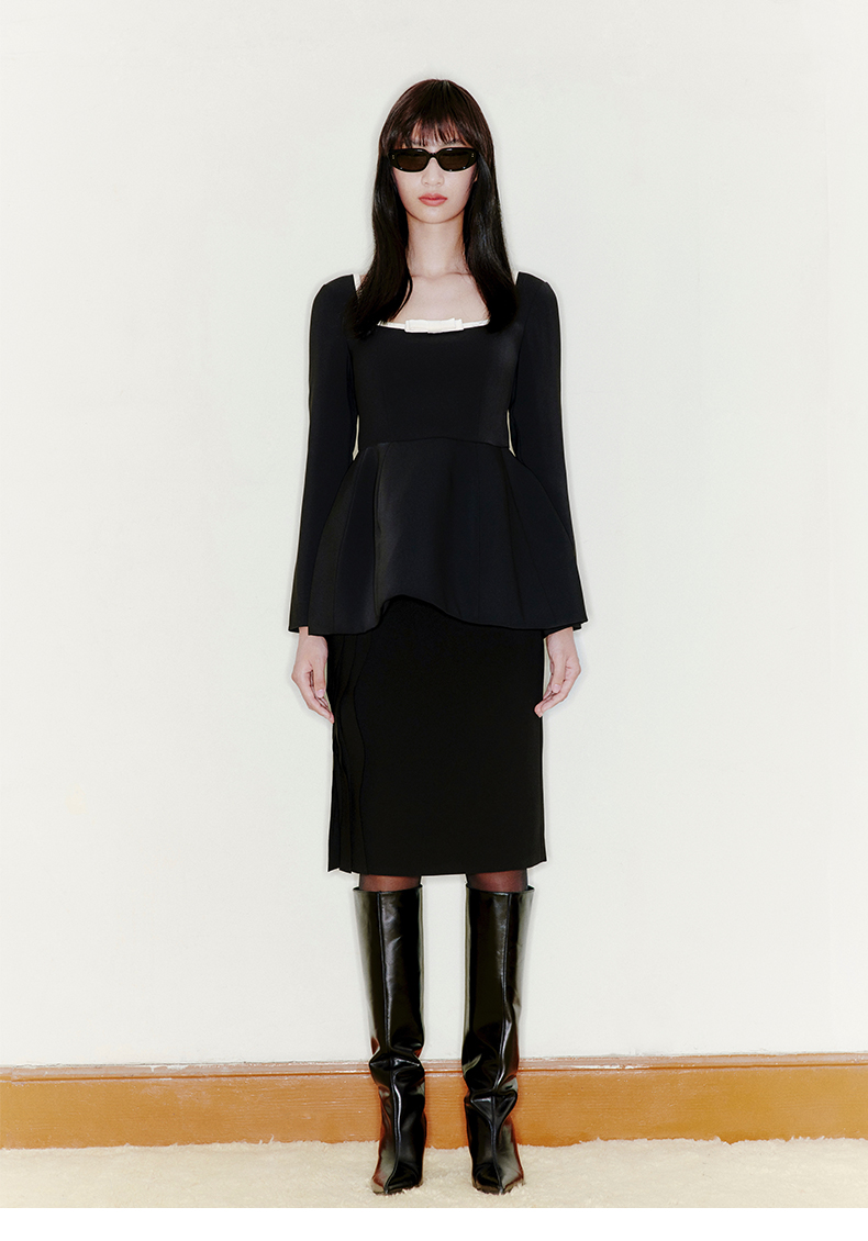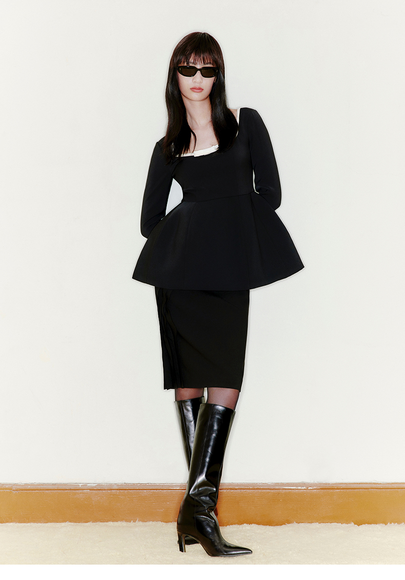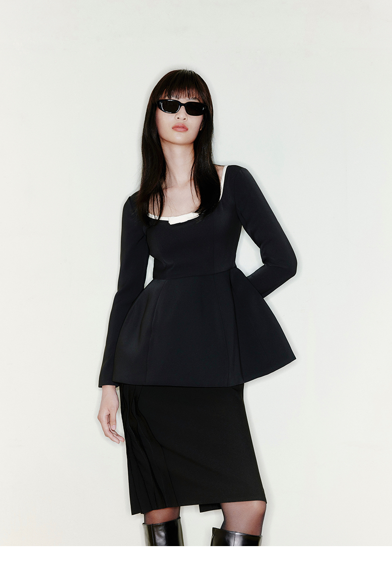 【芙蕾雅】廓形下摆收腰方领造型上衣/220026