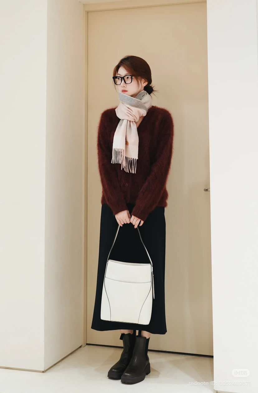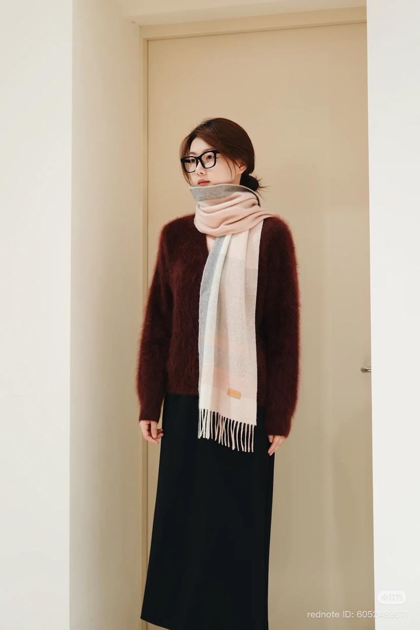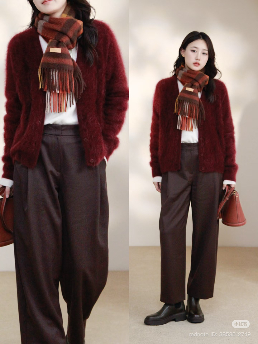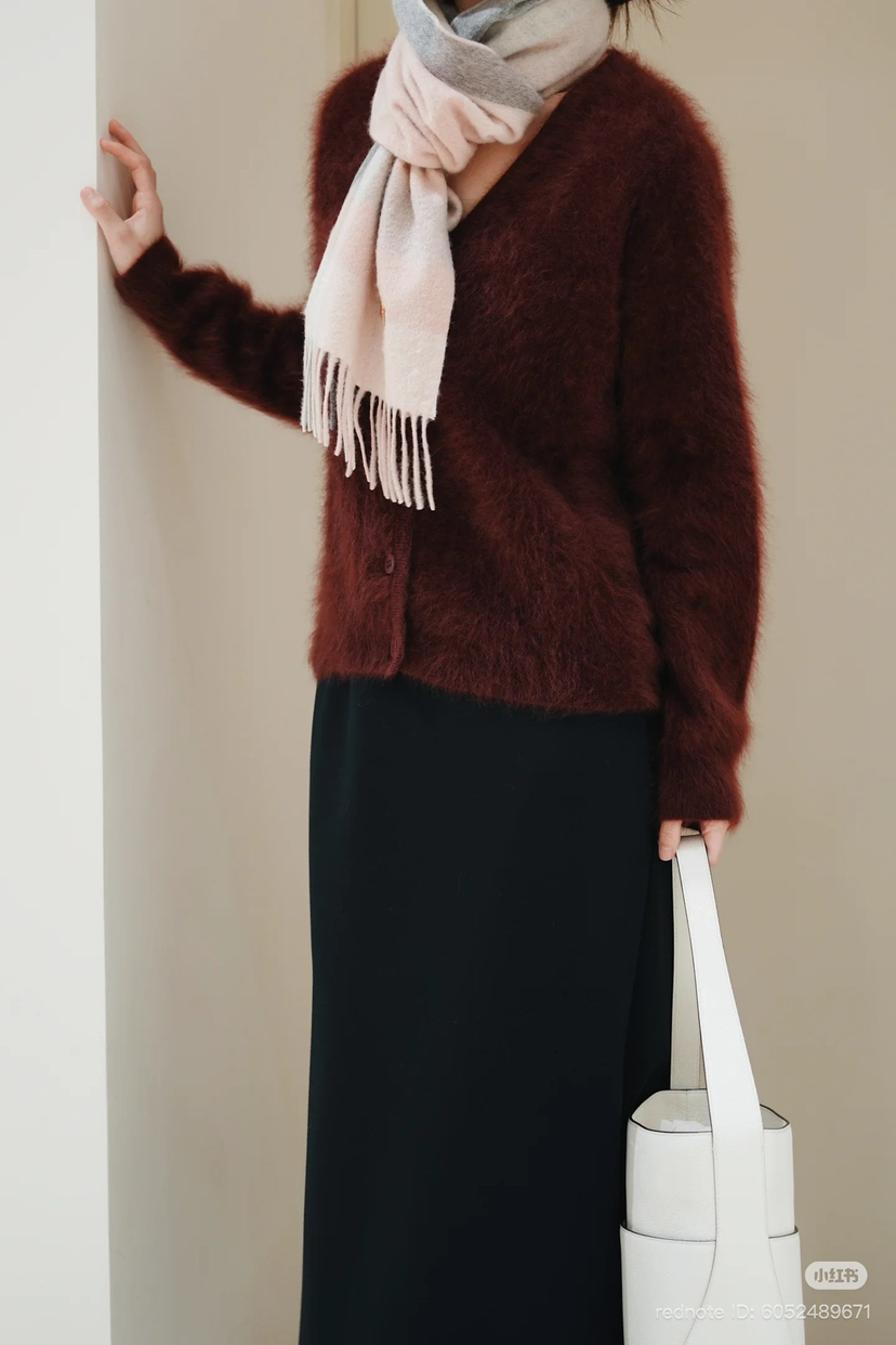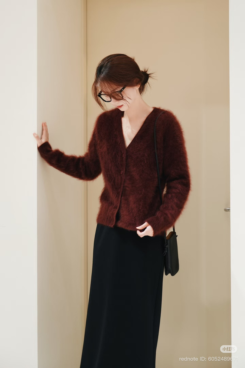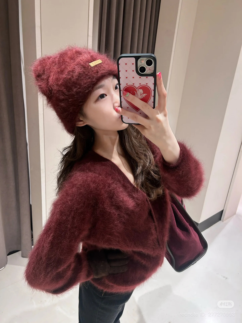 129-10 排他性独家圆正 小禾 红宝石色 羊绒拉绒 皮草质感开衫 贝母logo扣外面没有