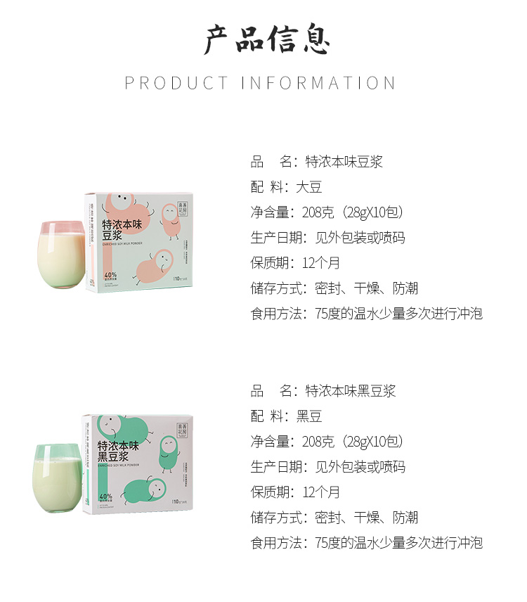 【长轻优选】喜善花房特浓本味/黑豆浆28g*10包/盒植物蛋白含量40%