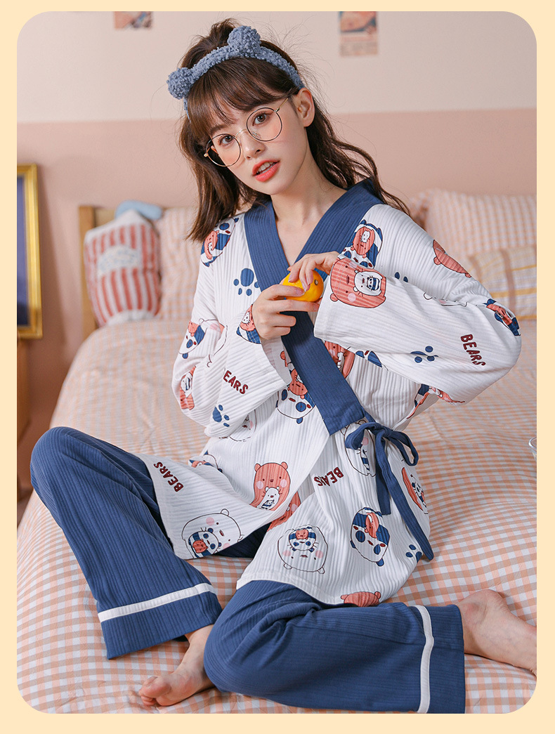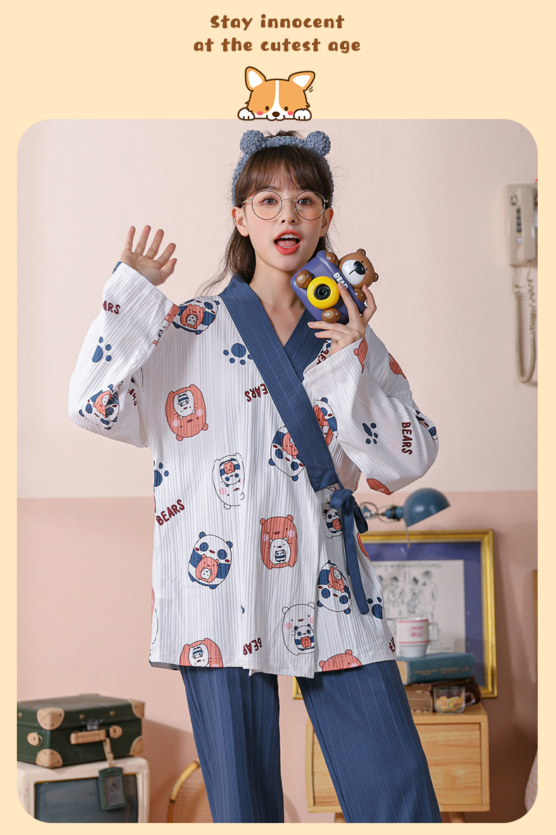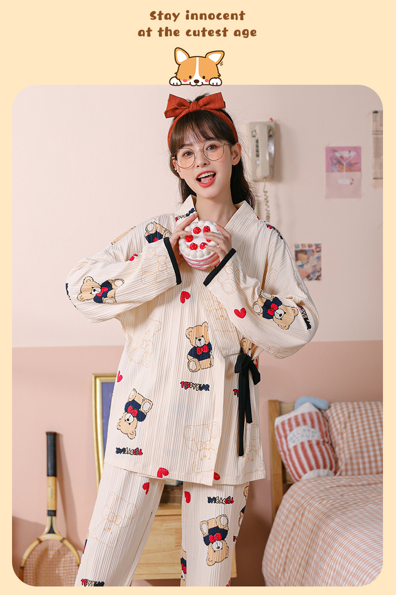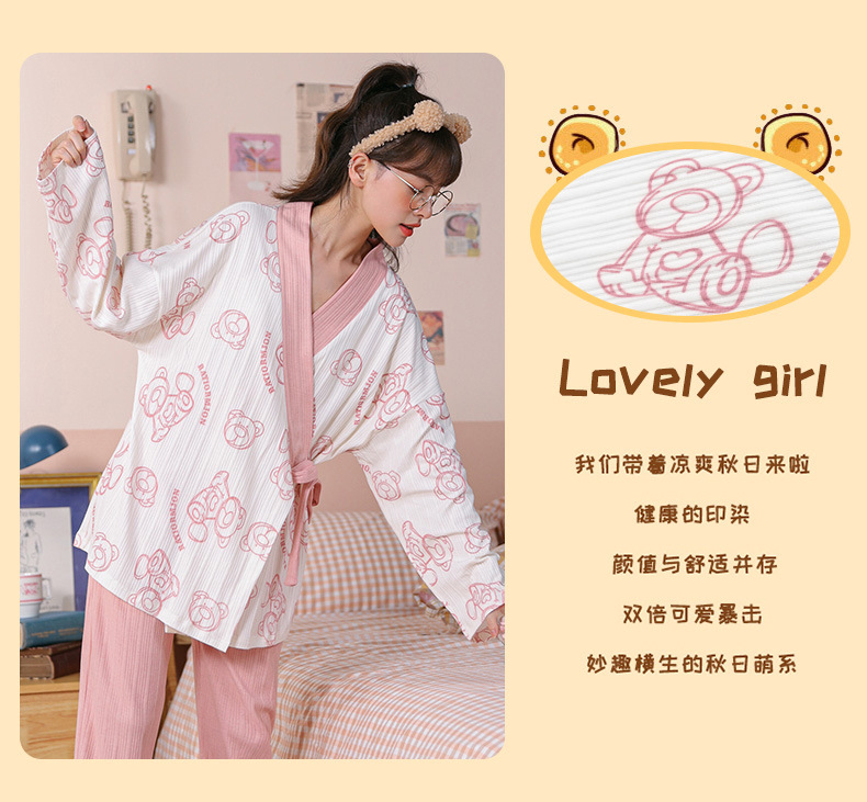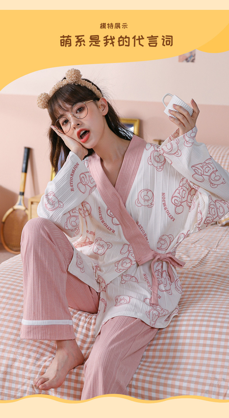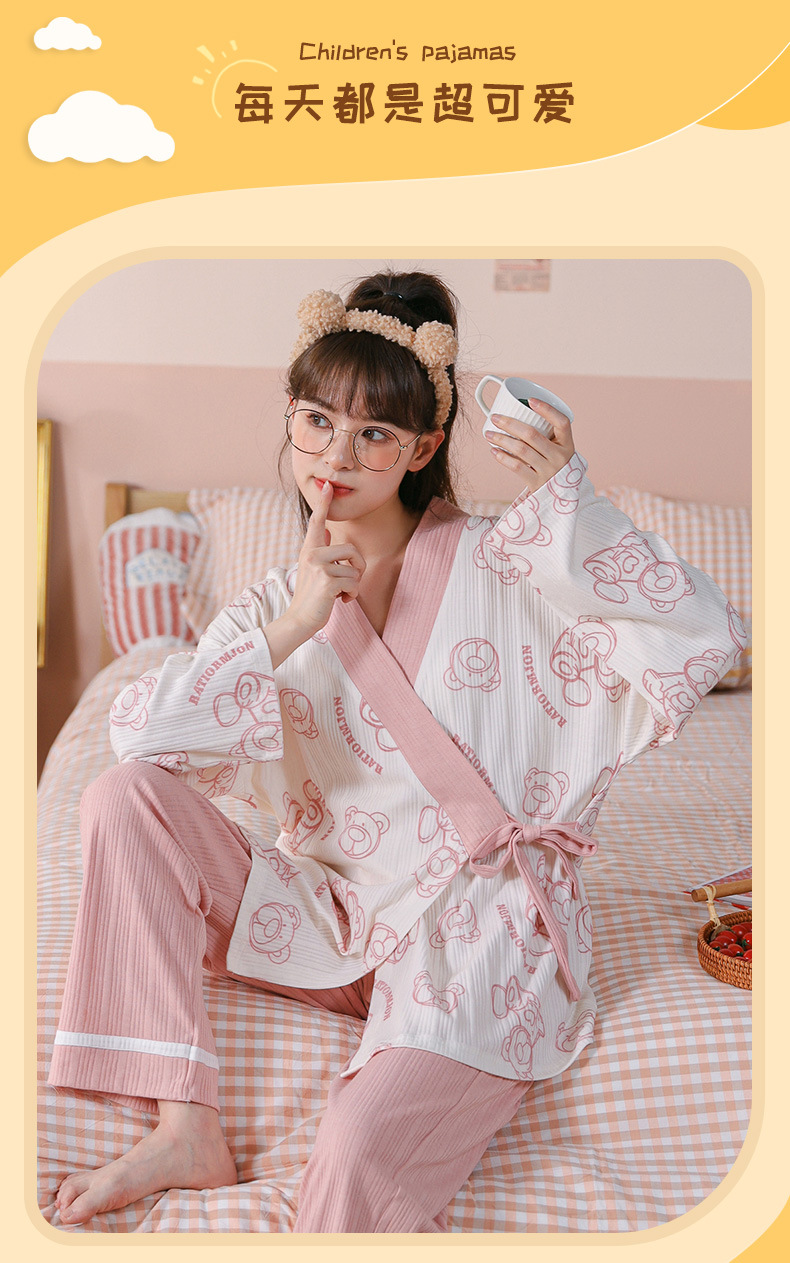 秋冬季【萌系长袖睡衣套装】 韩版系带家居服 舒适棉质 多款图案可选