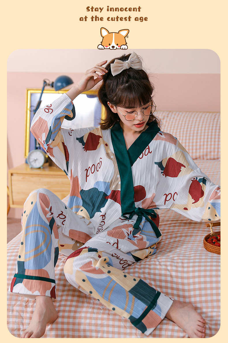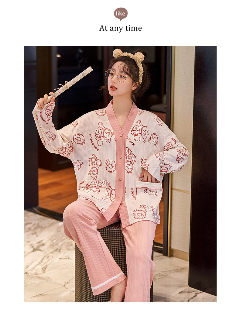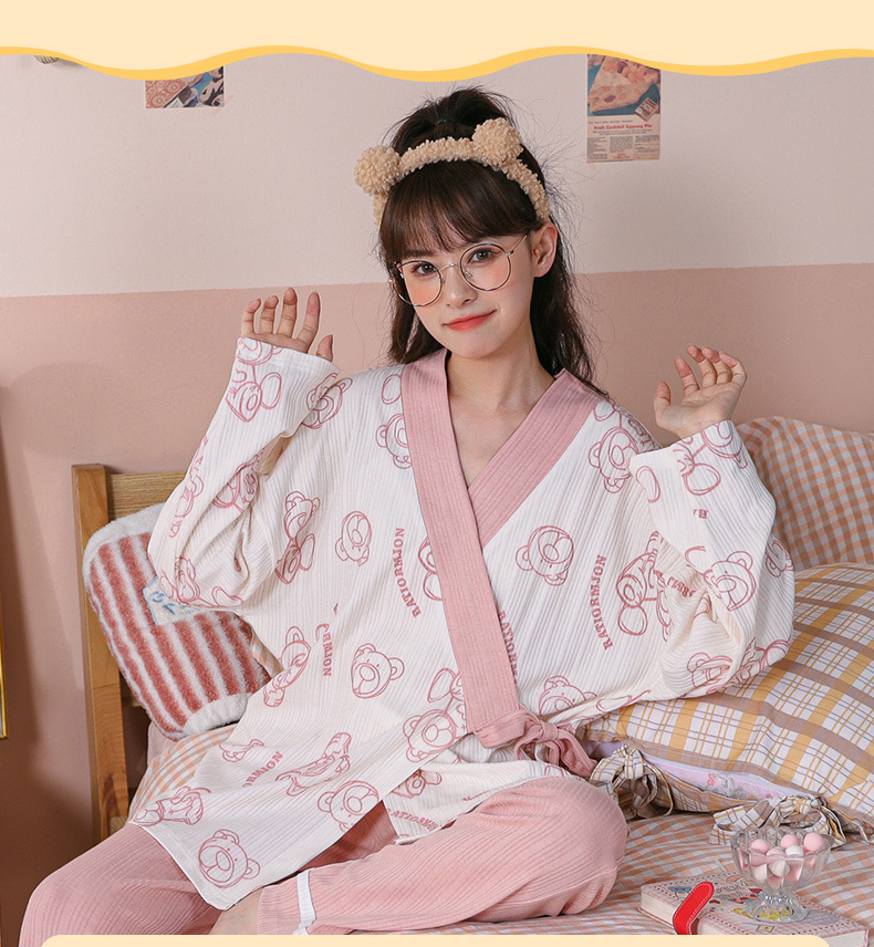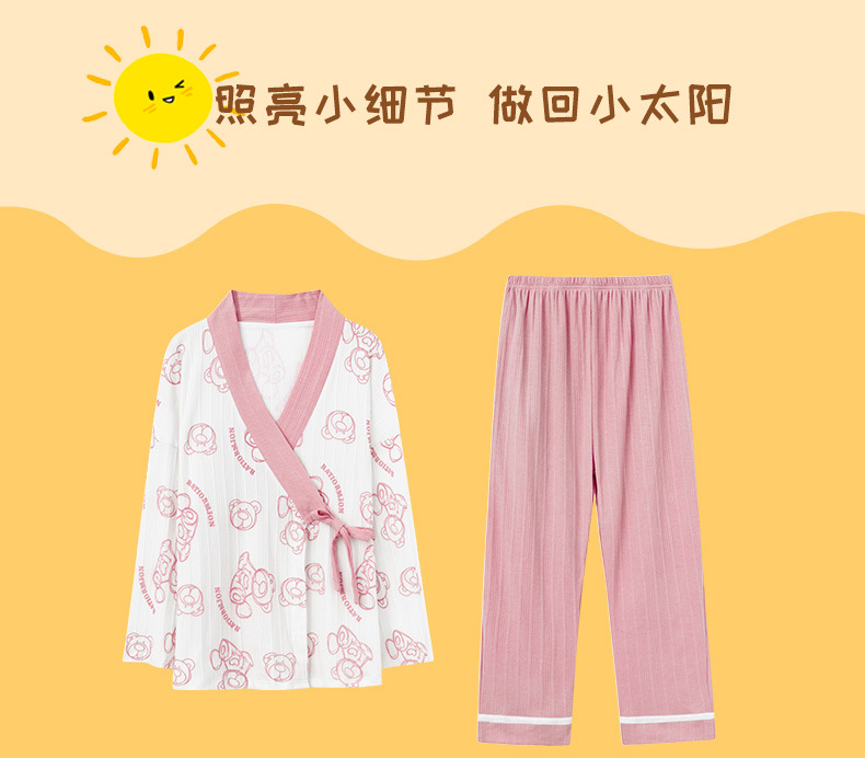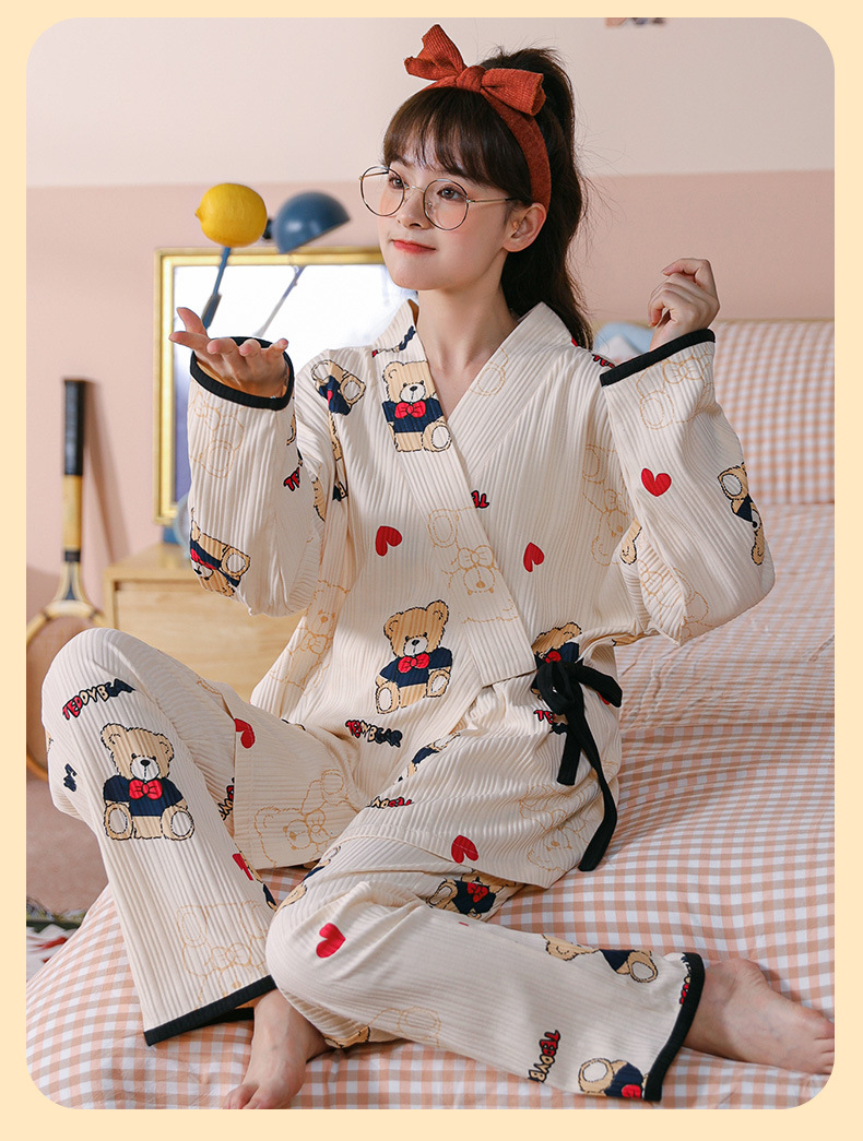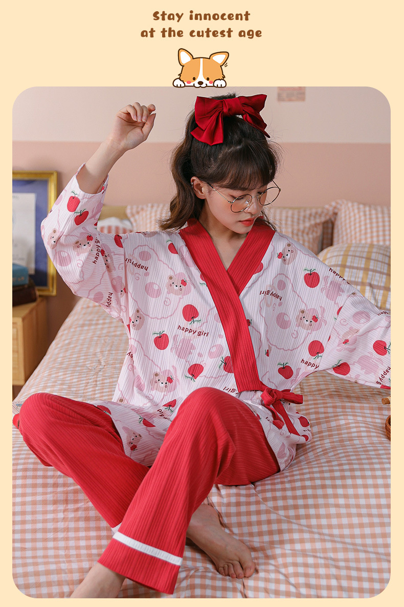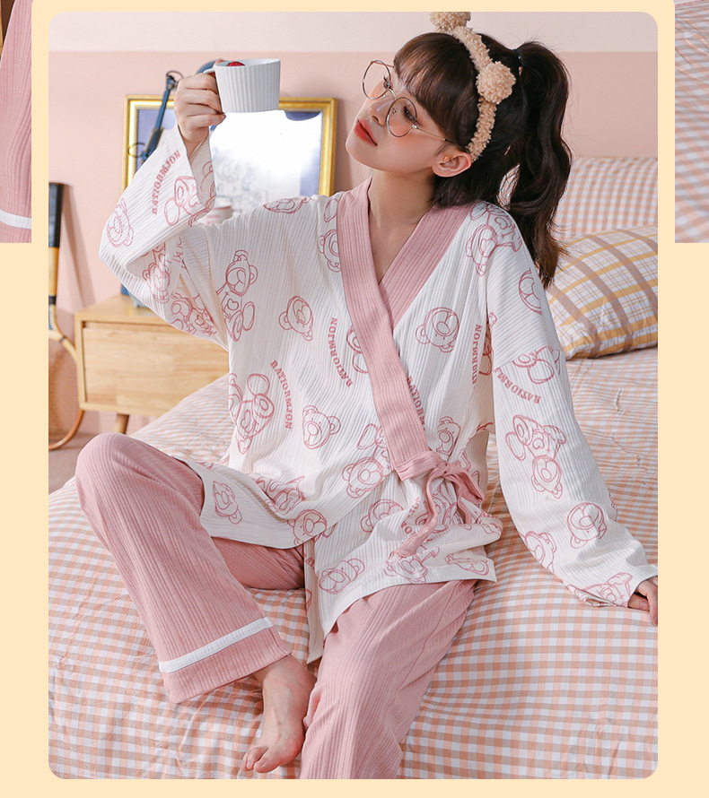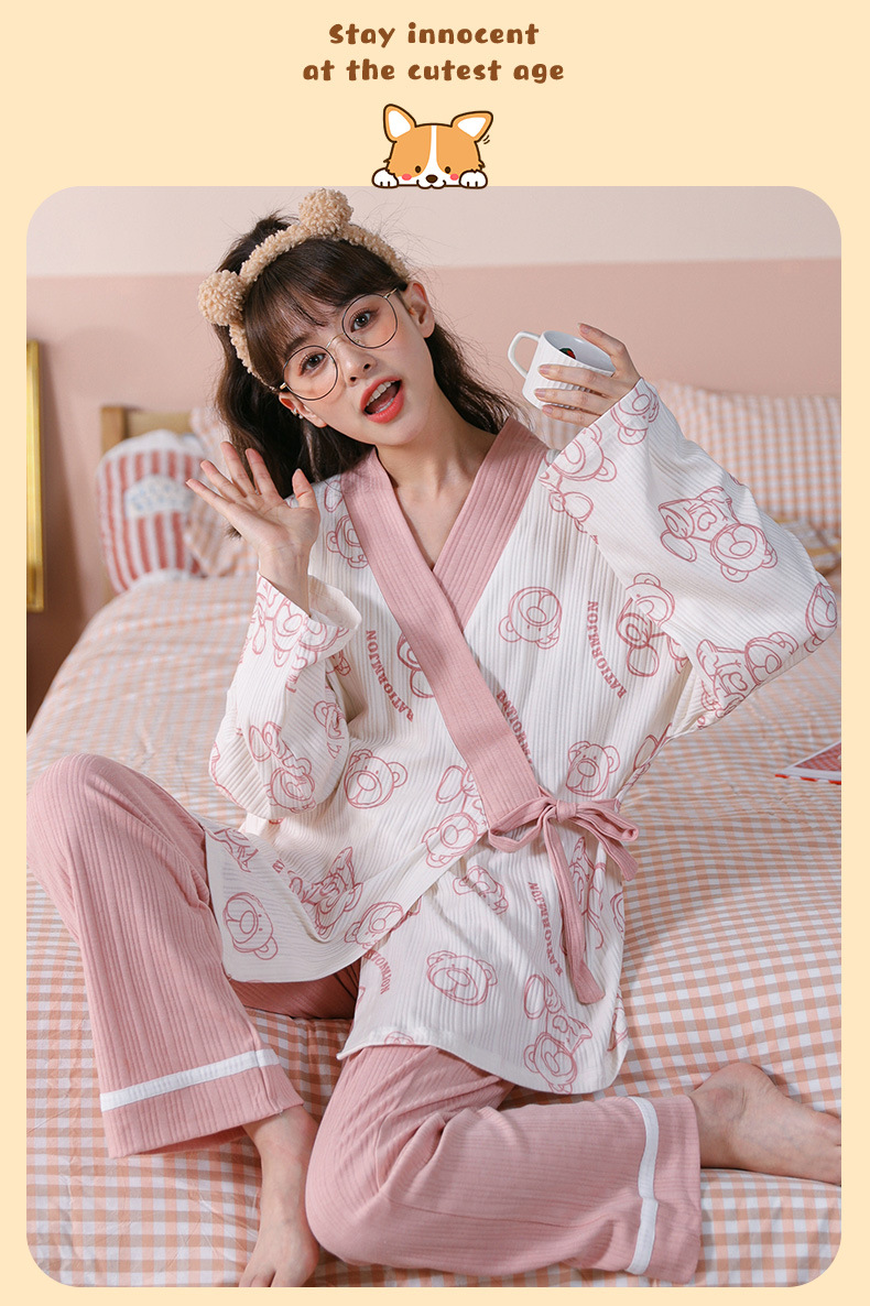 秋冬季【萌系长袖睡衣套装】 韩版系带家居服 舒适棉质 多款图案可选