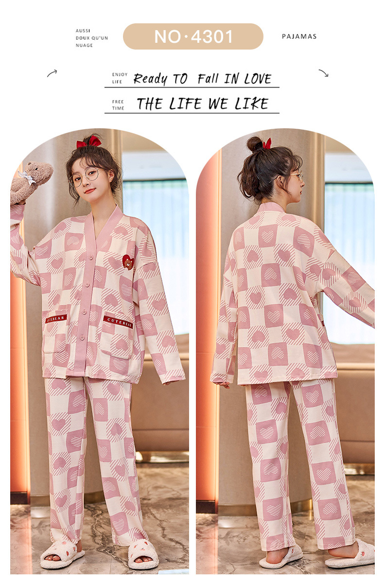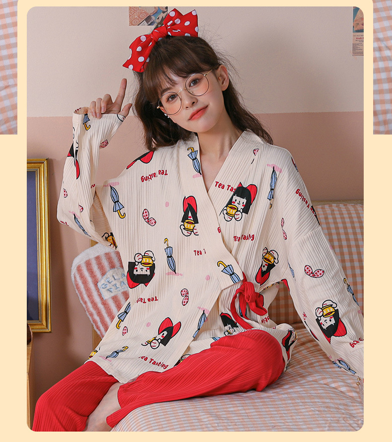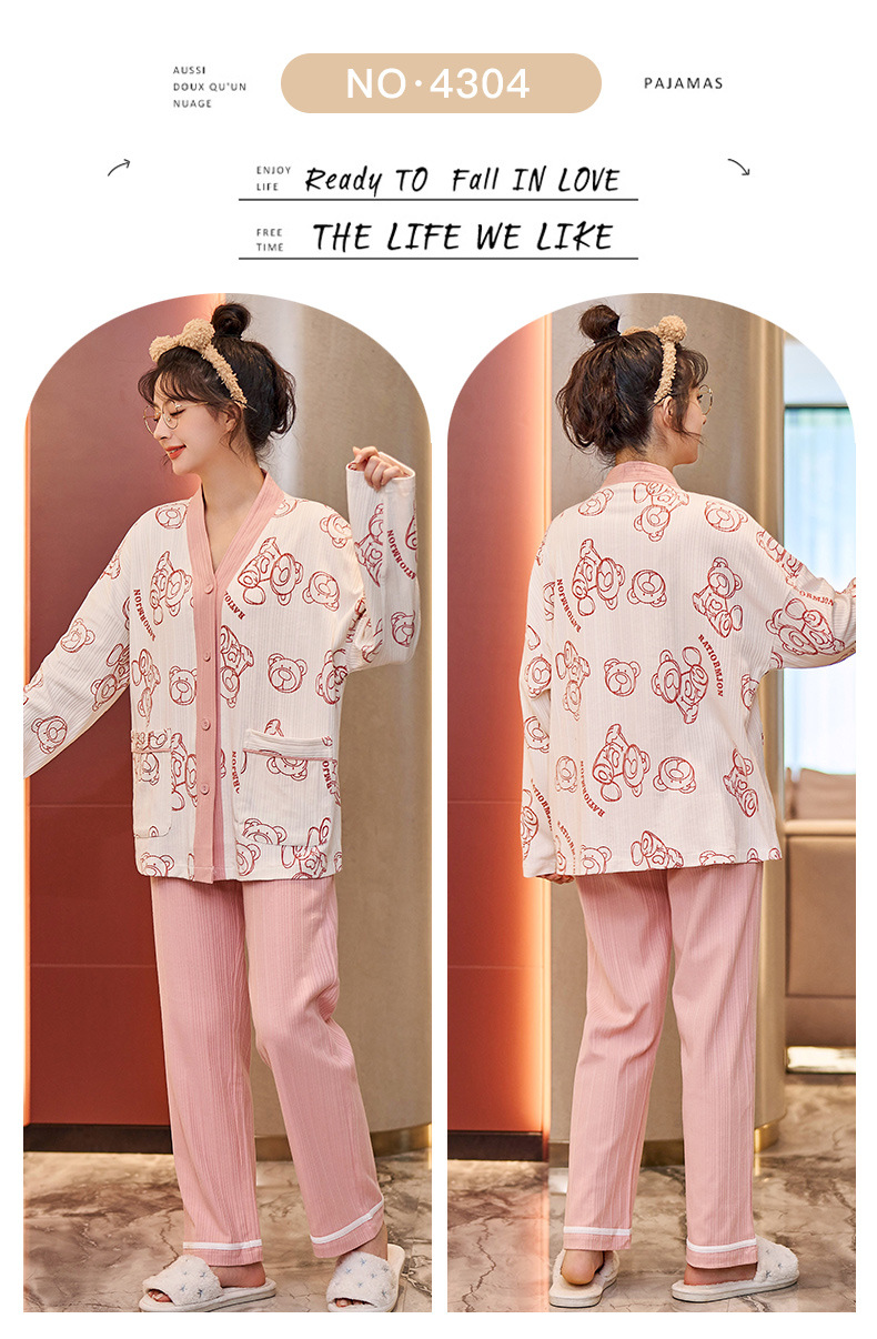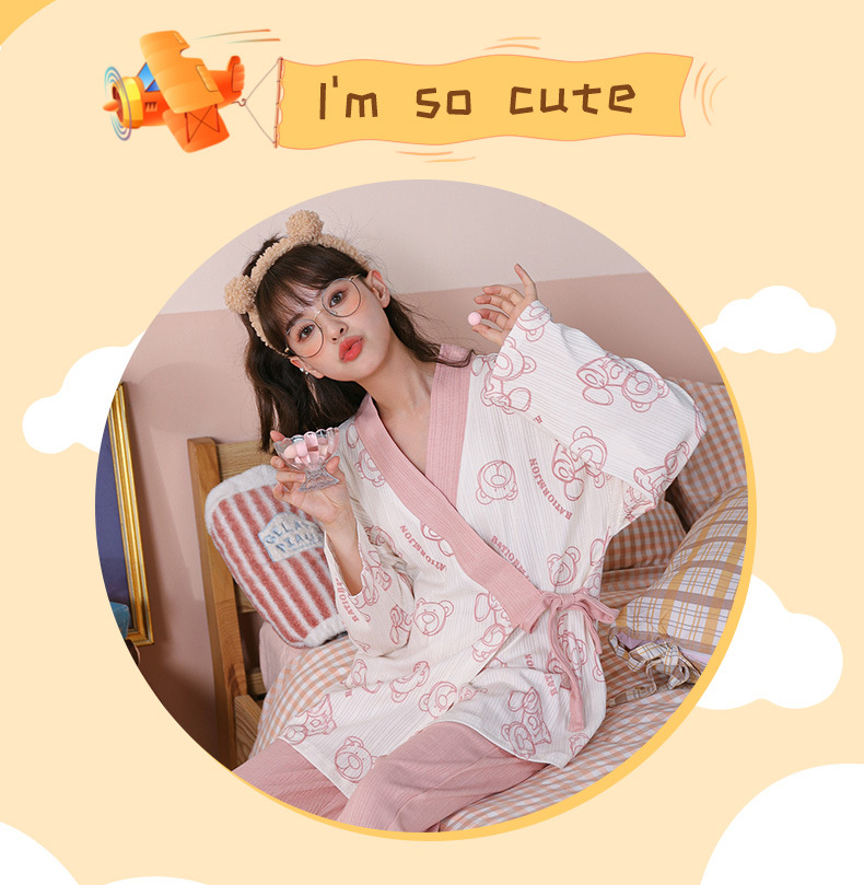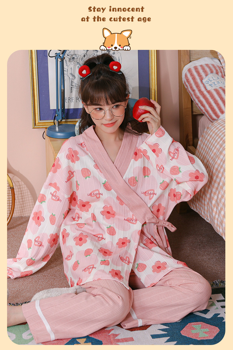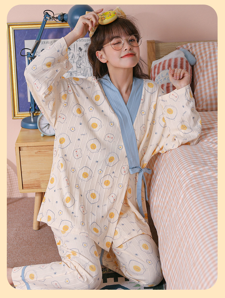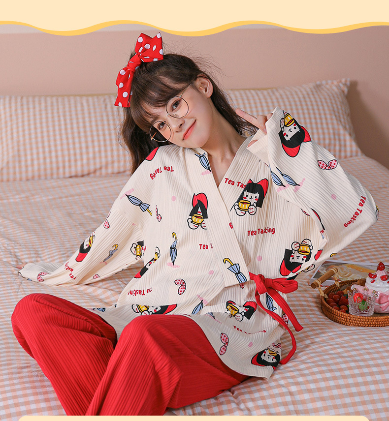 秋冬季【萌系长袖睡衣套装】 韩版系带家居服 舒适棉质 多款图案可选