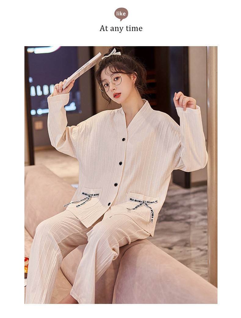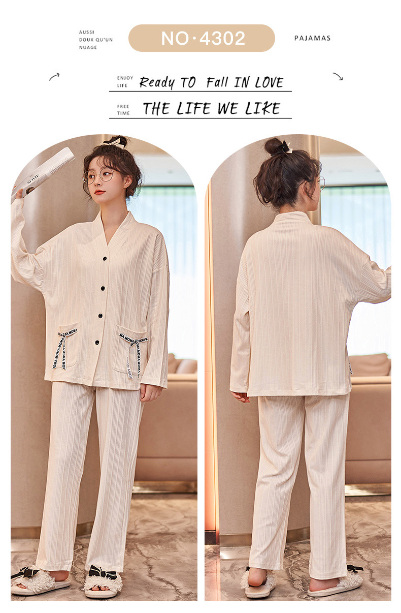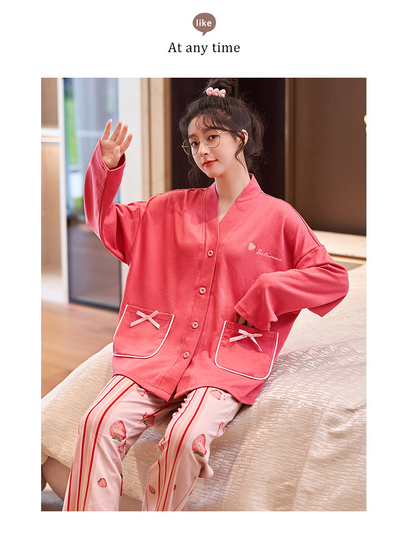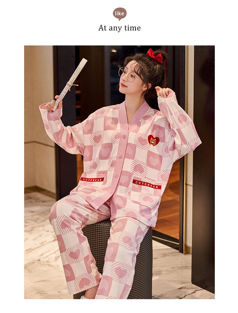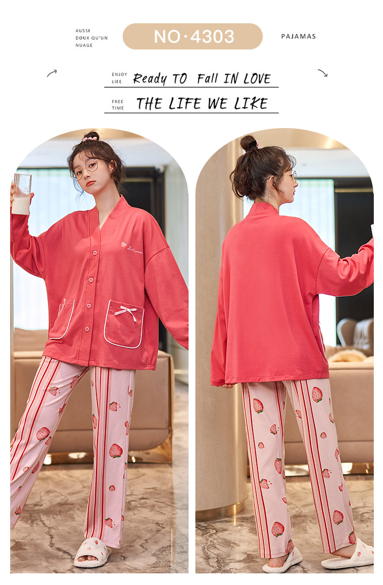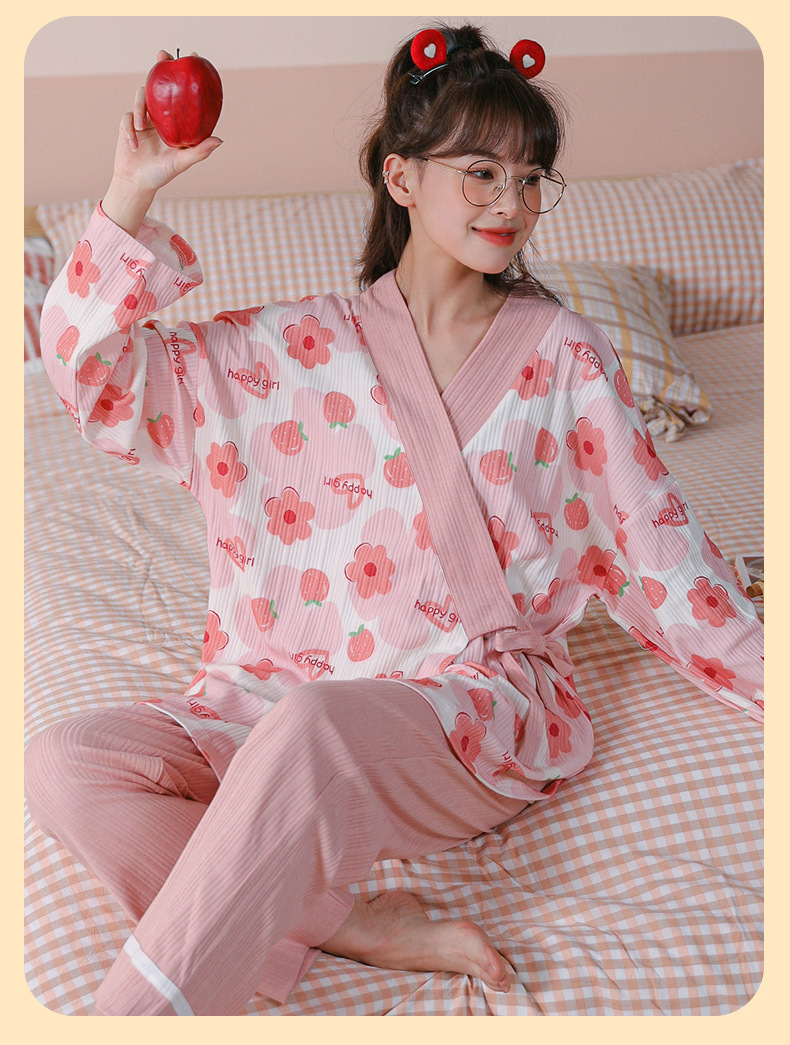 秋冬季【萌系长袖睡衣套装】 韩版系带家居服 舒适棉质 多款图案可选