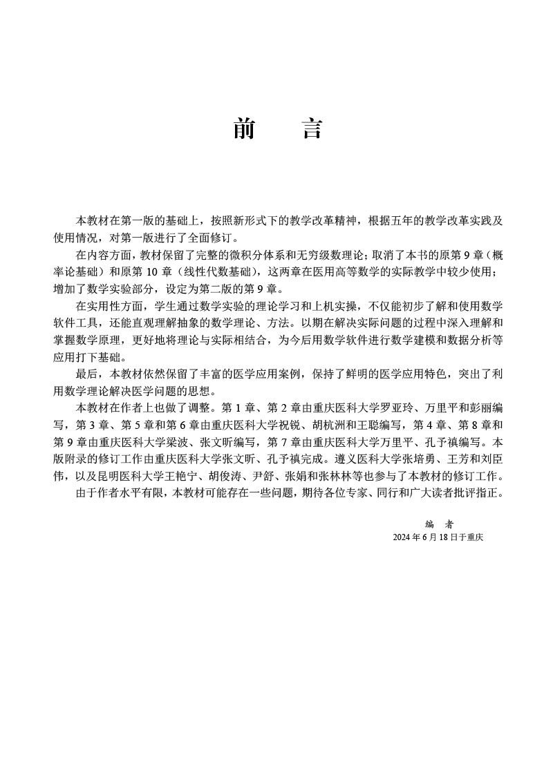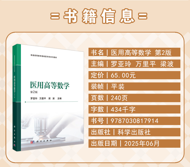 医用高等数学 第2二版 普通高等教育基础医学类系列教材 罗亚玲 万里平 梁波 医学类高等院校各本科等专业及医药学工作者科学出版社