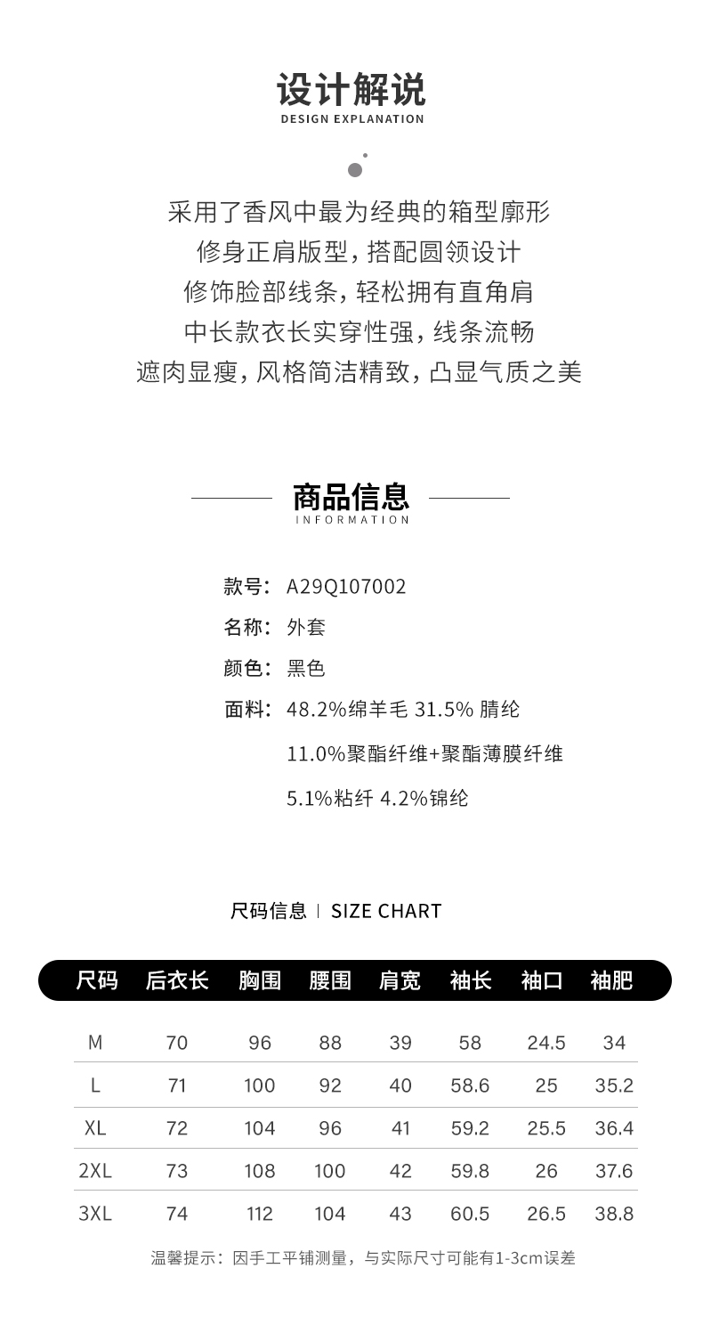 【商场同款】阿菁娜2024秋季新款名媛风箱型正肩气质外套A29Q107002