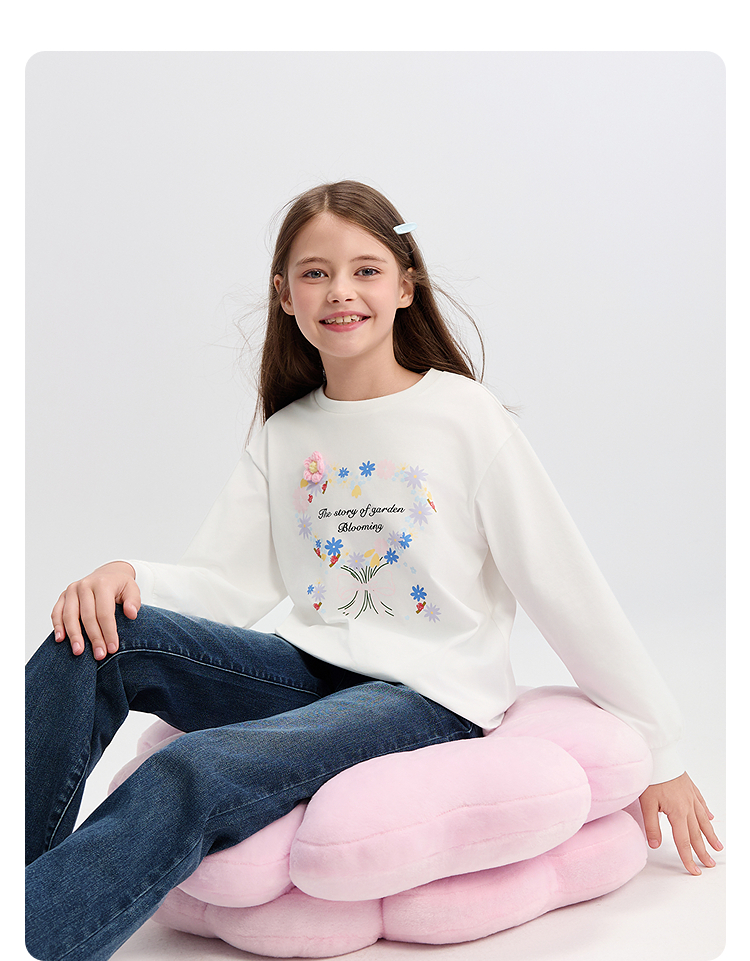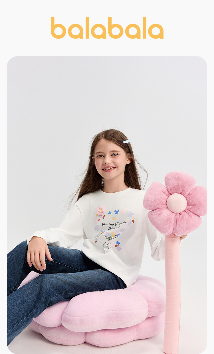 巴拉巴拉balaOne女童长袖t恤儿童2025新款秋大童甜美内搭洋气上衣