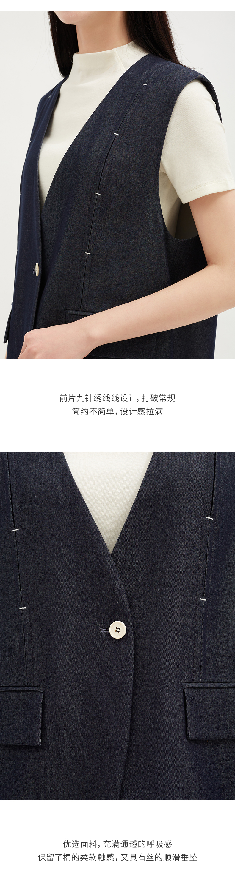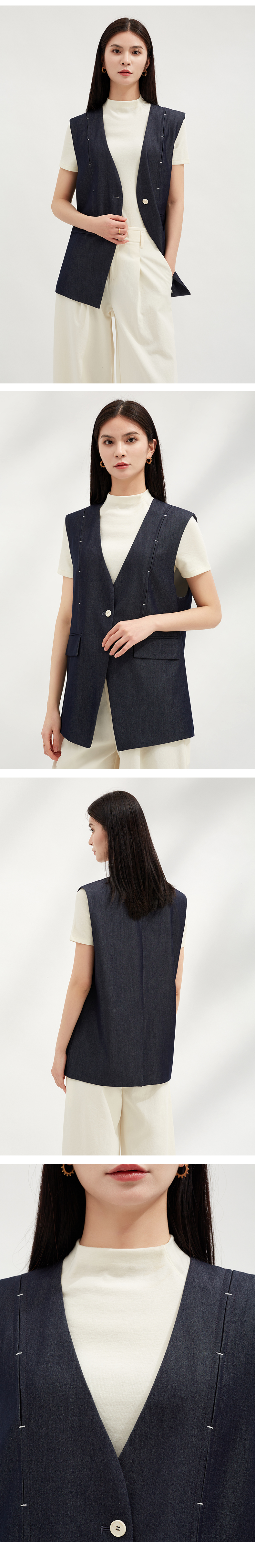 【休闲感穿搭】阿菁娜一字扣V领合身宽肩马甲F30C203012