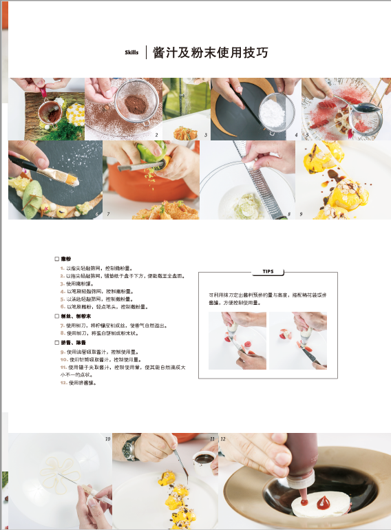 撒粉、刨丝、刨粉末、挤酱、淋酱