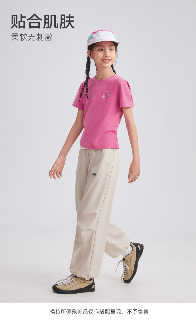 水孩儿童装女童短袖夏季新款儿童环保面料T恤时尚设计感上衣