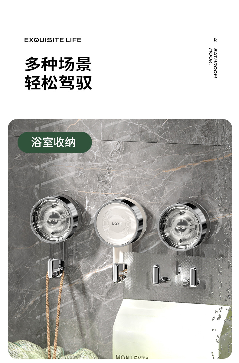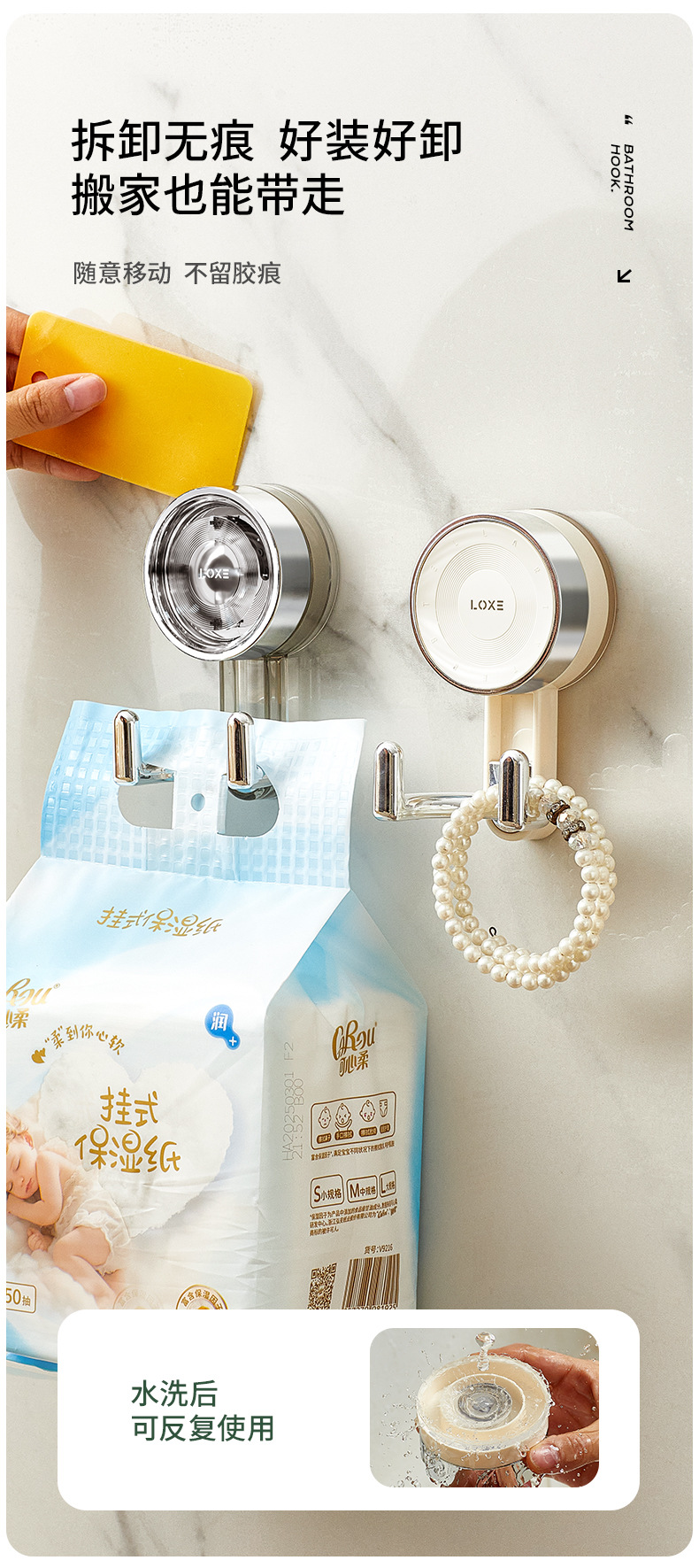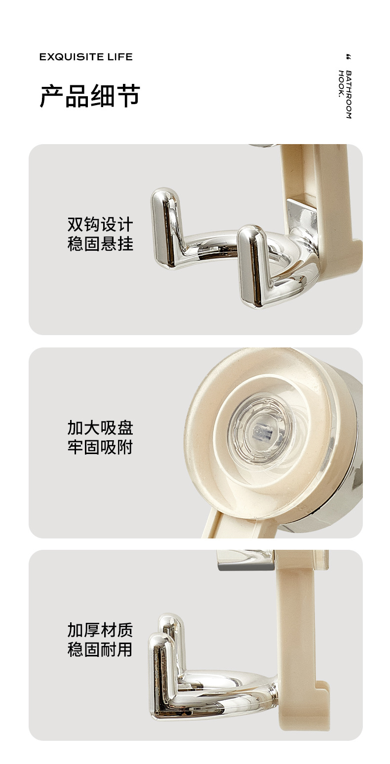 【安装便捷不伤墙面】真空吸盘挂钩浴室双头钩子多功能家用厨房挂架卫生间强力无痕粘钩。xb