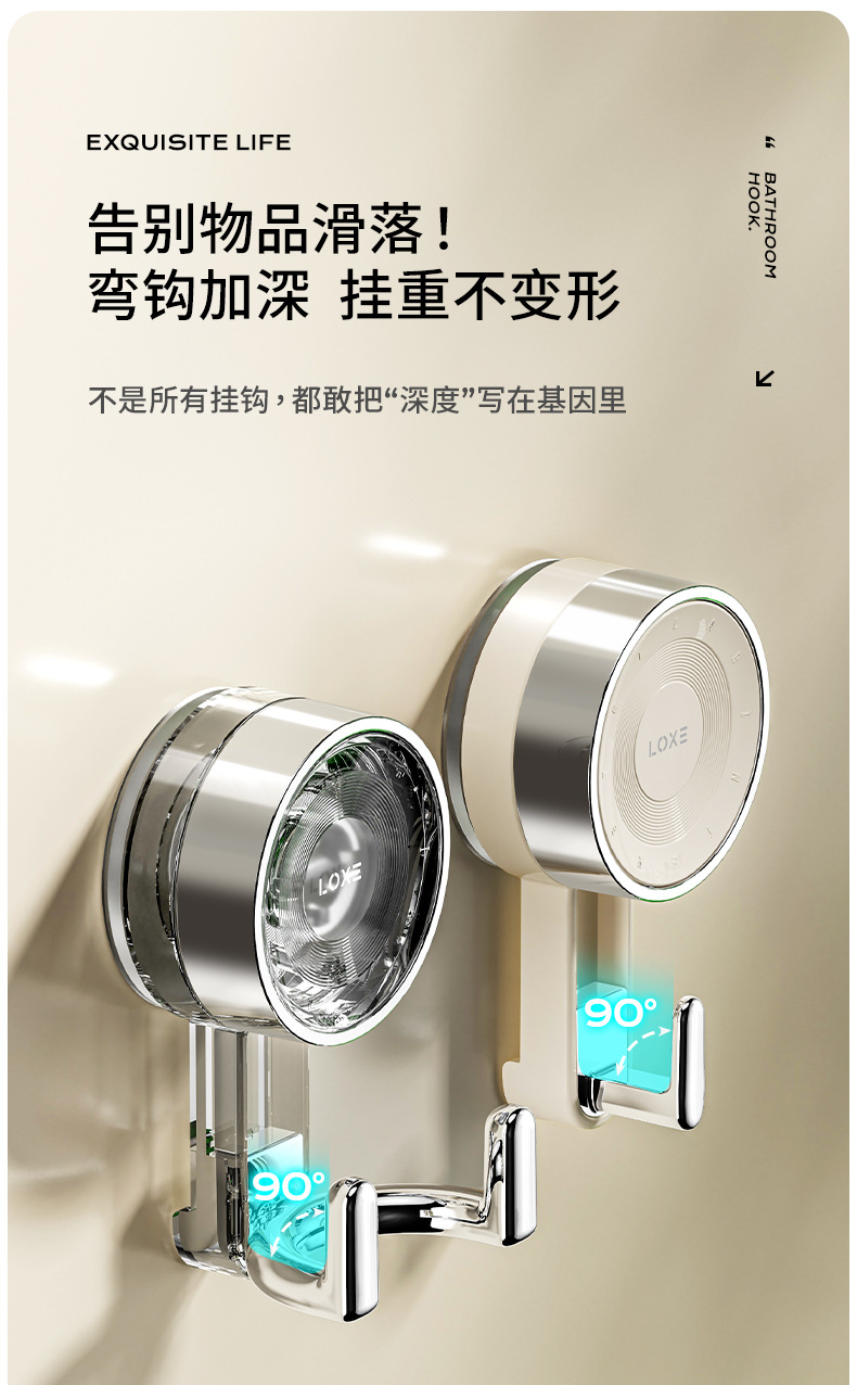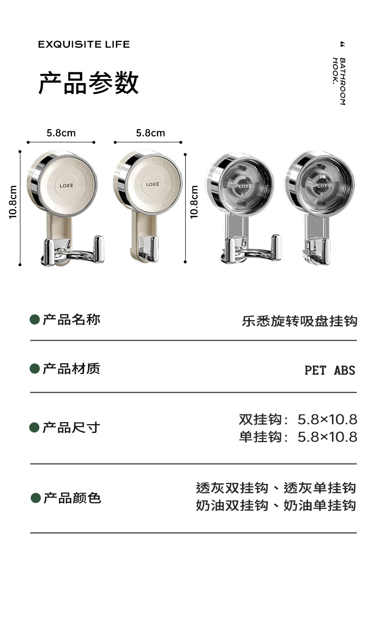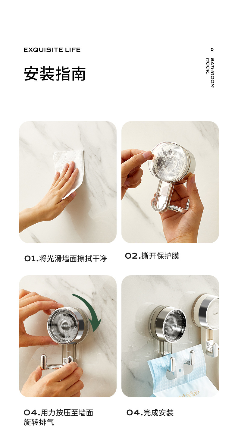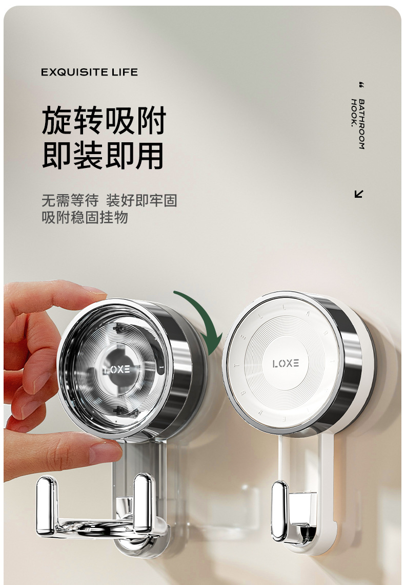 【安装便捷不伤墙面】真空吸盘挂钩浴室双头钩子多功能家用厨房挂架卫生间强力无痕粘钩。xb