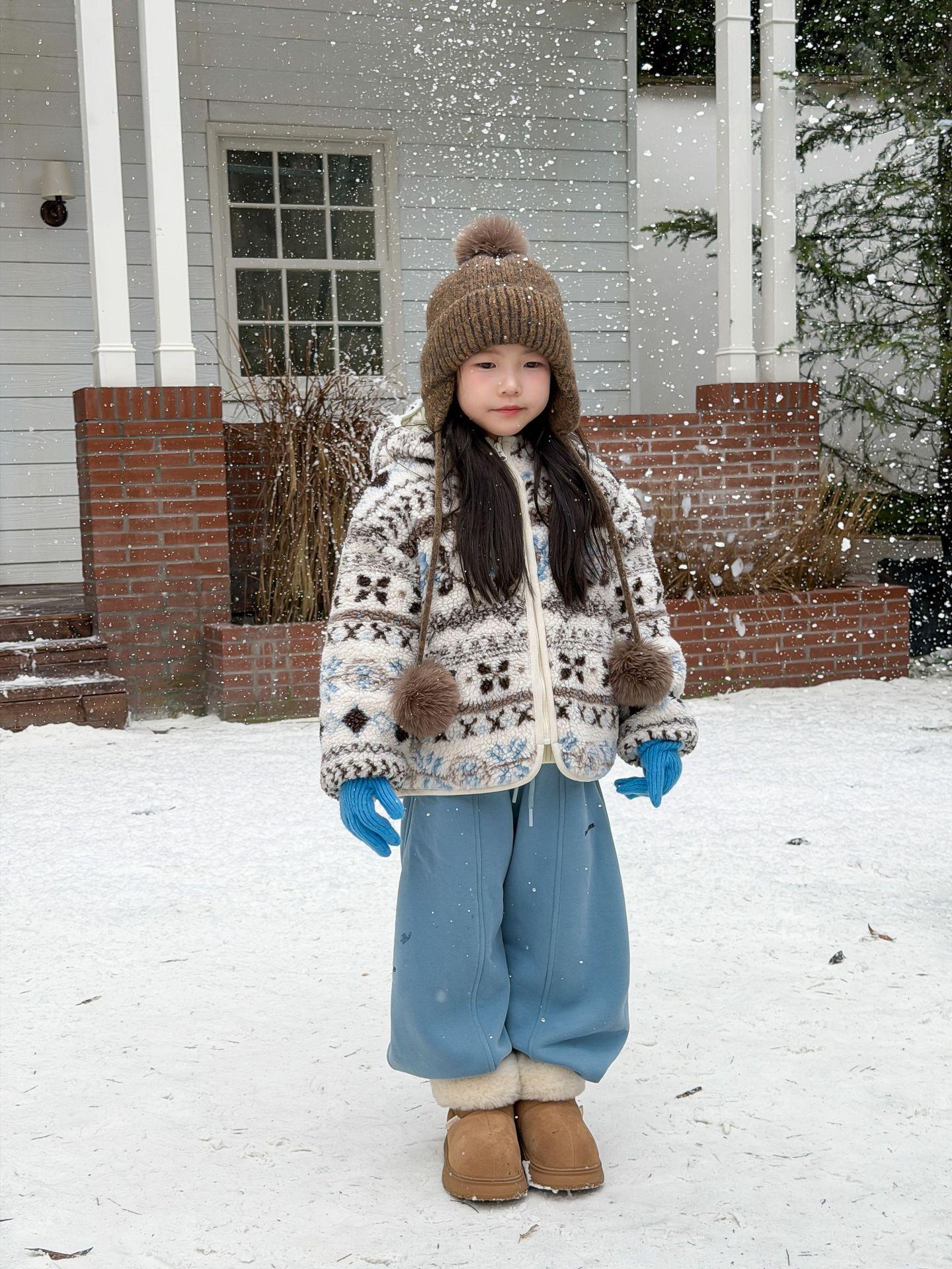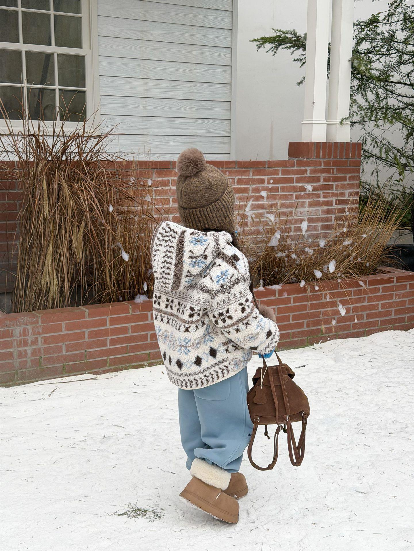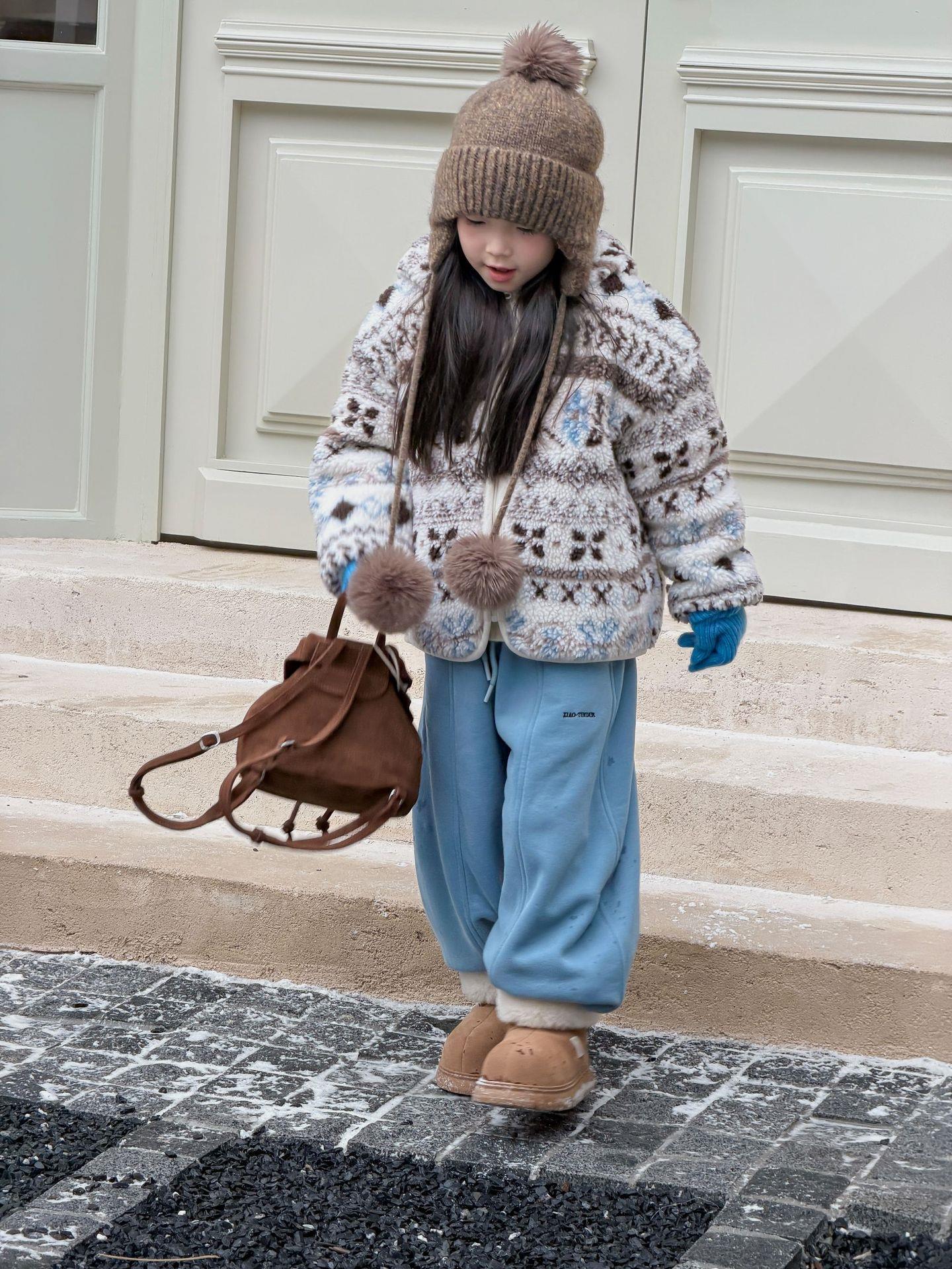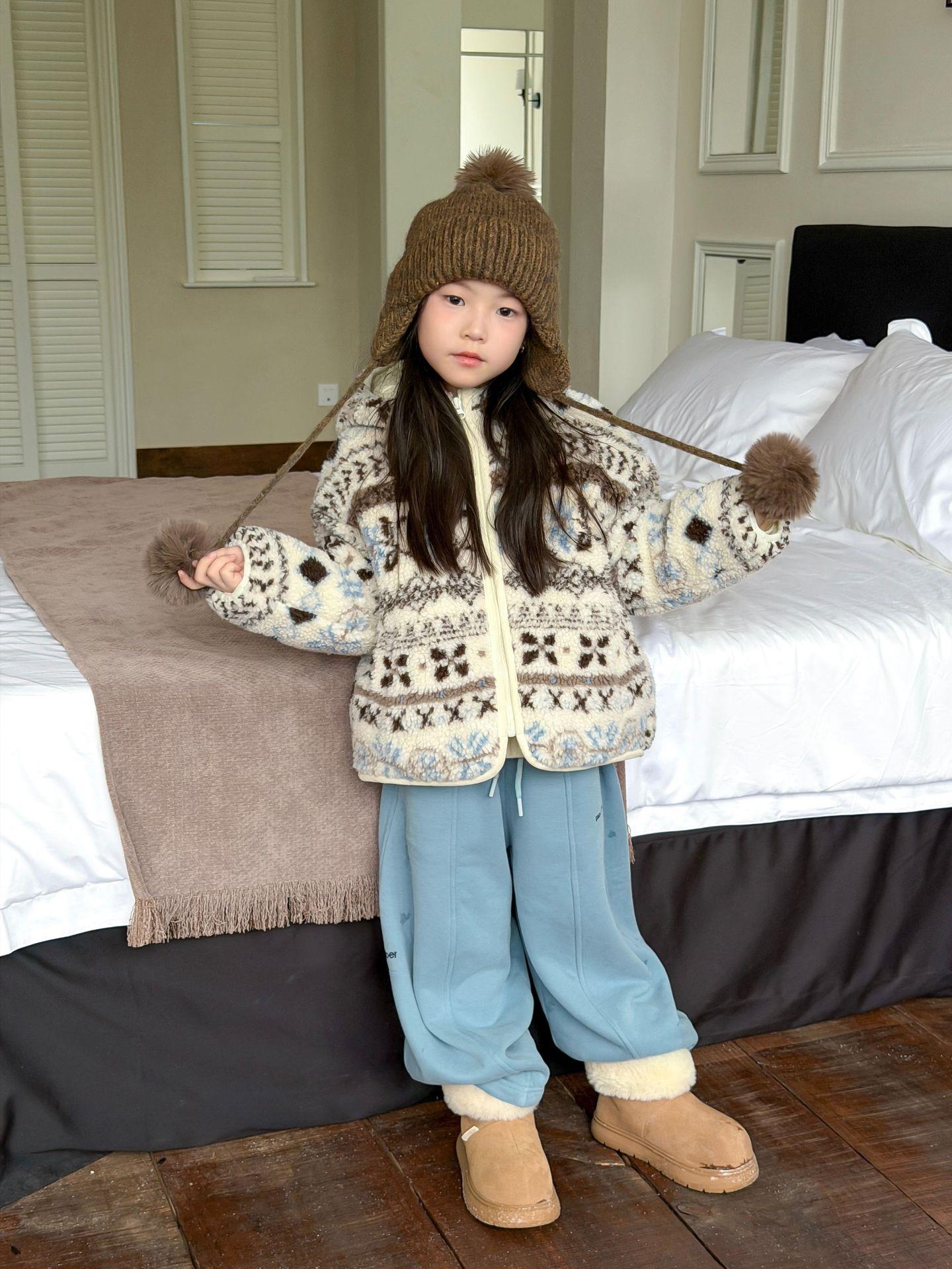 艾摩贝贝节日氛围单品~儿童浪漫费尔岛提花棉服保暖夹棉连帽外套