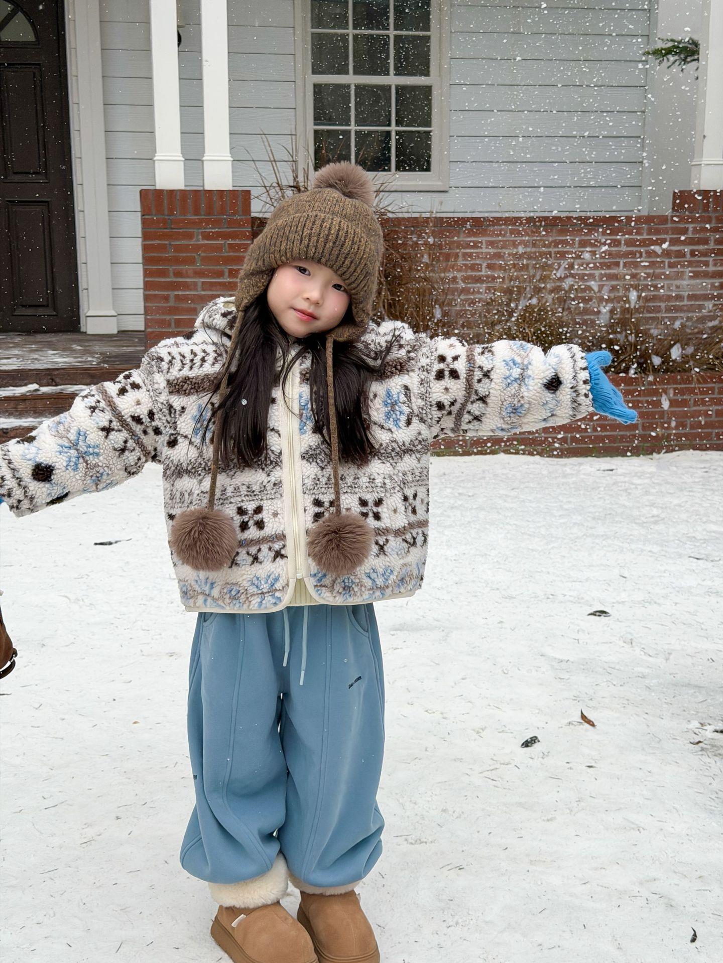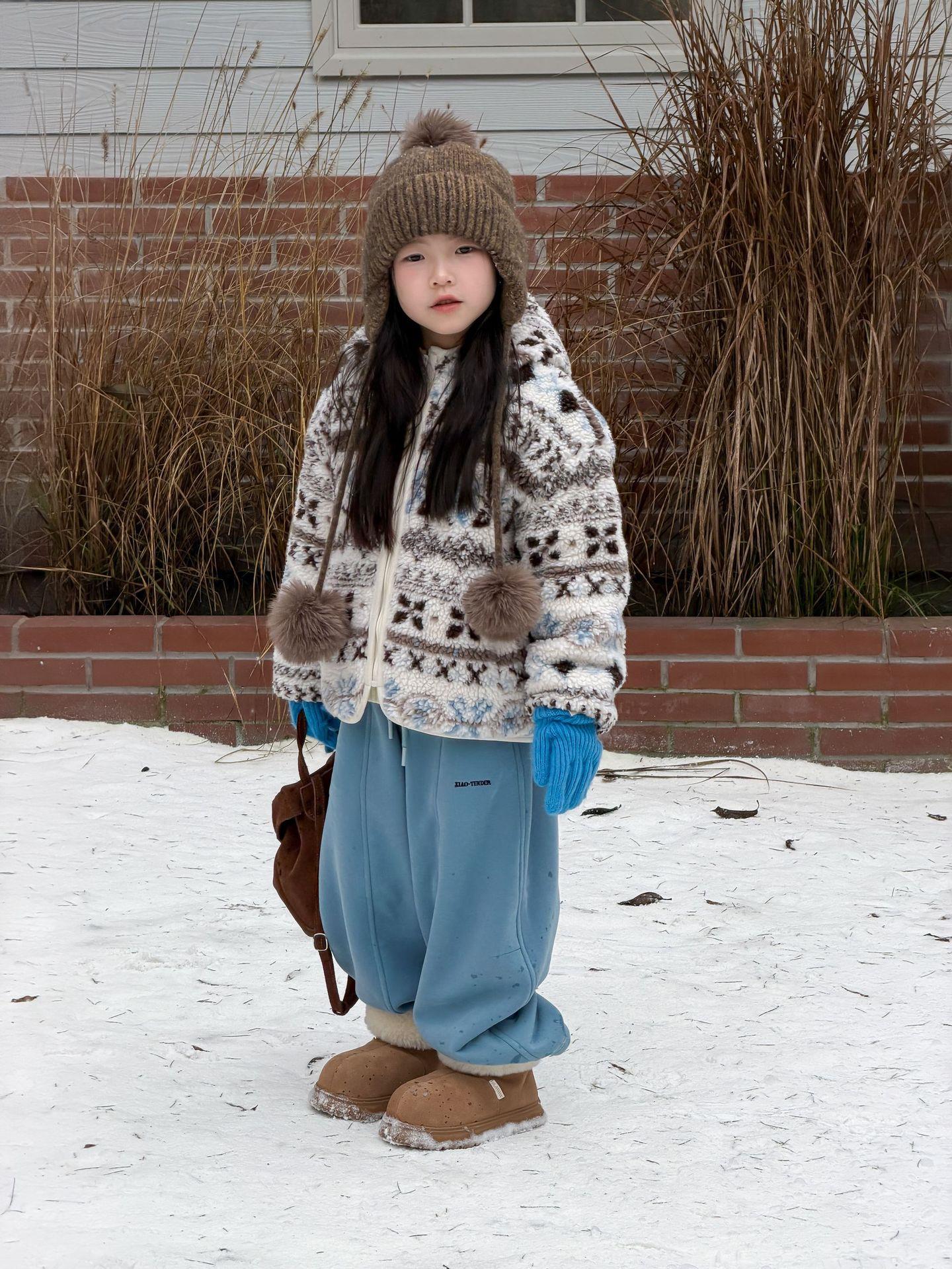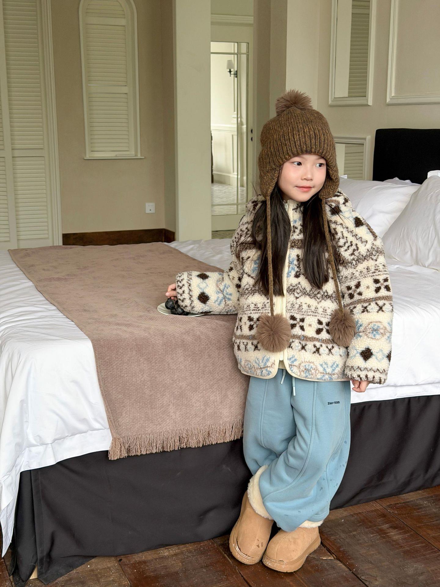 艾摩贝贝节日氛围单品~儿童浪漫费尔岛提花棉服保暖夹棉连帽外套
