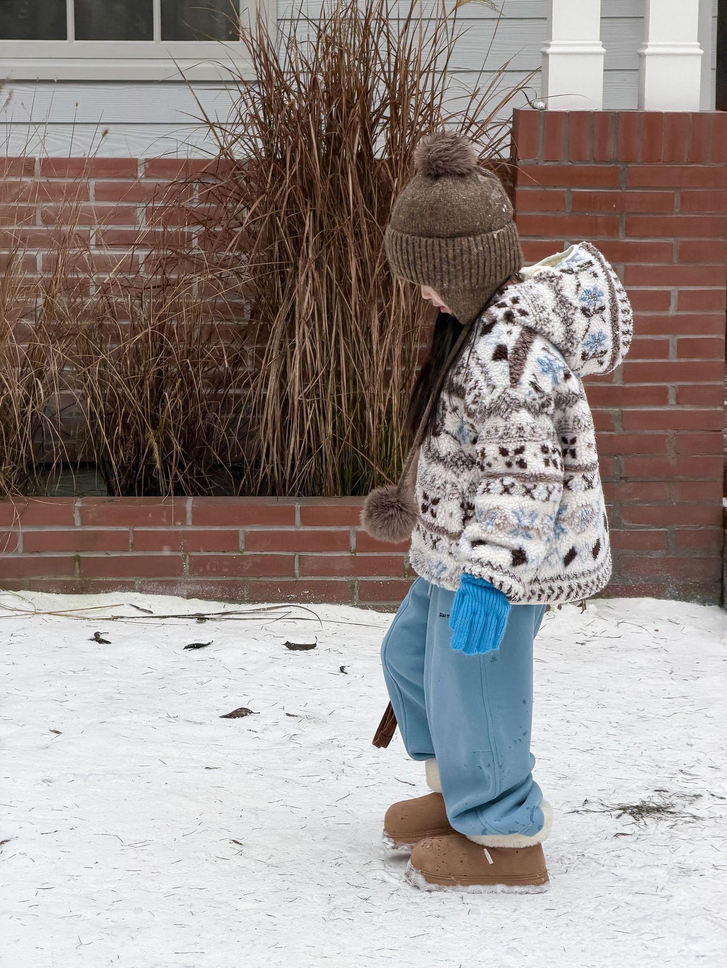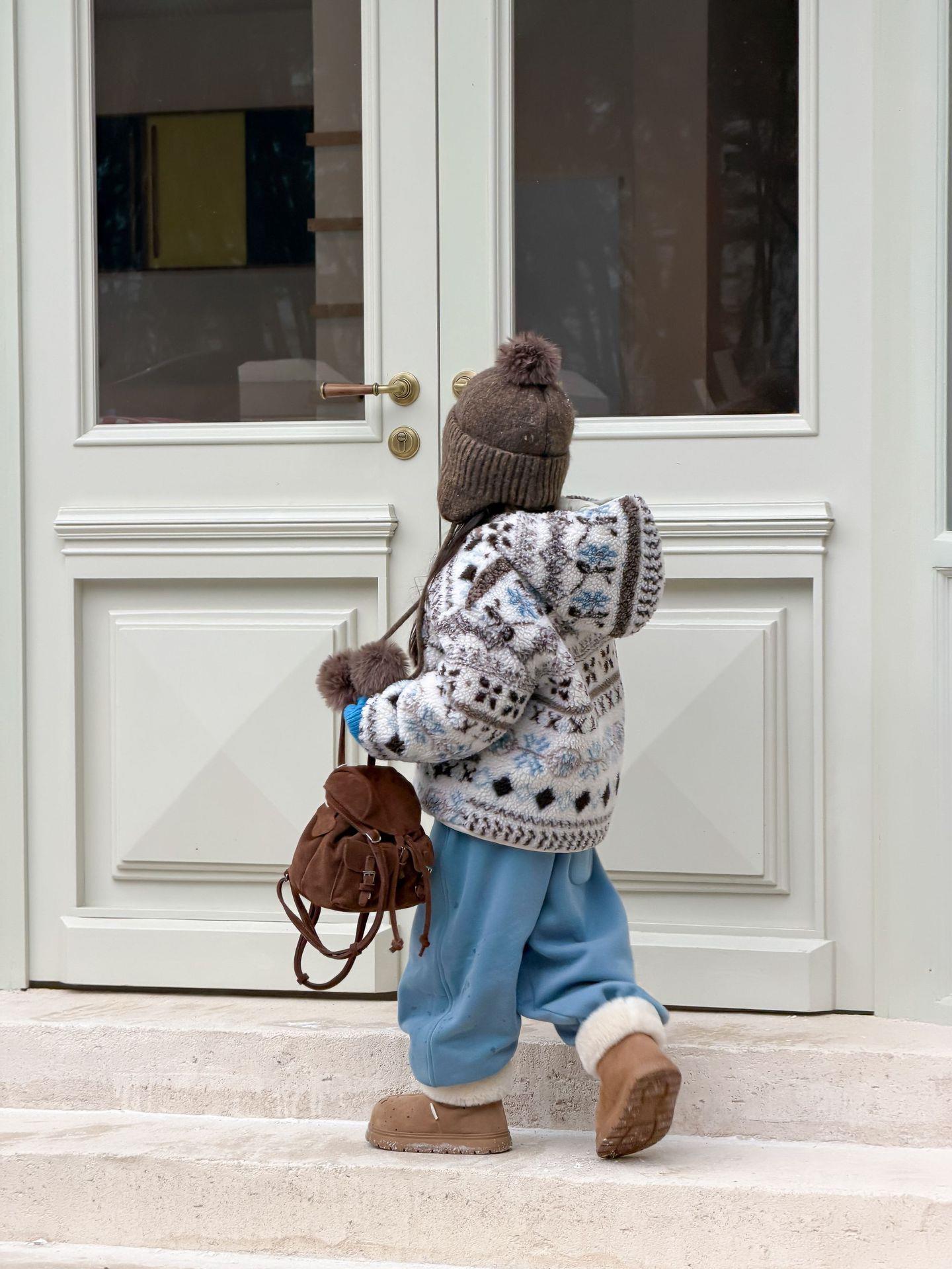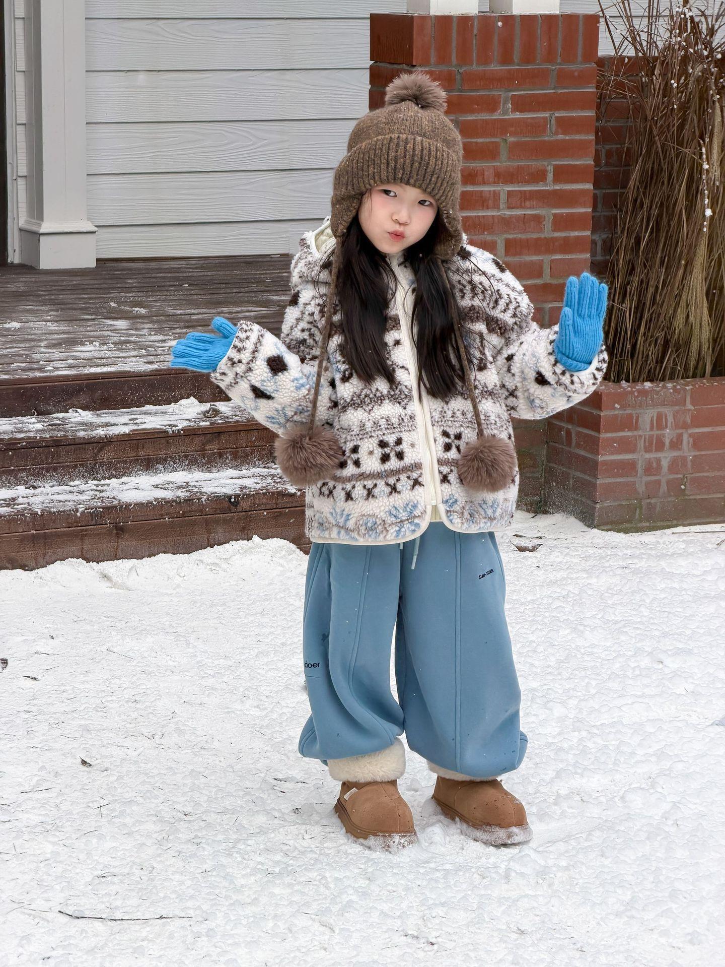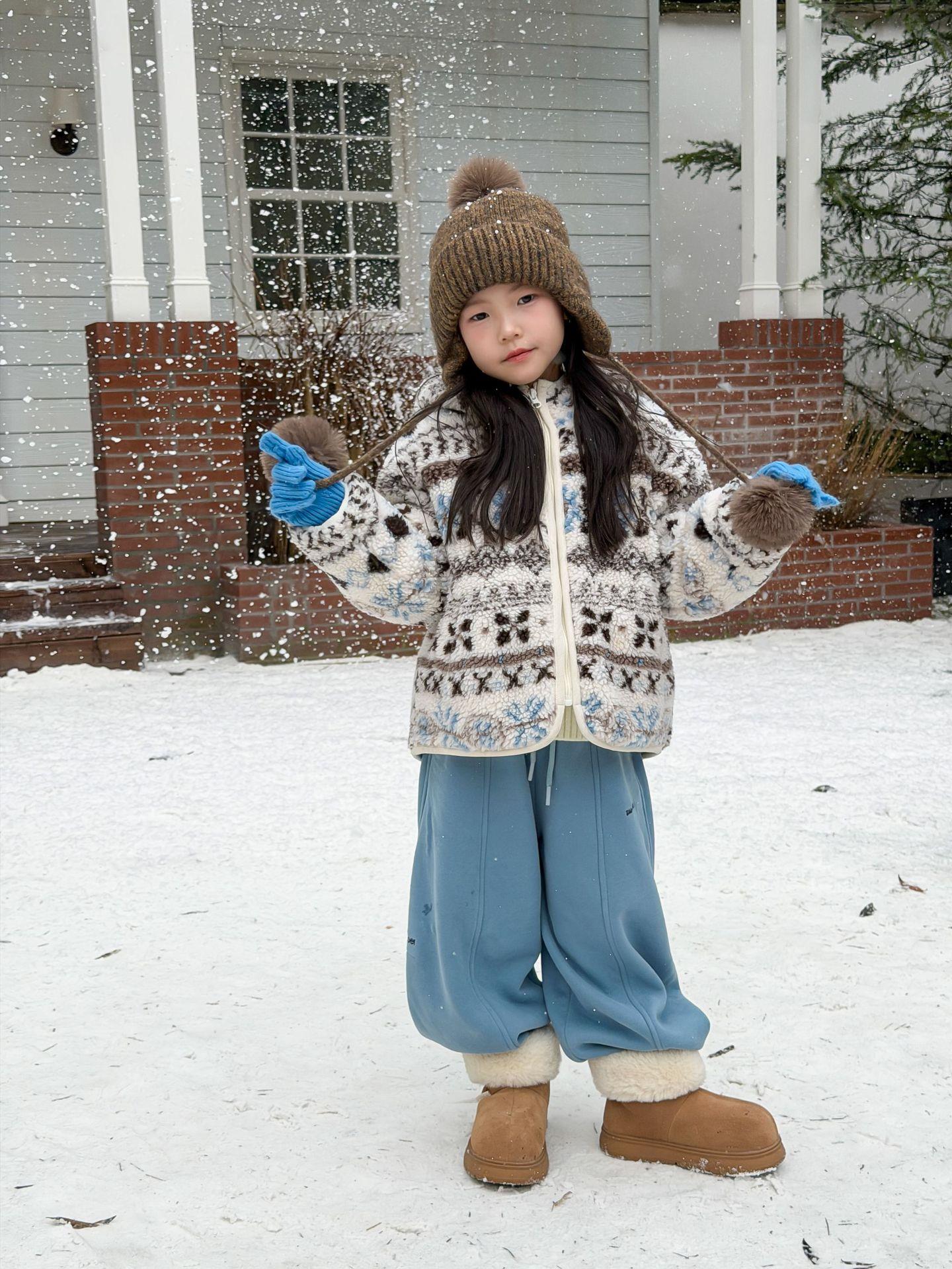 艾摩贝贝节日氛围单品~儿童浪漫费尔岛提花棉服保暖夹棉连帽外套