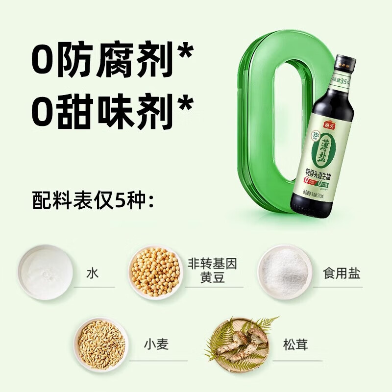 海天薄盐0添加特级头道生抽500ml/瓶